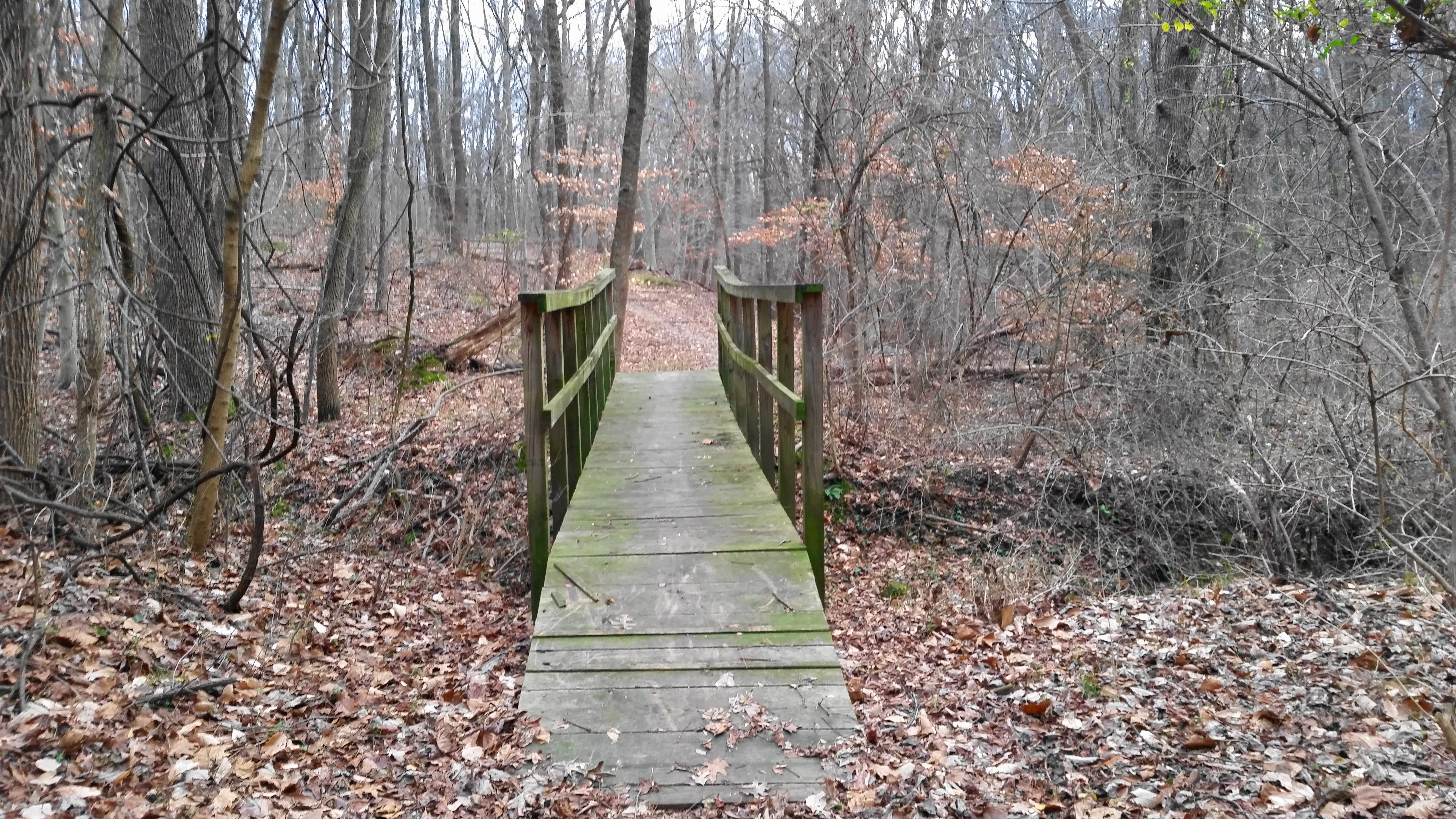 Cross Pennsylvania Avenue to find the trail as it continues westward. This section is flat and sometimes muddy, although the terrain off to the right quickly begins to drop off into a series of ravines. (Note: The shiny, glass building on the left is the Francis A. Gregory Library.) The next road crossing is at Branch Avenue, roughly 4.3 miles from the start of the hike. Cross the street, then head straight on Park Drive, following it for roughly 100 yards. Here the trail picks back up again, heading back into the forest on the right.