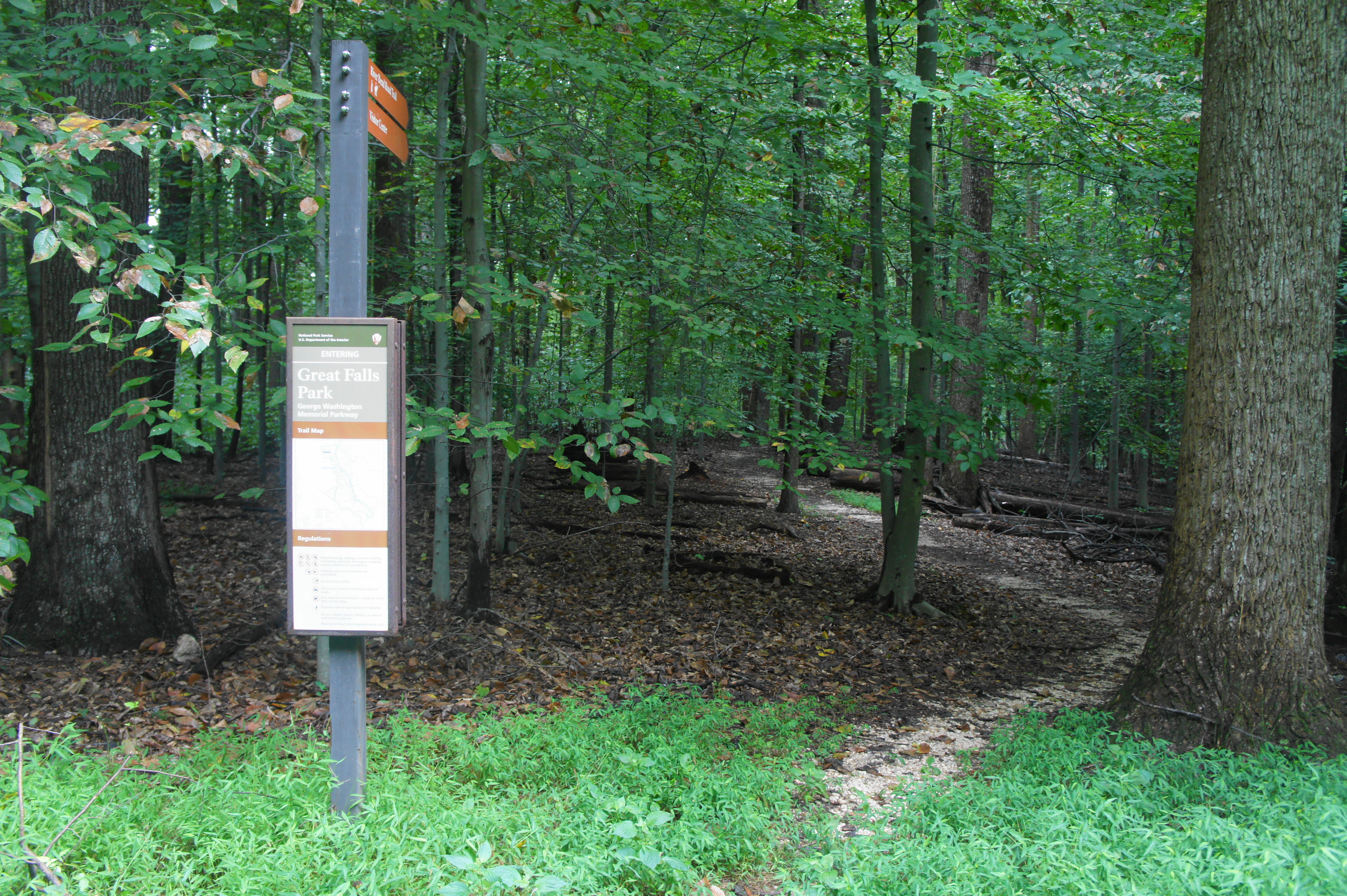 The Riverbend Road Trail is easily the least interesting of the hikes in northern Virginia’s Great Falls Park and is largely out of the way of the other trails in the park. Those seeking to conquer every trail in the area, however, may find some charms in this short, out-and-back jaunt. Situated in the park’s northwest corner, the single-track trail weaves through woods and across a perennial stream, connecting the parking area north of the Visitor Center with Riverbend Road.