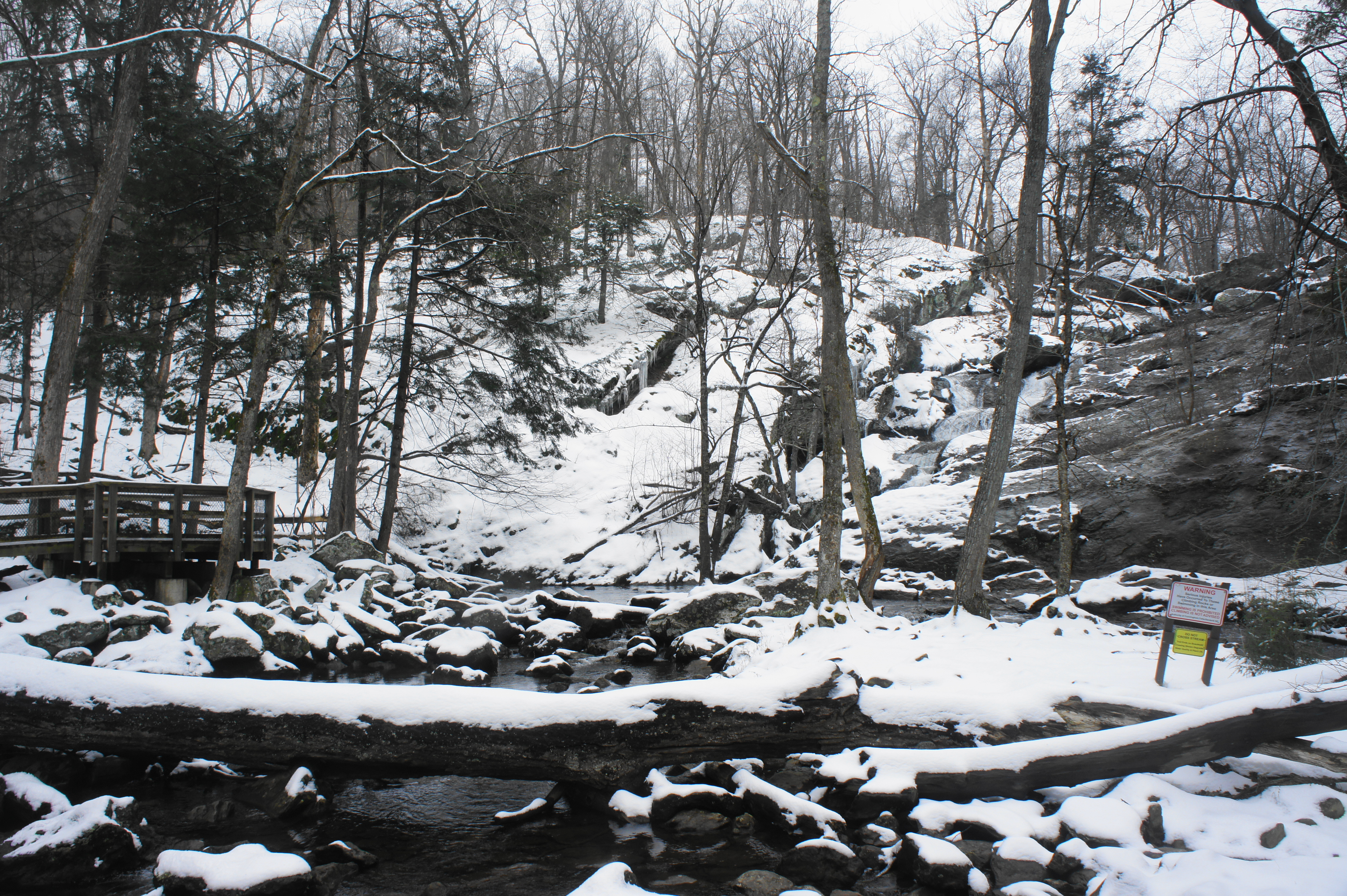 Cunningham Falls in northern Maryland tumbles 78 feet down a set of cascades, making it the tallest waterfall in the state and a popular getaway destination for residents of the DC/Baltimore area. Most visitors hike to the falls by way of Cunningham Falls State Park—but it is also possible to reach from neighboring Catoctin Mountain Park, a lovely National Park Service unit outside Thurmont, Maryland. The Falls Nature Trail provides a moderately challenging, up-and-down walk to the base of the cascades.