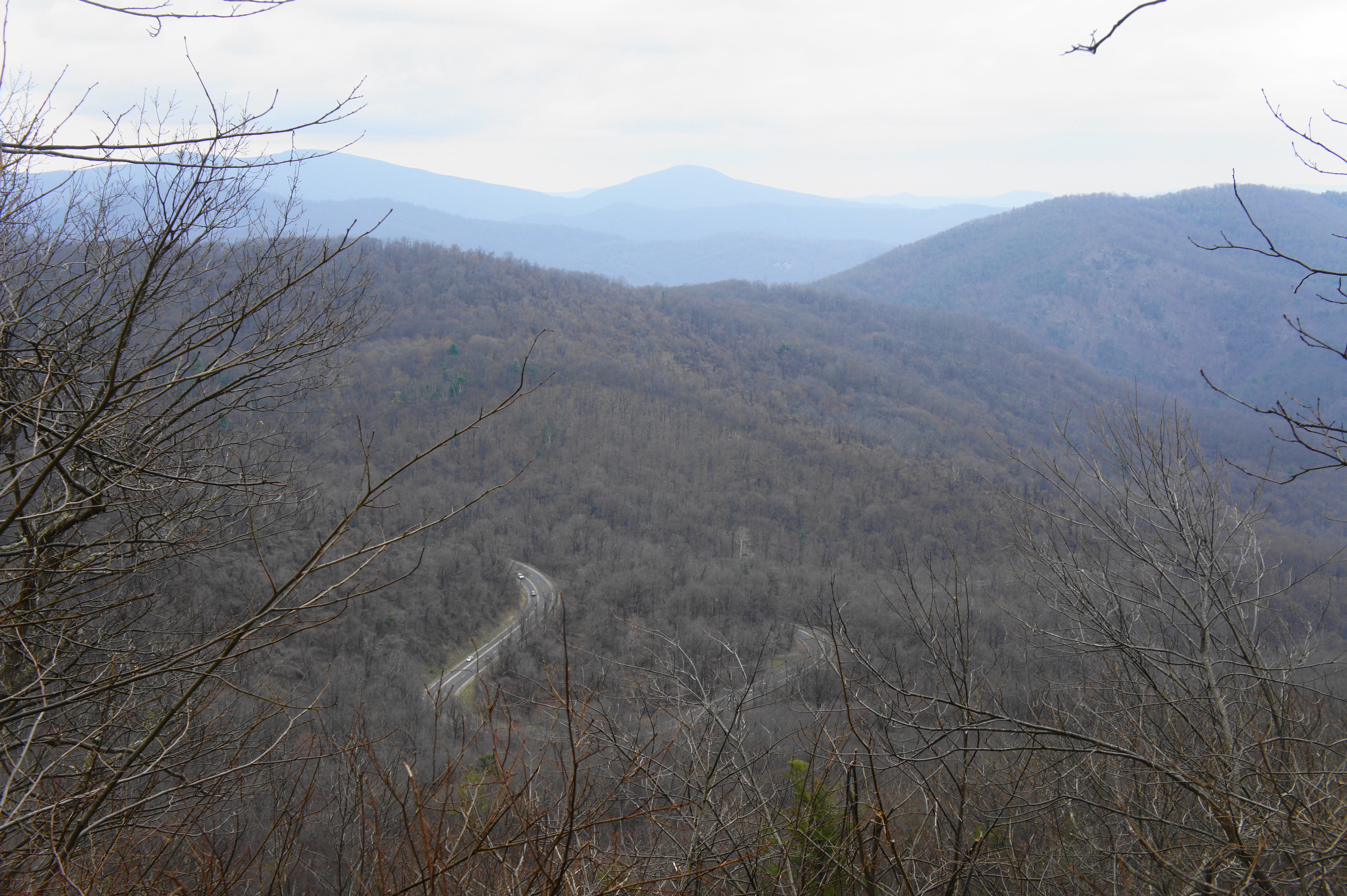 At about 7/10 mile, the incline steepens again. After rounding a corner, one can spot southbound Skyline Drive as it snakes around Marys Rock to the east. At 8/10 mile, the trail abruptly rounds a switchback, followed by another within a couple minutes. Just before the 1-mile mark, a window view through the trees provides another great look toward the Piedmont to the east.