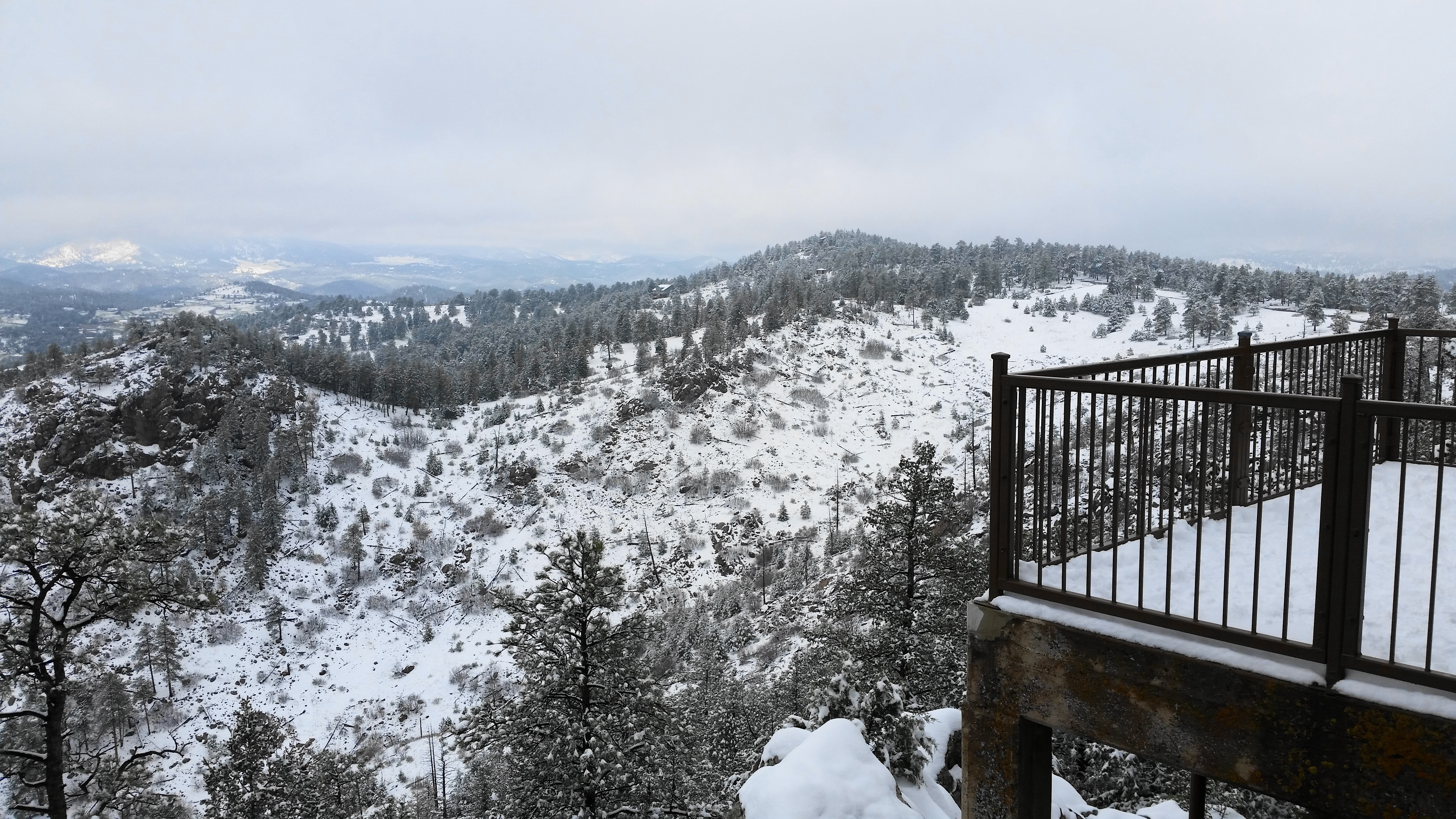 Sweeping vistas are already available from the parking area, especially from a small veranda and picnic area to the southwest. Here you can peer out over Parmalee Gulch, with additional foothills of the Front Range beyond.