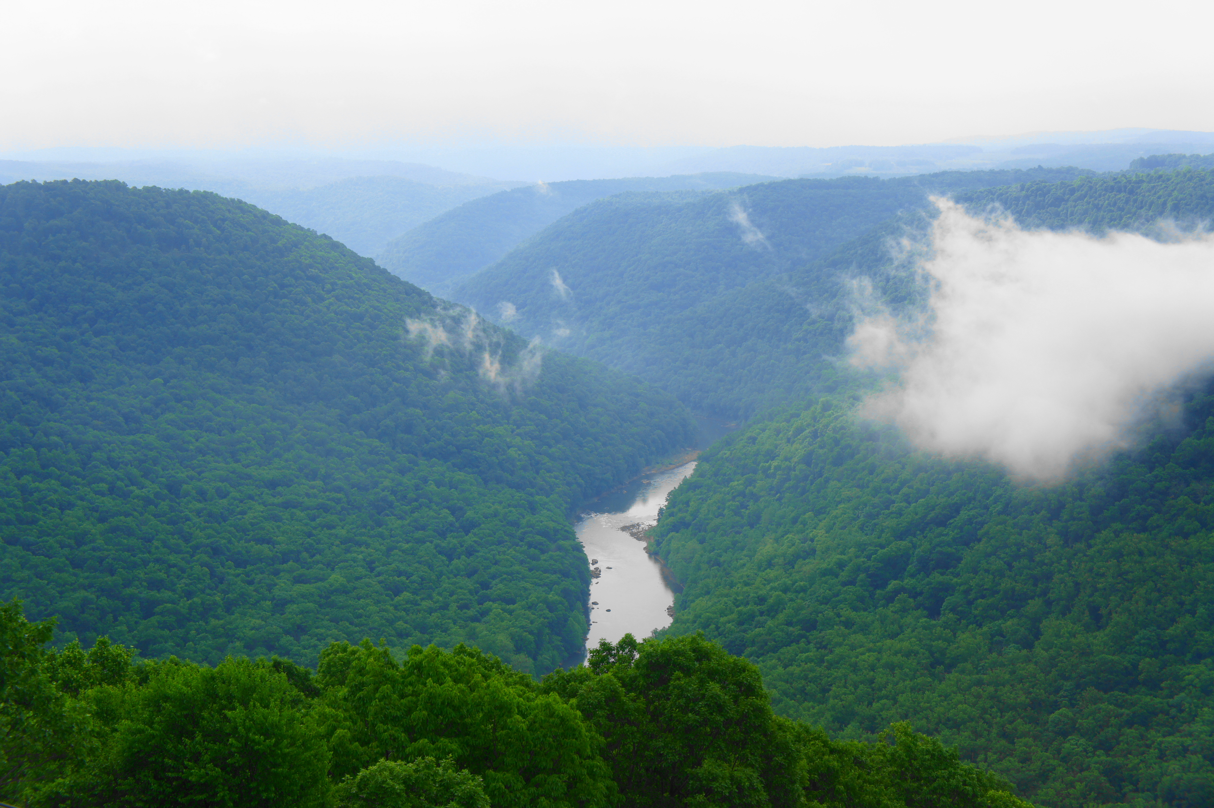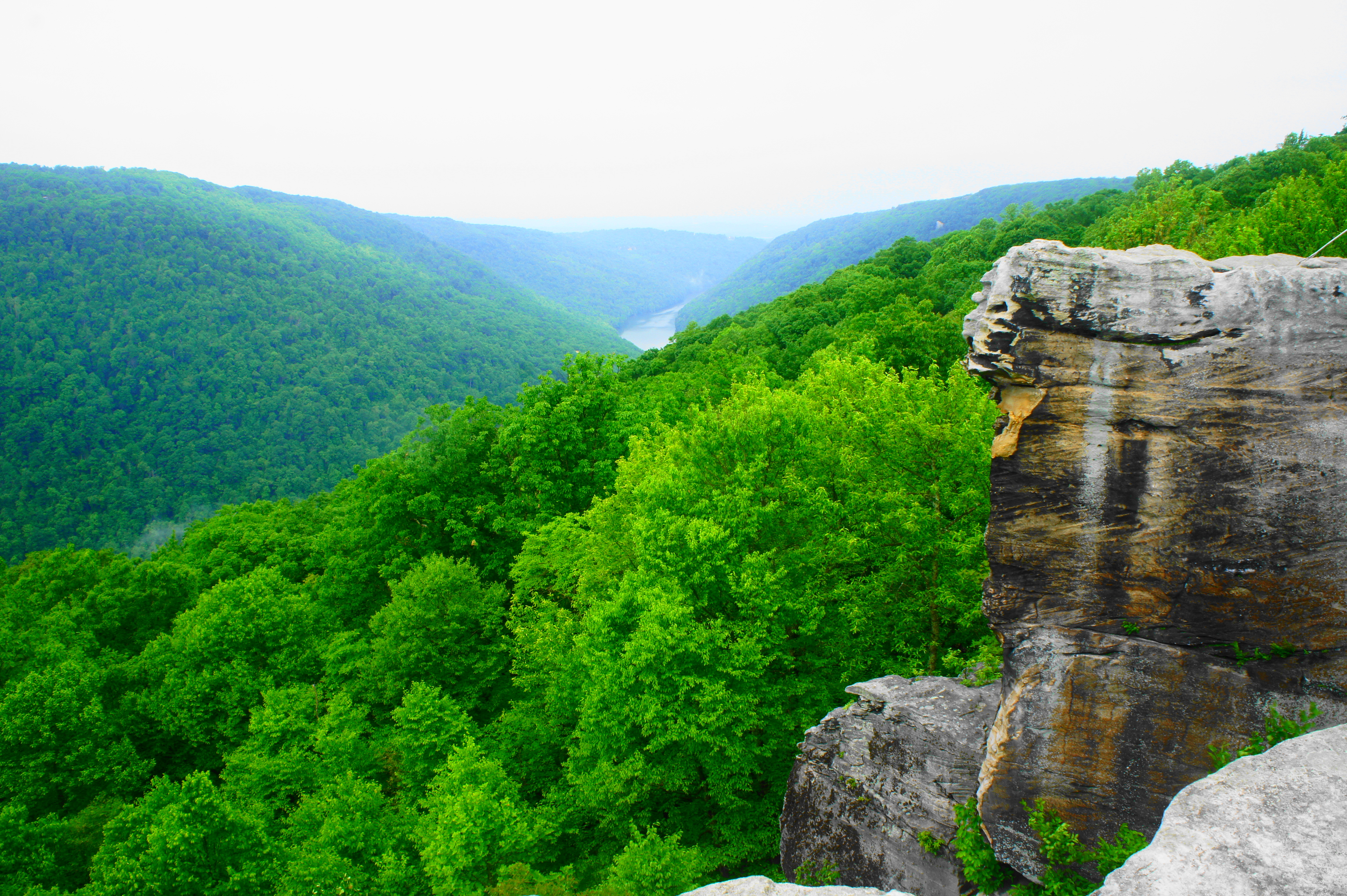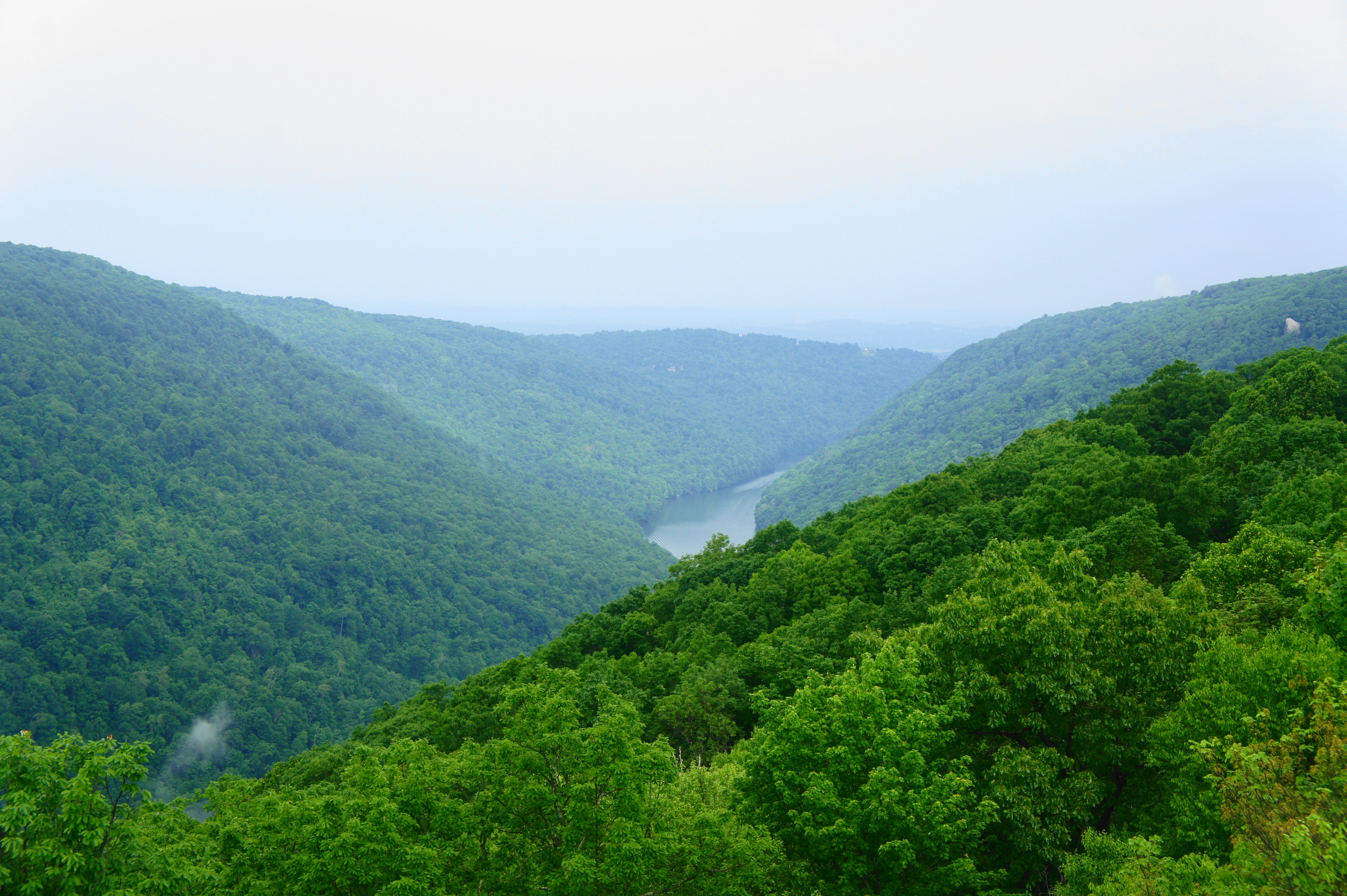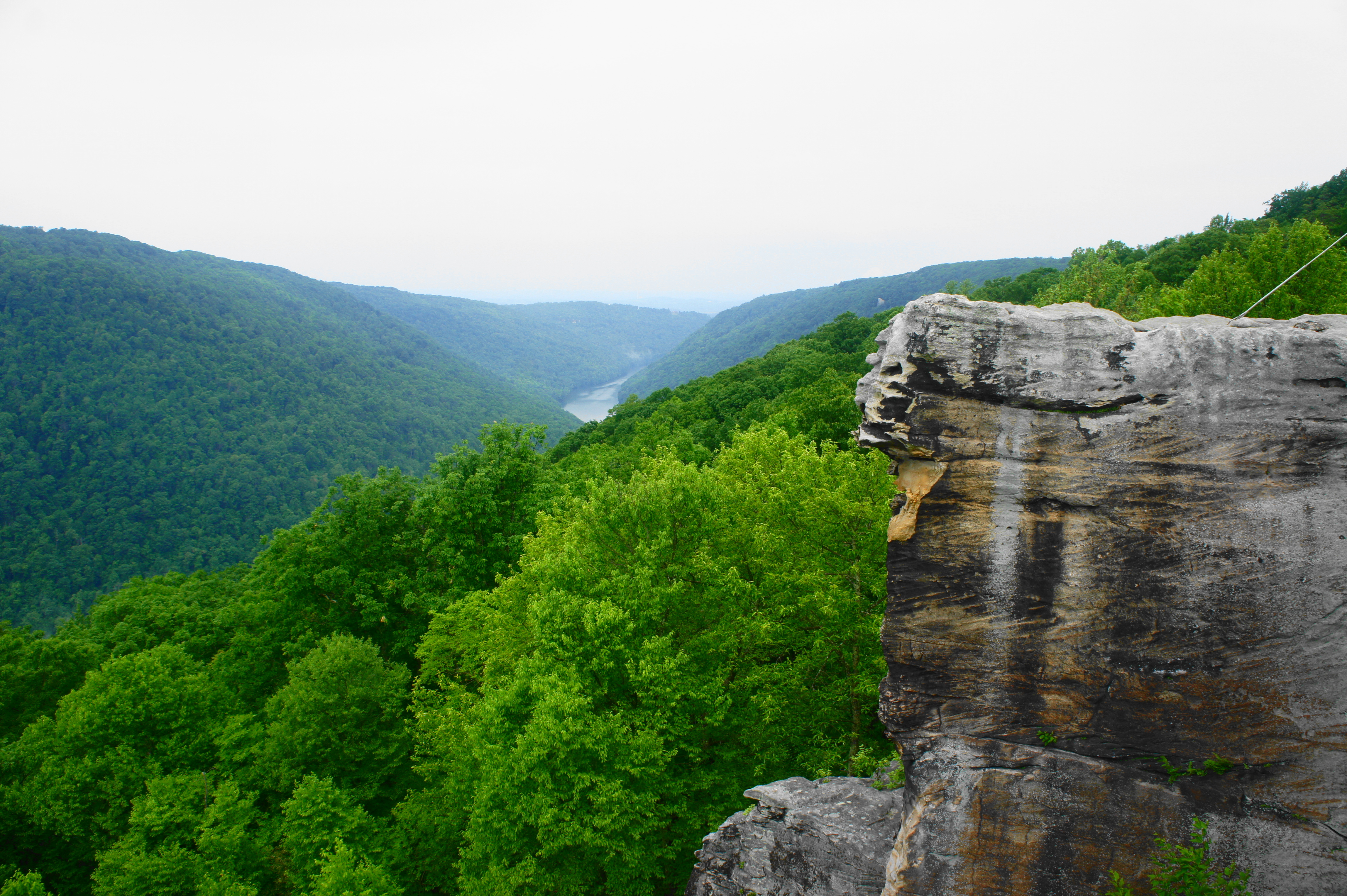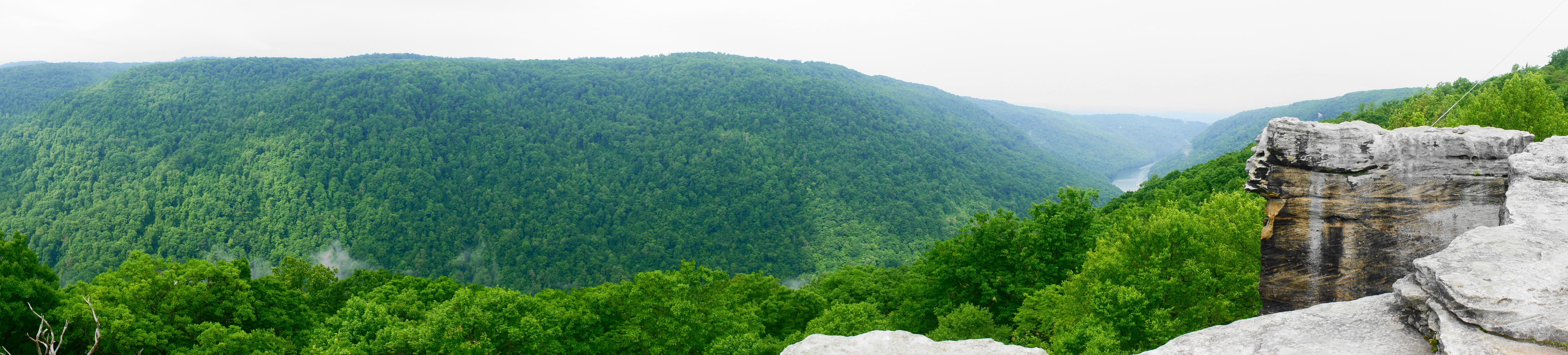Below, the majestic beauty of the Cheat River Gorge unfolds, with the waterway itself visible off to the southeast. It is a jaw-dropping 1,100 feet from here down to the base of the canyon, a height that eclipses the better-known New River Gorge in southern West Virginia. Looking right, it is possible on clear days to spot Coopers Rock to the northwest, a small protrusion of sandstone on the near side of the canyon. Beyond, the Cheat River forms a lake, a popular destination for swimming, rowing, and fishing.