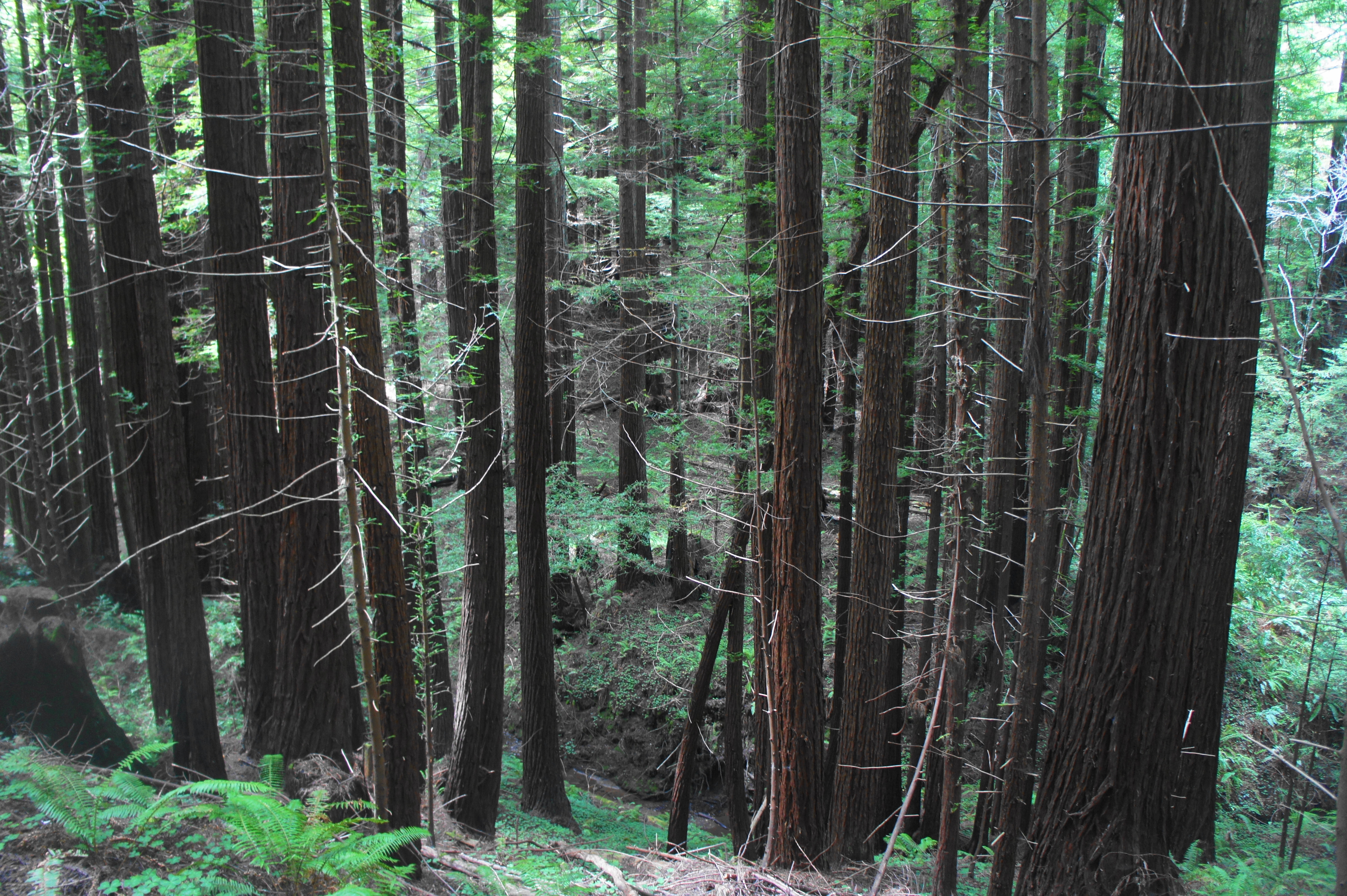 It turns out the redwoods of the Whittemore Gulch Trail were only an appetizer. The towering trees along the Purisima Creek Trail are larger, denser, and more picturesque than anything found in Whittemore Gulch. Almost immediately, hikers are struck by the magnificent beauty: the initial patch—dubbed the Ludemann-Gunther Family Grove—includes trunks so large that it is hard to believe these trees are second-growth, born after an initial period of logging that decimated the area.