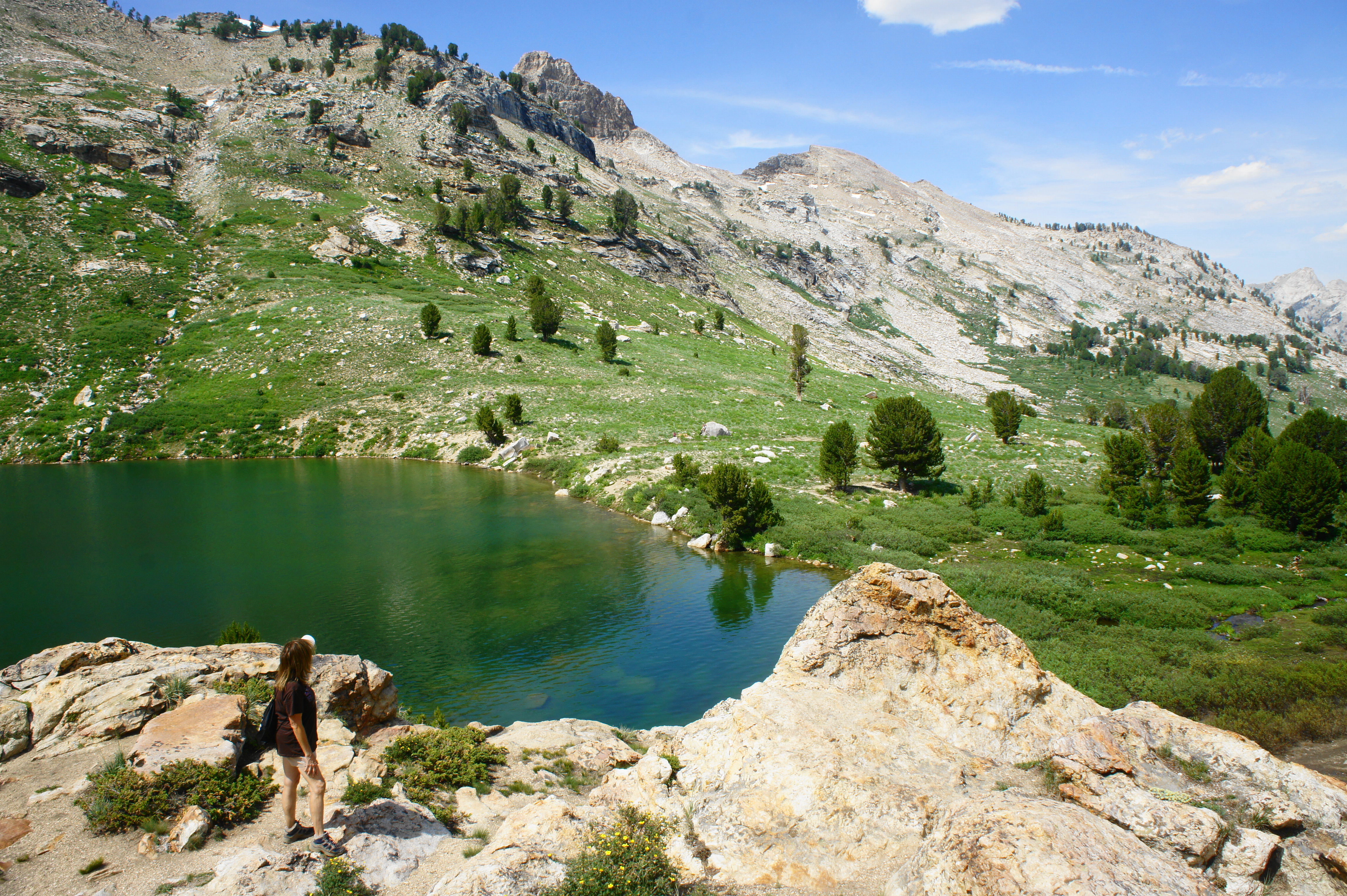 Signs around the lake warn hikers against weaving off the trail, but staying on rock outcrops offers a safe lookout point without damaging the soil. Squirrels around the lake have seen a visitor or two and thus are likely to be nipping at your heels as you peer down at the majestic glacial tarn. For much of the year, snow on the south slope flows right into the lake. The ridgeline beyond leads into the Ruby Mountains Wilderness. The lake itself is a popular destination for fly fishers, in search of brook trout.