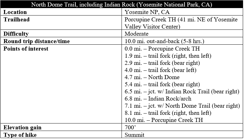 North Dome Trail, inc. Indian Rock (Yosemite National Park, CA)