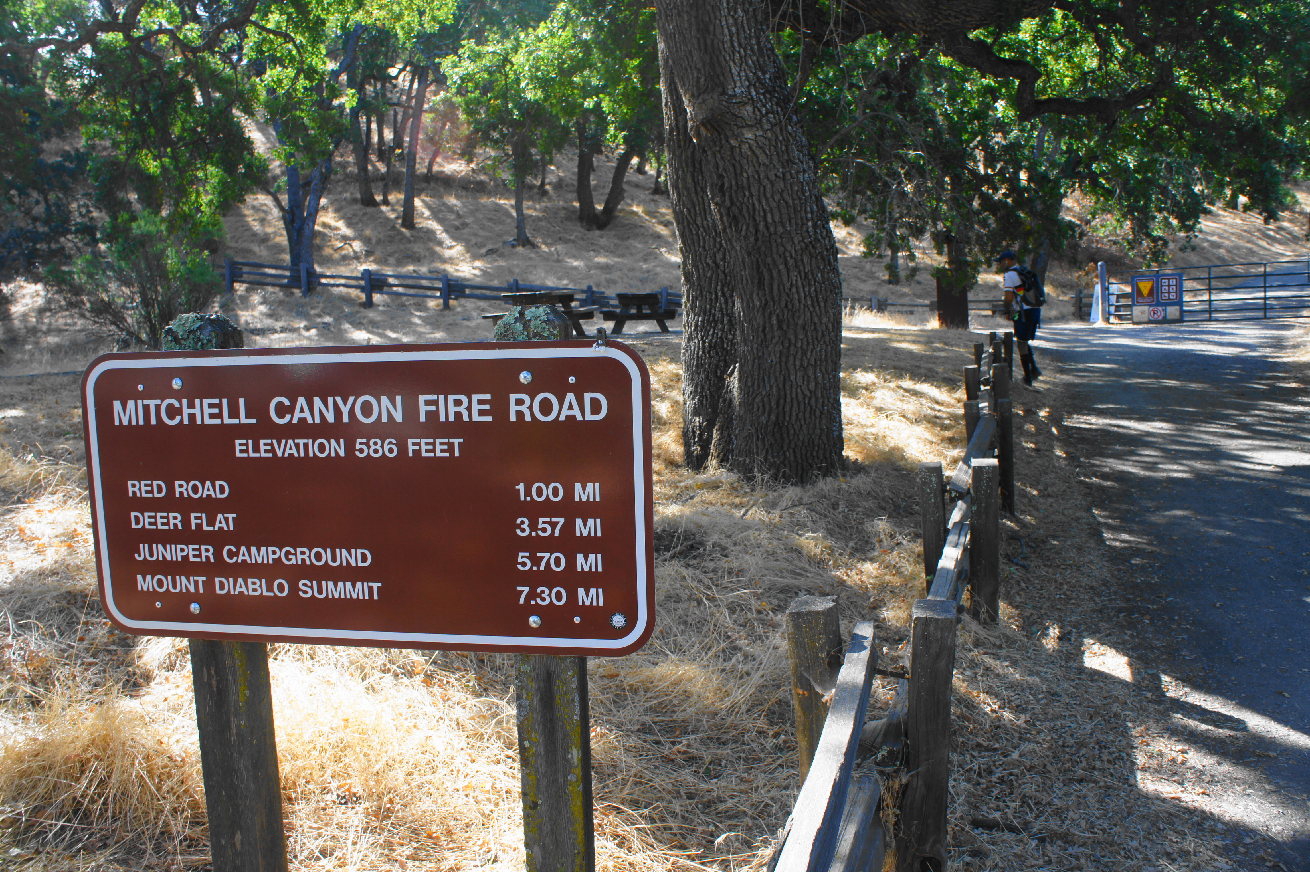 Mount Diablo State Park has an incredibly dense network of interconnecting trails, so there are of course multiple avenues for reaching the summit. However, perhaps the most commonly chosen option for climbing base-to-peak is to start at the Mitchell Canyon Staging Area in Clayton, California, a short drive from the nearby suburbs of Concord, Martinez, and Walnut Creek. Gates at the Mitchell Canyon area open at 8 am, and there is a $6 parking fee. The Mitchell Canyon Visitor Center is open weekends only (8-4 summer; 10-3 winter).