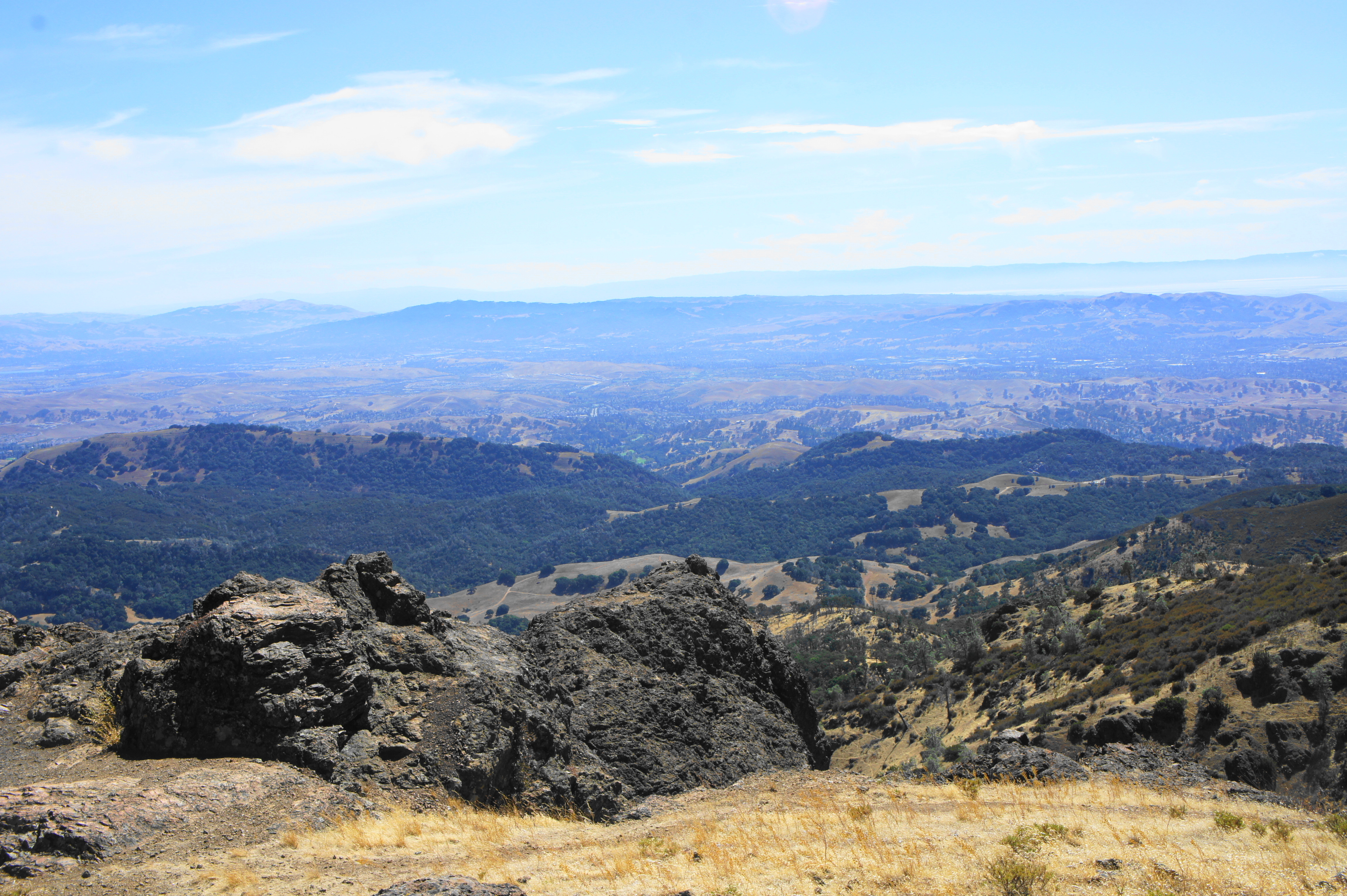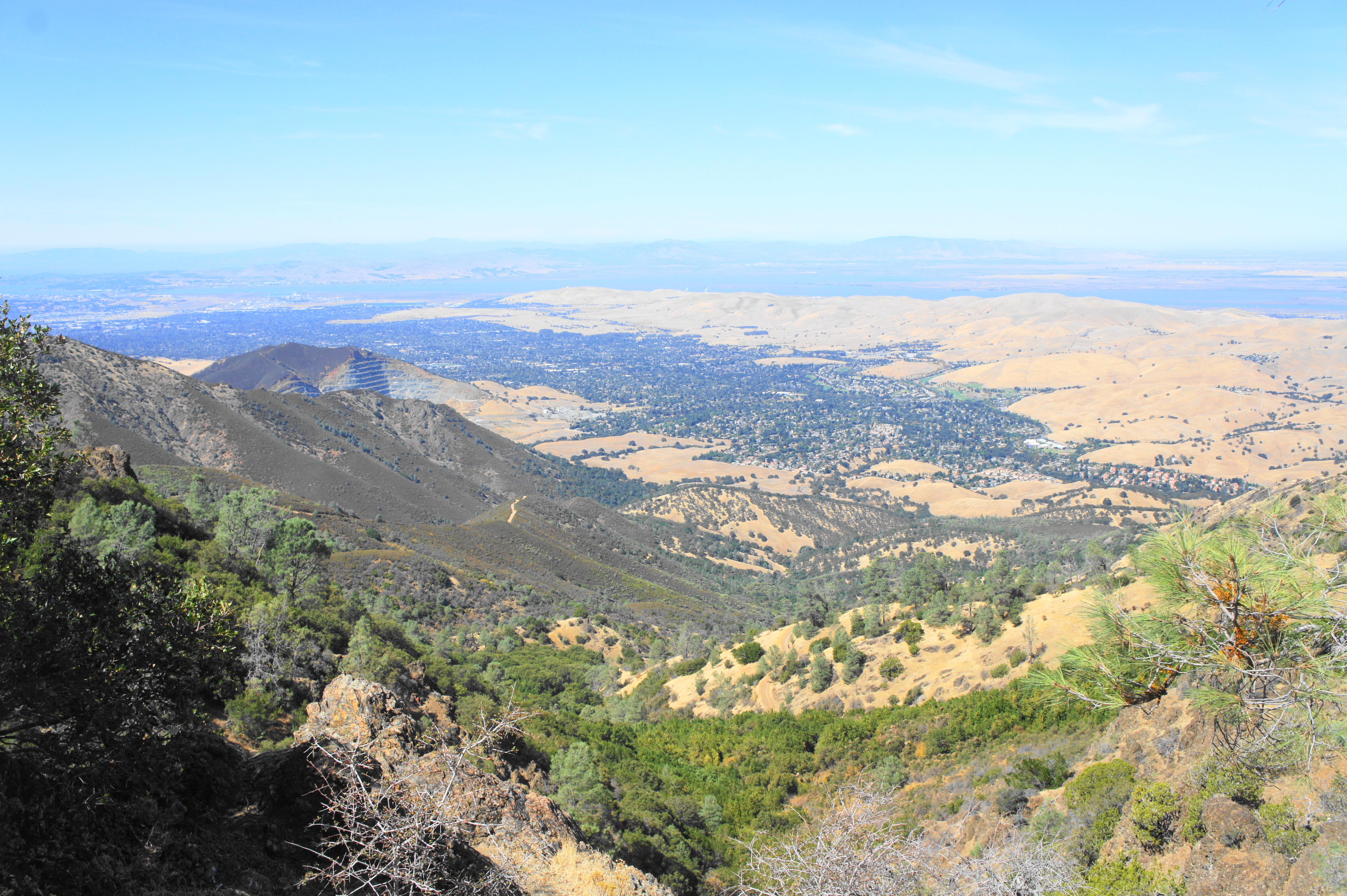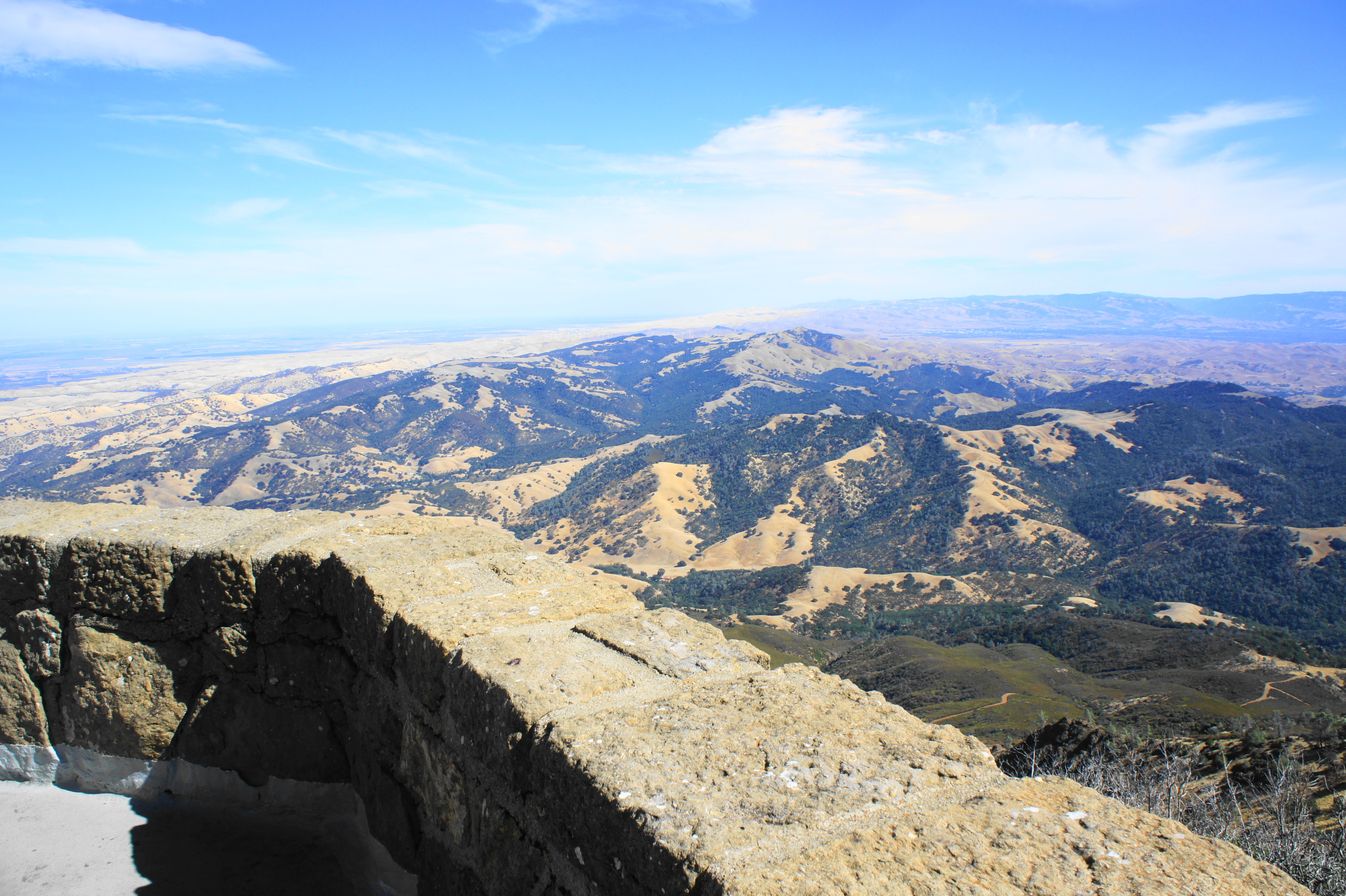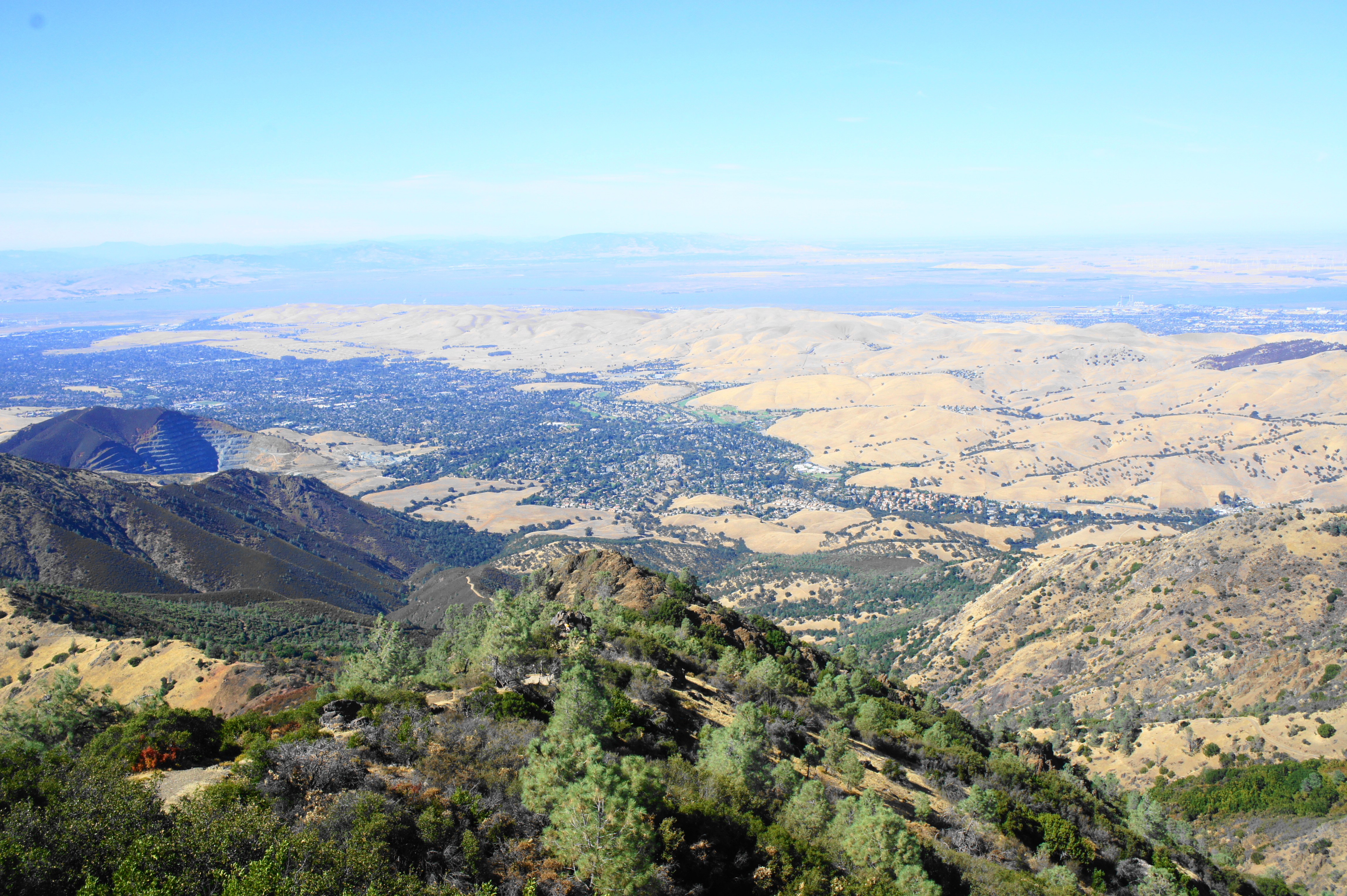 Yet despite the crowds, the 360-degree panorama from the top is one of the best in the Bay Area: on a clear day, one can see as far north as Lassen Peak and east to the Sierra Nevadas; barring haze or fog, the city of San Francisco, the South Bay, Mount Tamalpais, and the Santa Cruz Mountains can be seen on the horizon to the west. In between are a ragged mixture of peaks and valleys, including the Diablo Range, Briones Hills, and Oakland Hills.