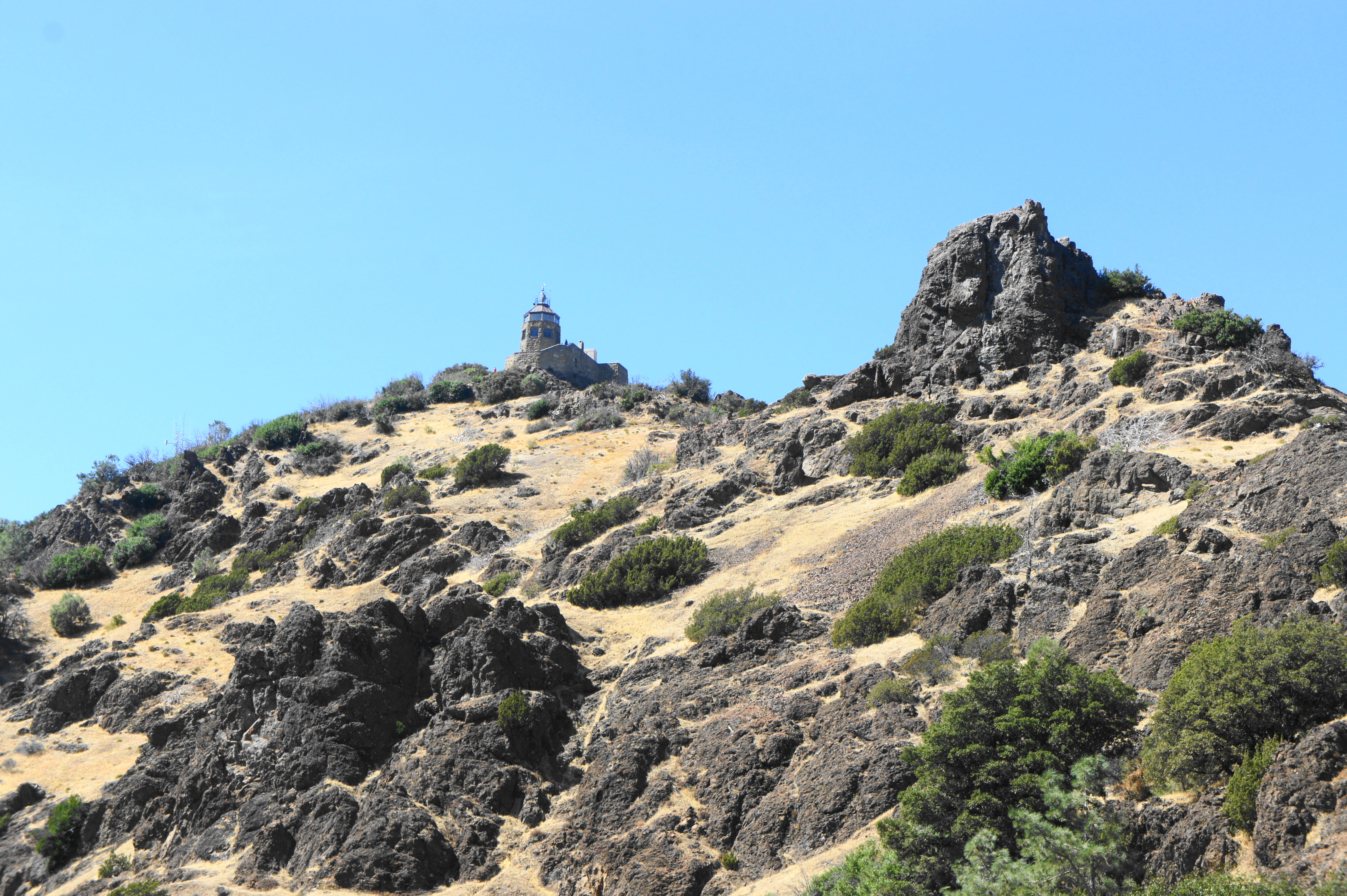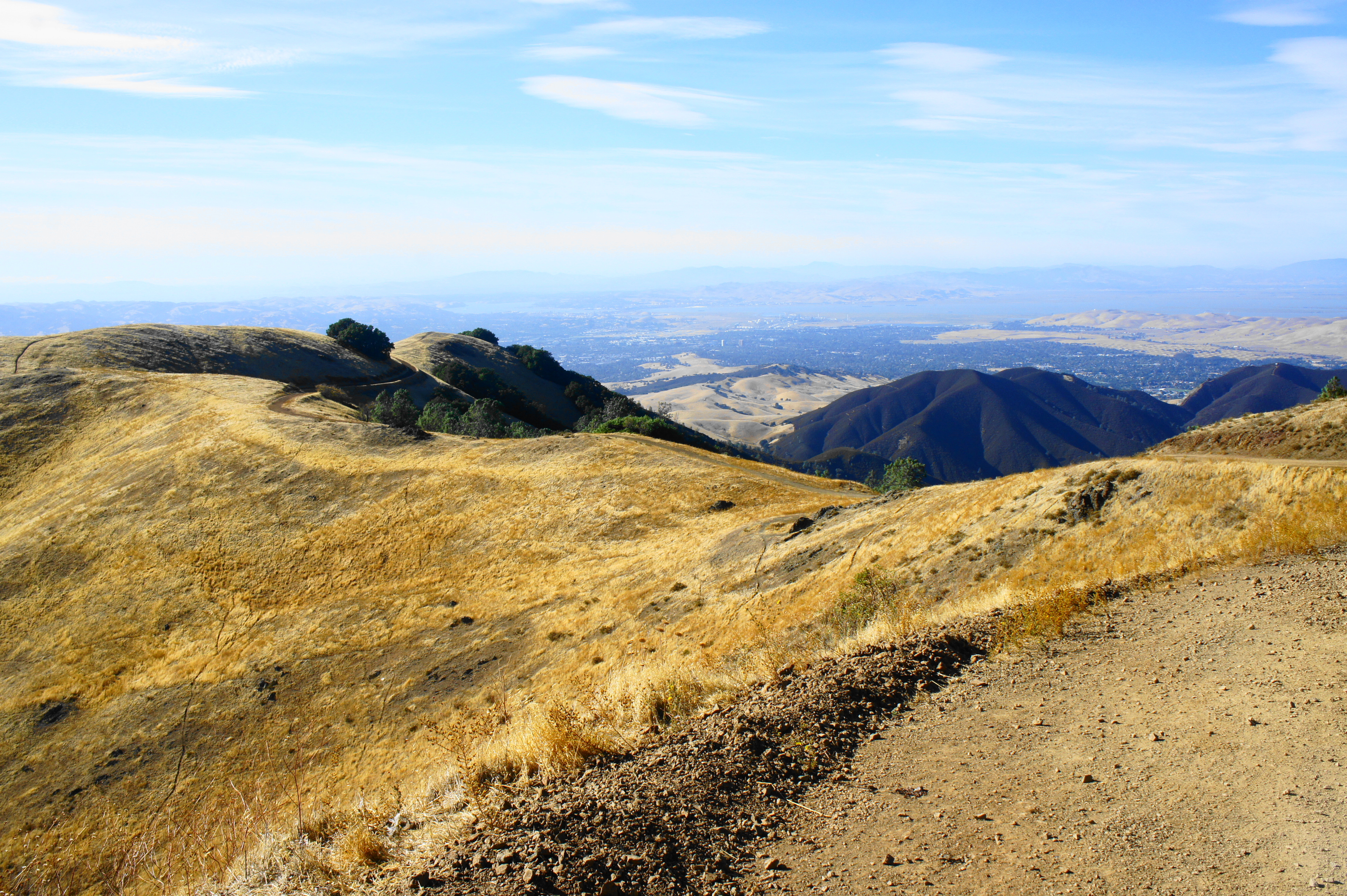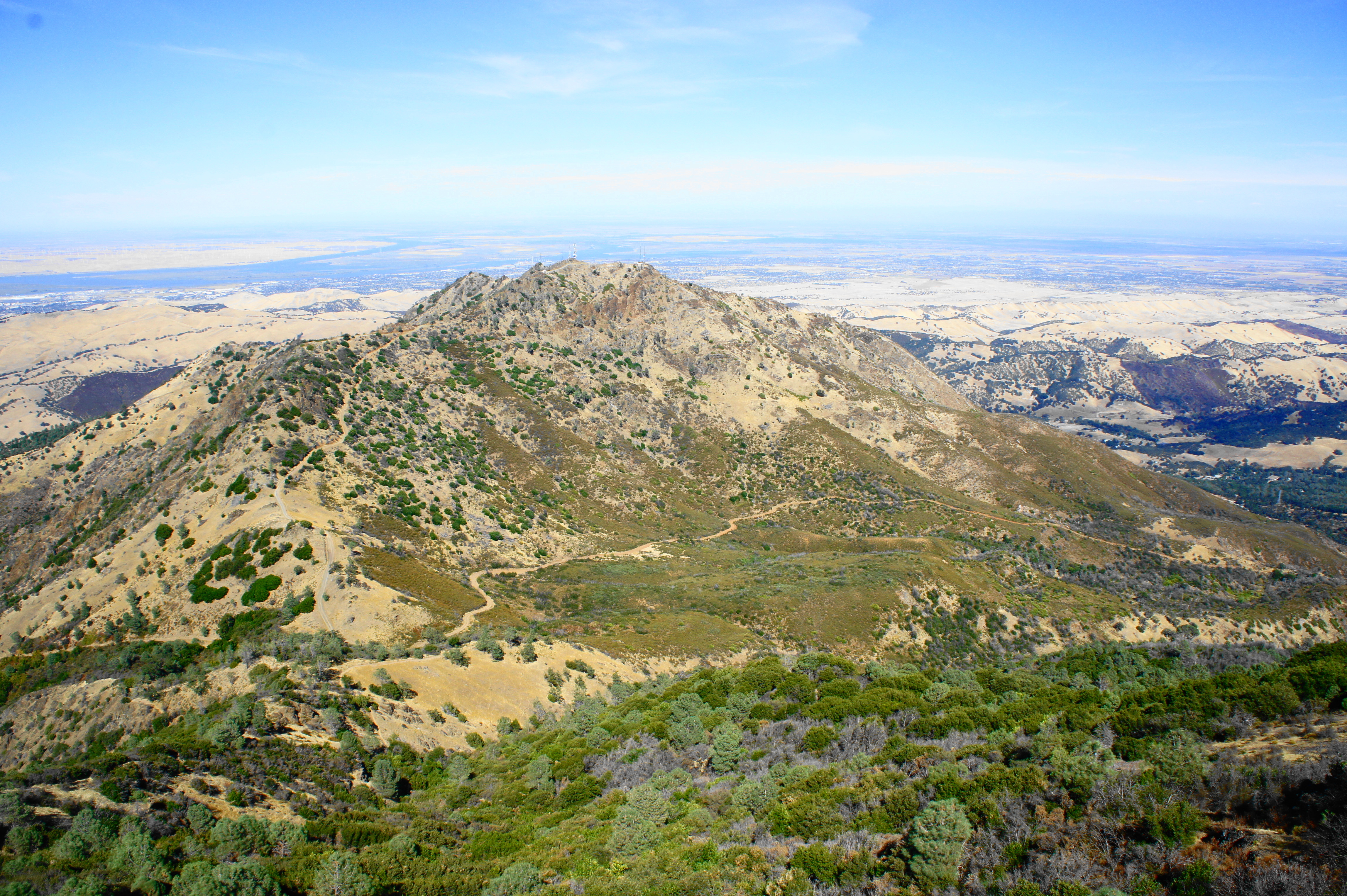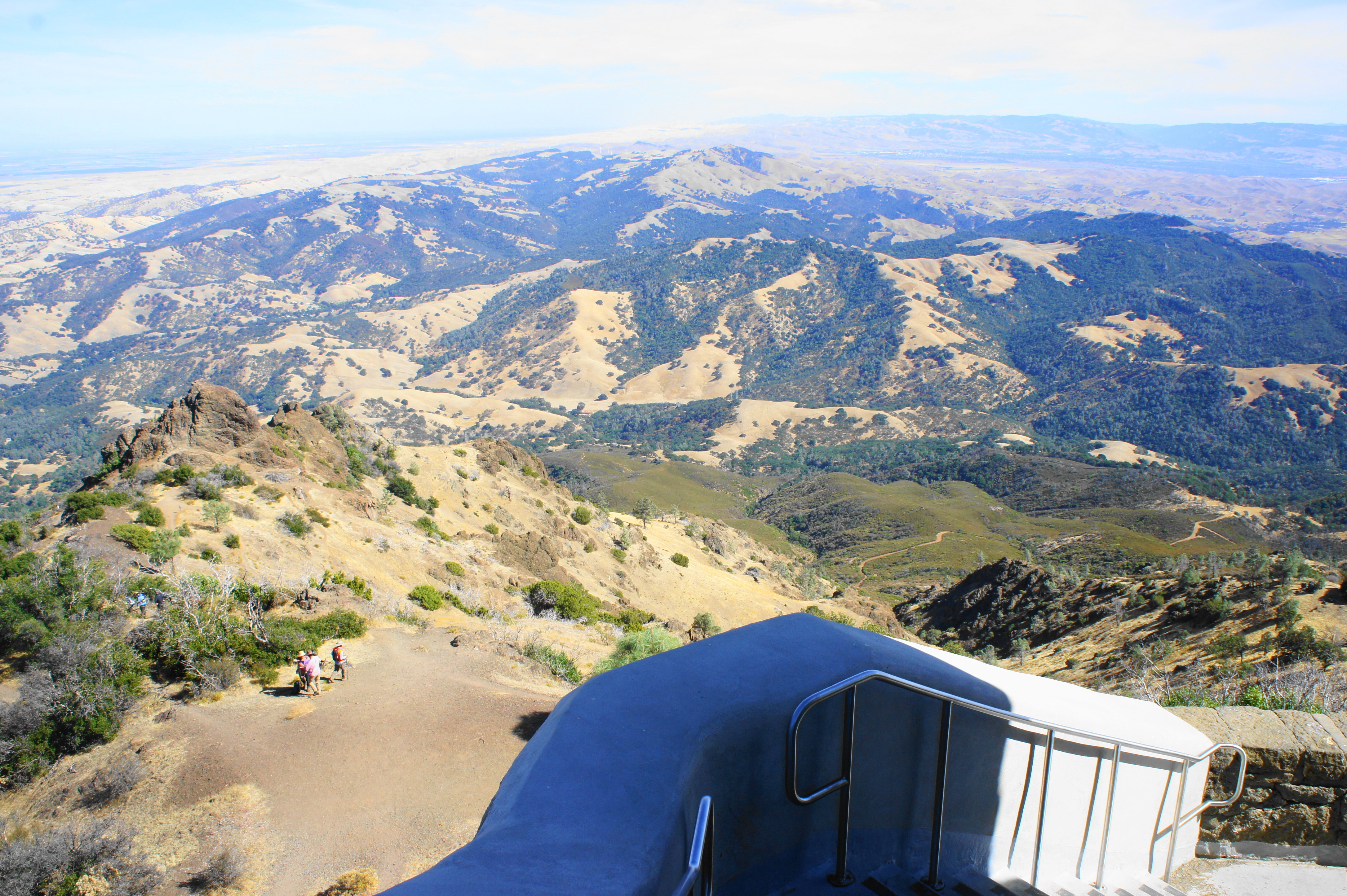 Yet despite the crowds, the 360-degree panorama from the top is one of the best in the Bay Area: on a clear day, one can see as far north as Lassen Peak and east to the Sierra Nevadas; barring haze or fog, the city of San Francisco, the South Bay, Mount Tamalpais, and the Santa Cruz Mountains can be seen on the horizon to the west. In between are a ragged mixture of peaks and valleys, including the Diablo Range, Briones Hills, and Oakland Hills.