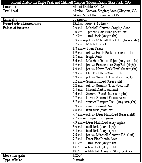 Pingback: Mount Diablo via Macedo Ranch (Mount Diablo State Park, CA) | Live and Let Hike