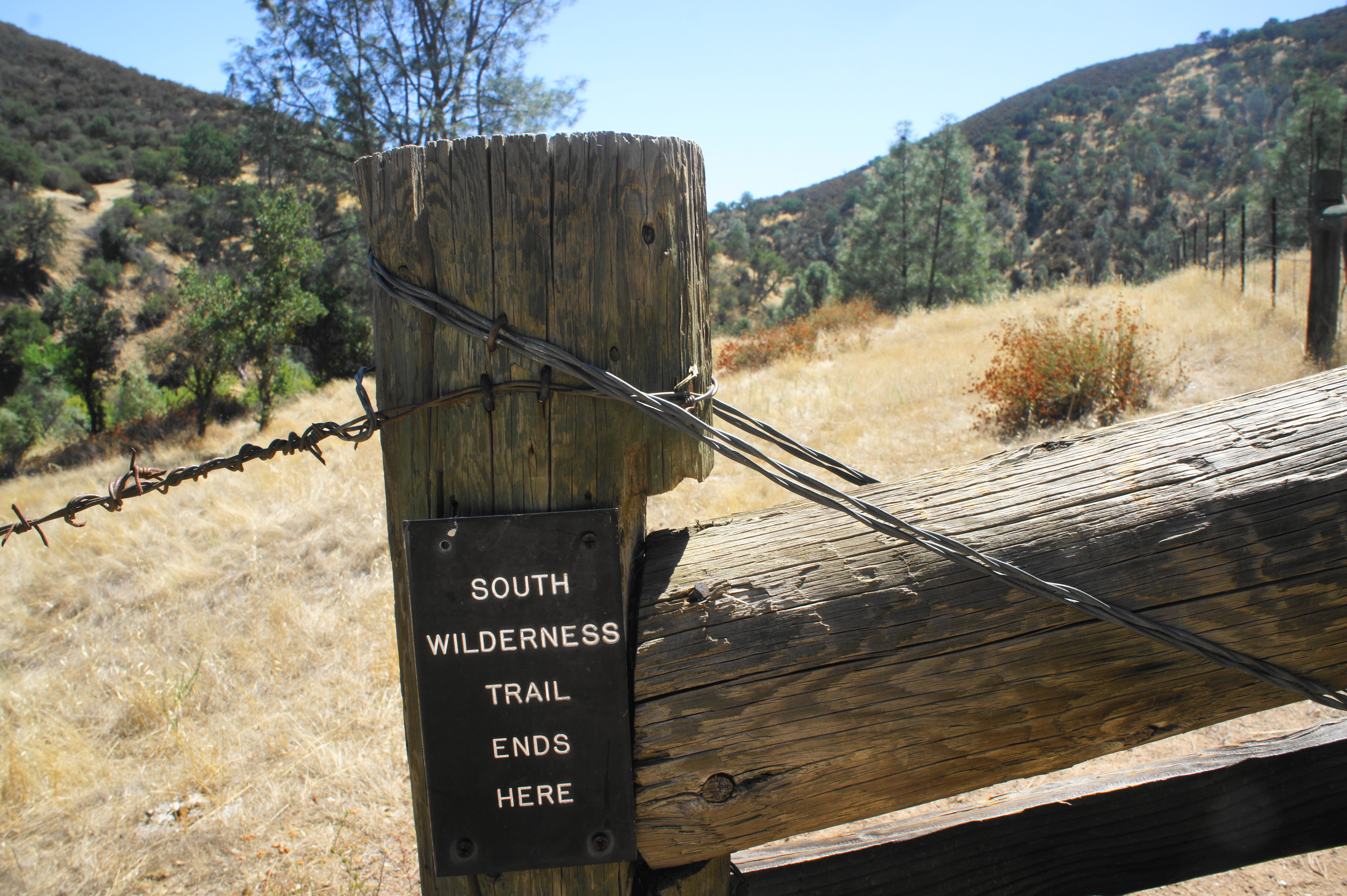 About 2.6 miles from the trailhead, the South Wilderness Trail crests a hill, revealing a turn in the canyon to the right. After a brief downhill, the trail abruptly ends at 2.9 miles at a barbed wire fence, with private property beyond. It is possible to follow a social trail continuing along the fence on the right, but there is little to gain, so this is—for all intents and purposes—the terminus of the hike.