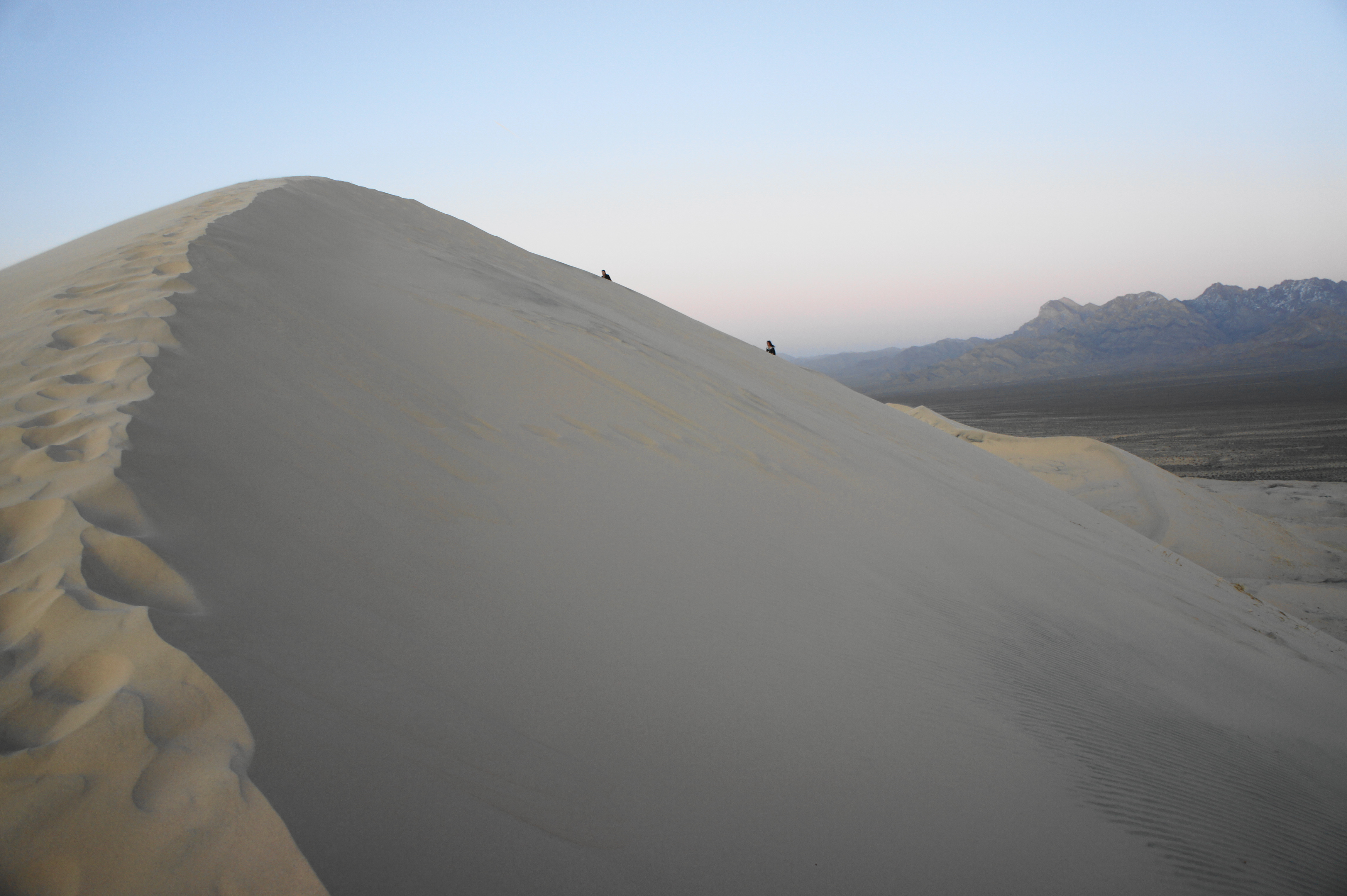 At 1.3 miles, there is no avoiding the monstrously steep ascent to the saddle, which is best taken by switchbacking to the best degree possible in order to avoid a crushing incline. It is at this point that first-time dune hikers will be yearning for flat land—ascending aeolian sand is considerably more difficult than “normal” terrain.