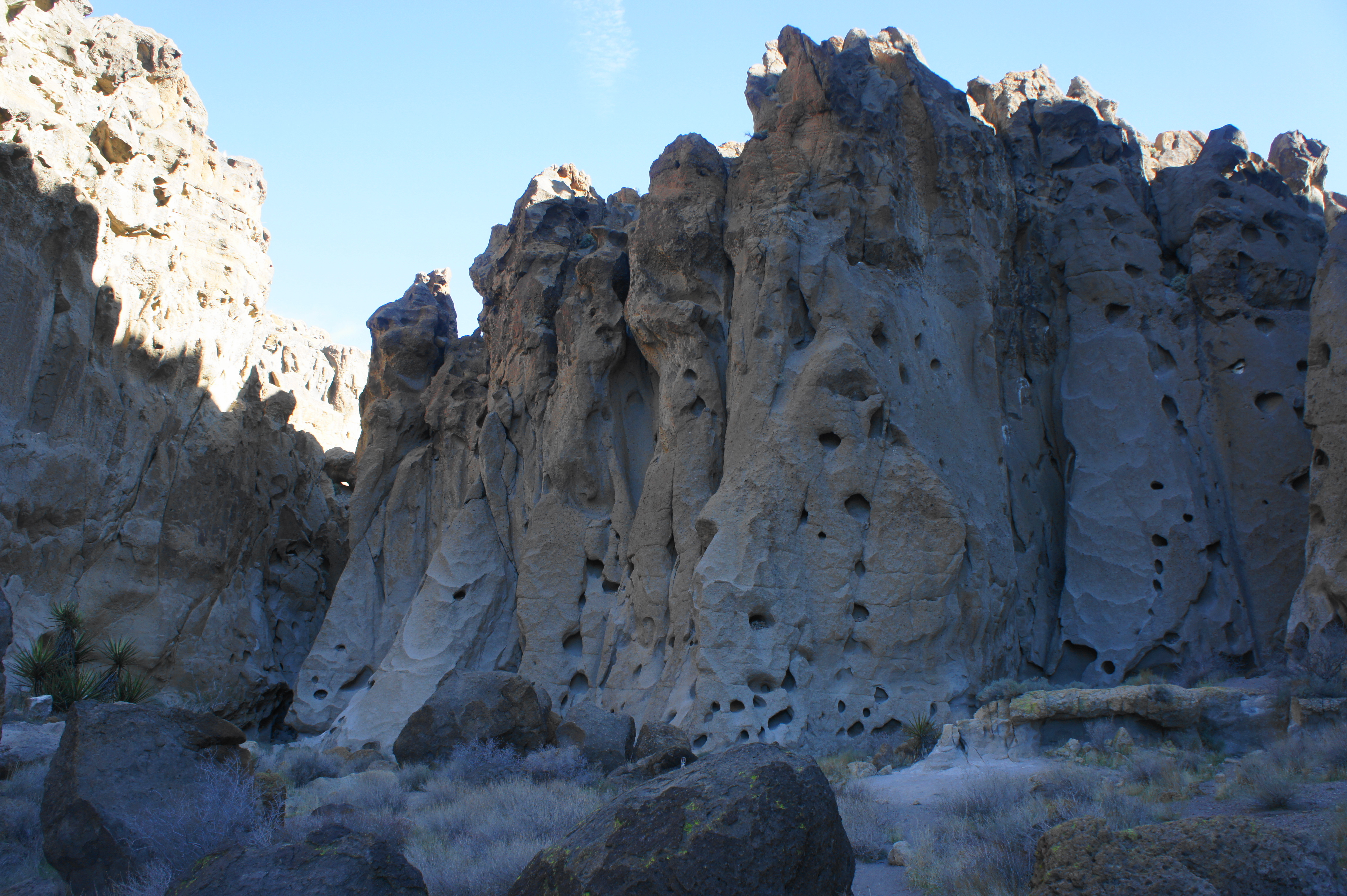 The landscape ahead is terrifically weird: weathered openings in the rock (called tafoni) give the canyon walls an appearance of swiss cheese, while the uneven heights of the rock transform the walls into ghost-like figures. It’s easy to let the imagination run wild as the trail edges deeper into the canyon.