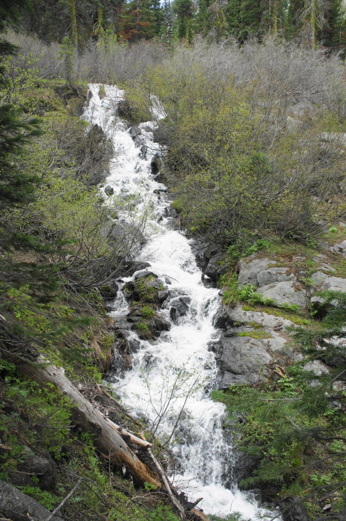 At this point, listen for the roar of Trail Gulch Creek and divert off to the right across an open meadow for a short detour to the hike’s best cascades, which, at least in spring, are thundering down the willow-choked hillside. Southward views to the Russian Wilderness from this spot are also excellent.
