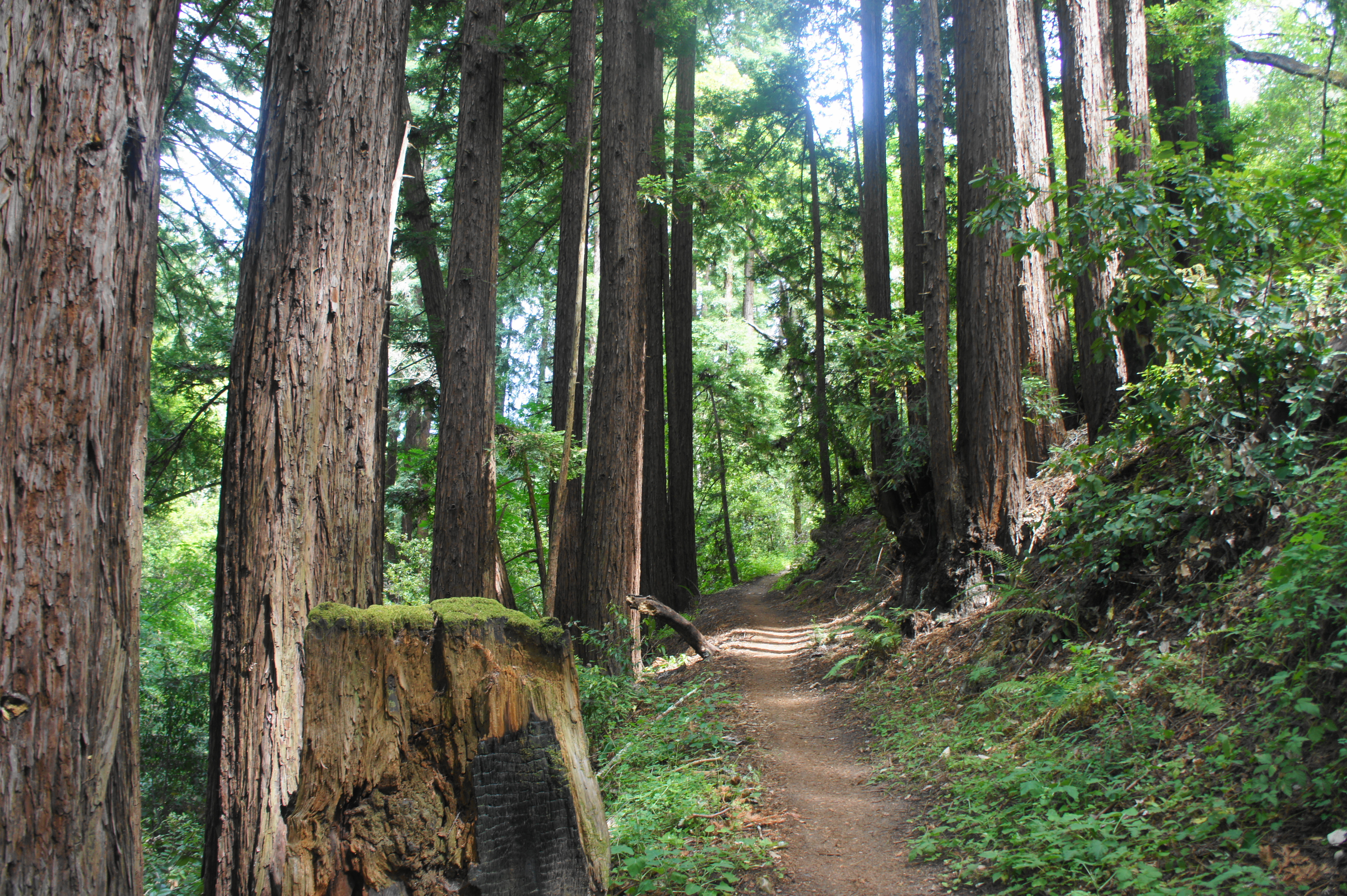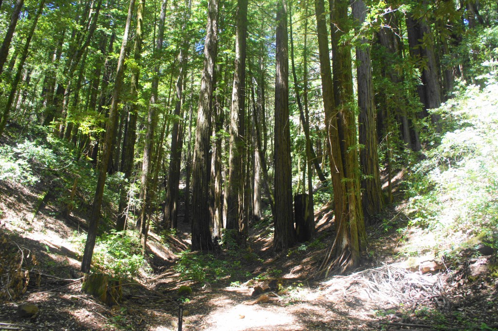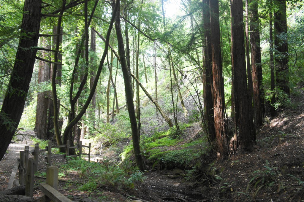 Modest redwoods along the Crystal Springs Trail in Huddart Park