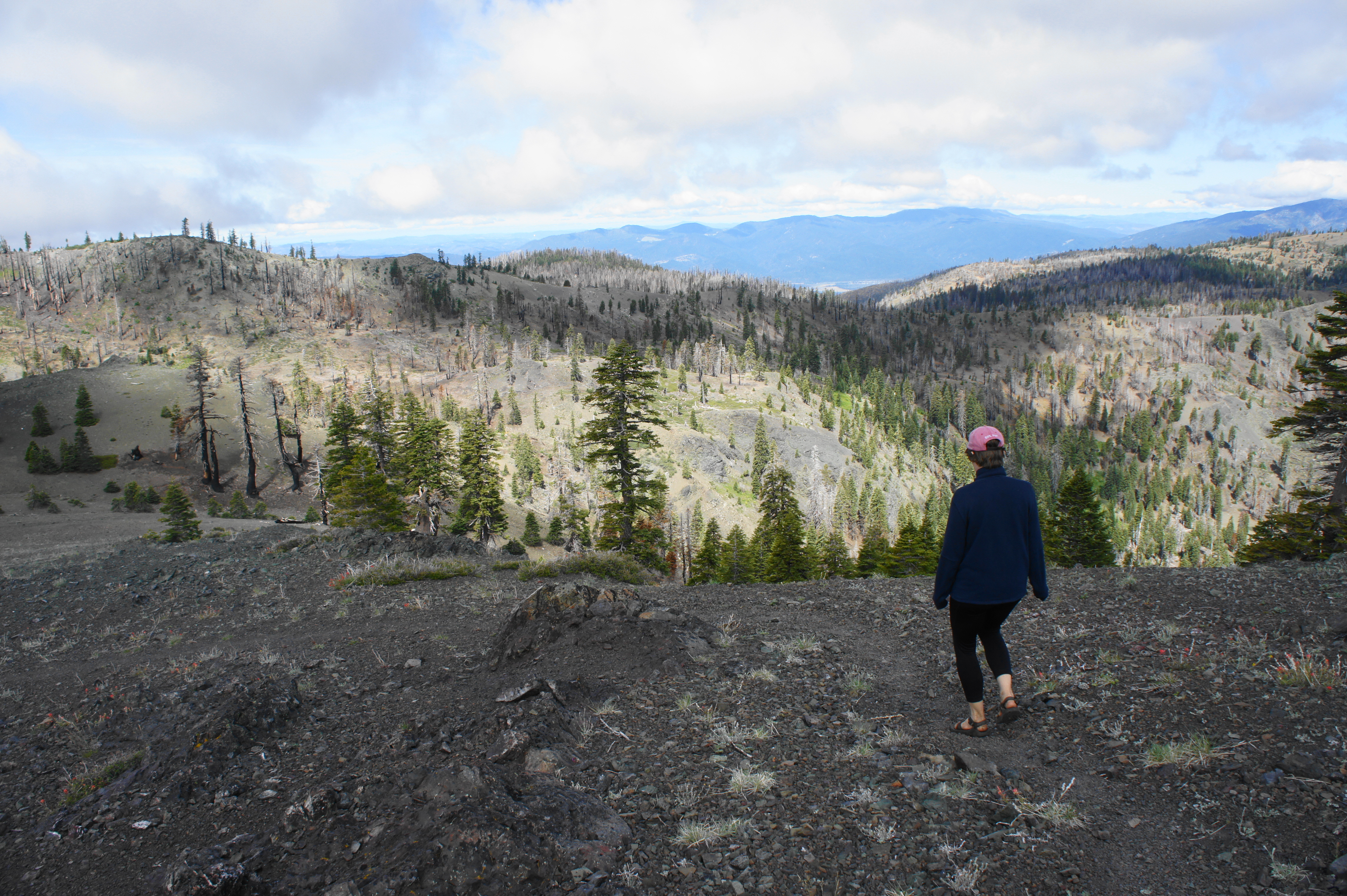 Of course, the climbing is not yet done, and the path begins to ascend steadily again through the pines at around 1.5 miles. After a quarter-mile, the route crests the high saddle between the two peaks of Snow Mountain—bear left to head to the West Peak (7,038’) or right to top the East Peak (7,056’). If one has to choose, pick the East—it is higher, after all, and, on clear days, offers expansive views across the Central Valley as far as Lassen Peak and Mount Shasta.