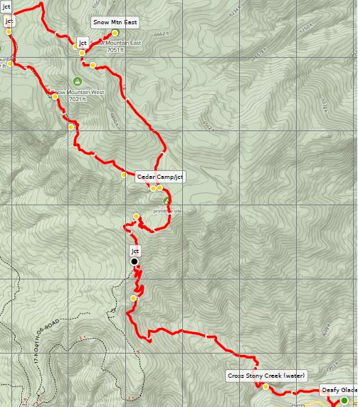 Cedar Camp to Deafy Glade Trailhead (5.9 mi.)