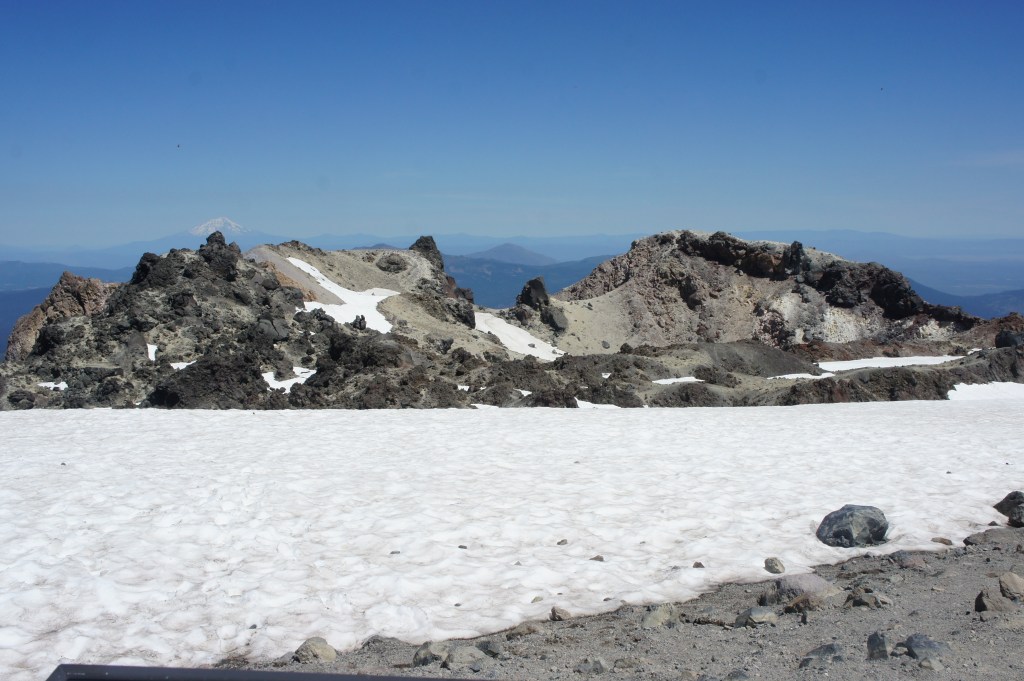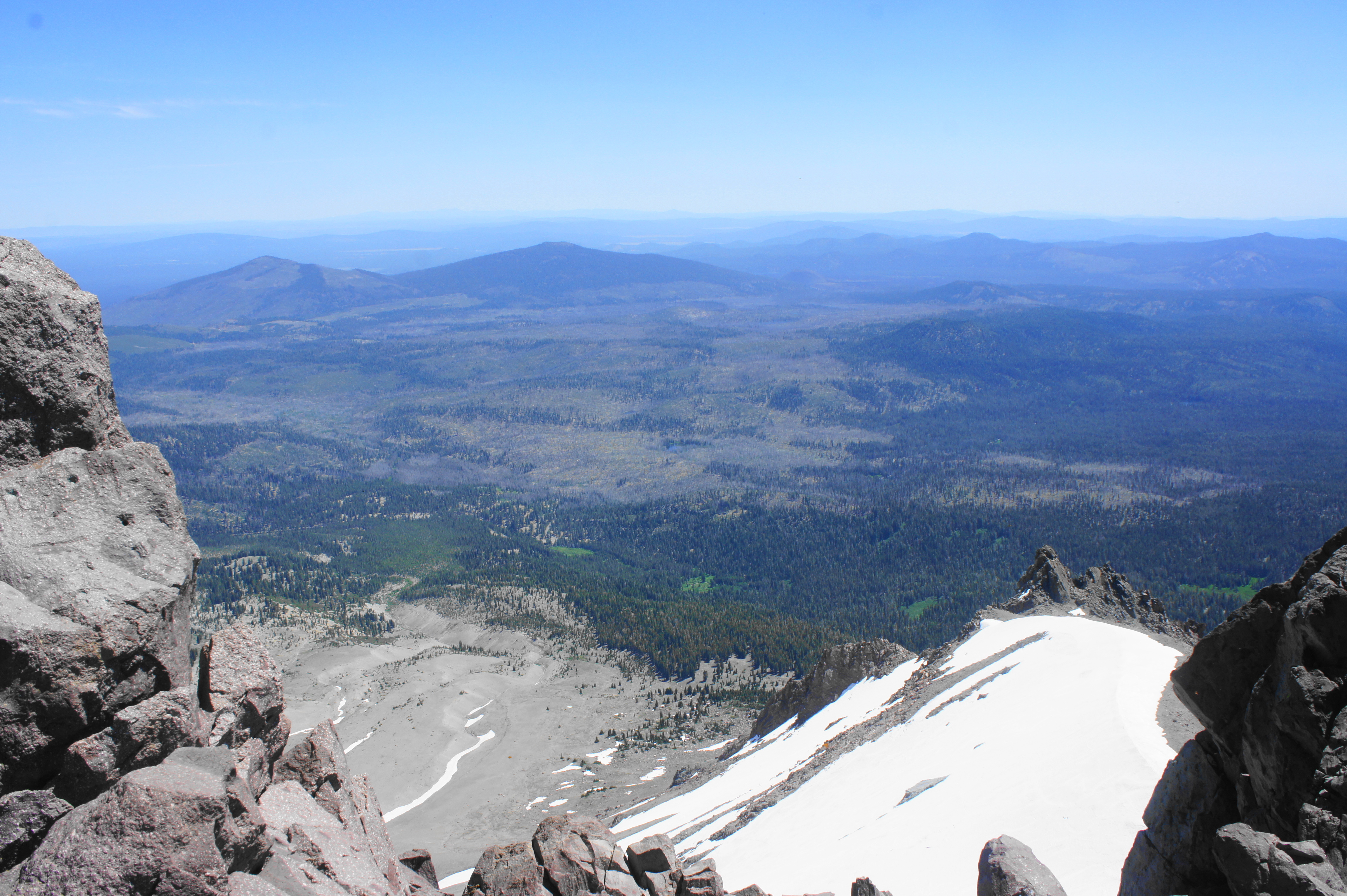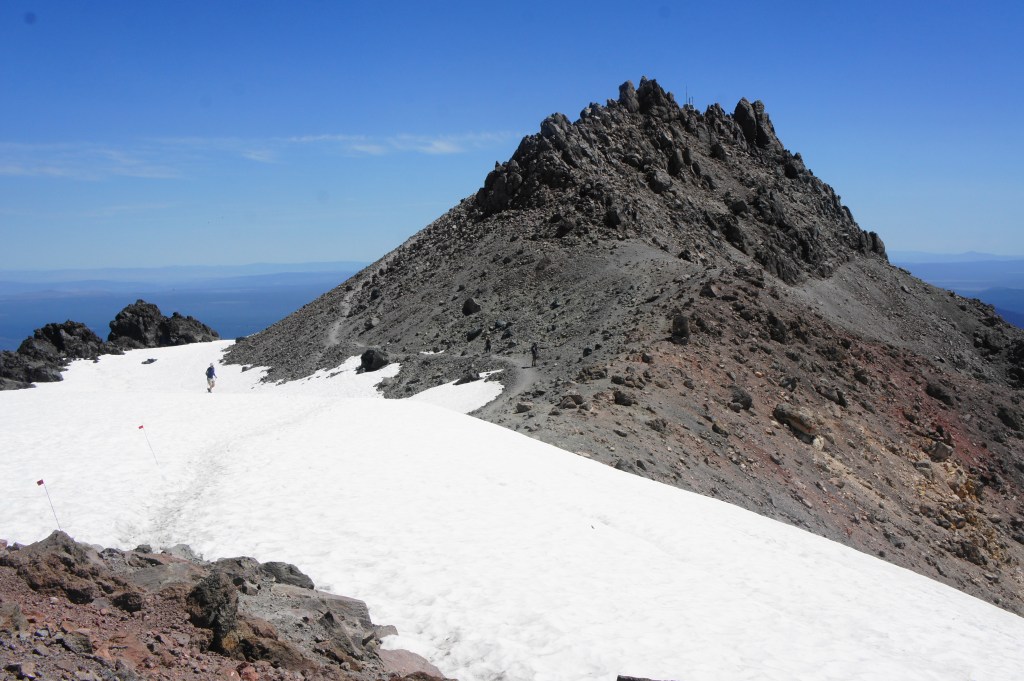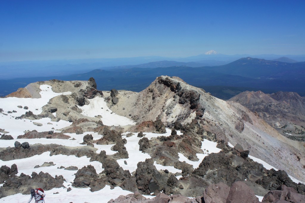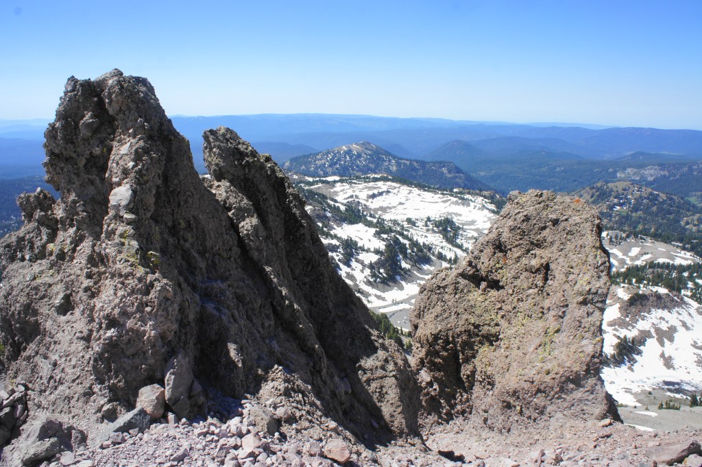 From the “false summit,” one can also see the perennially snow-capped Mount Shasta (14,179’) to the north, perhaps an even more impressive volcano that also has remained dormant for thousands of years. Also to the northwest are the Trinity Alps, a beautiful range of often snow-topped peaks, as well as the northernmost reaches of the Central Valley.