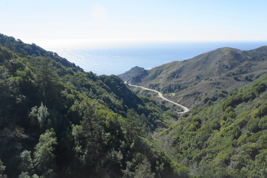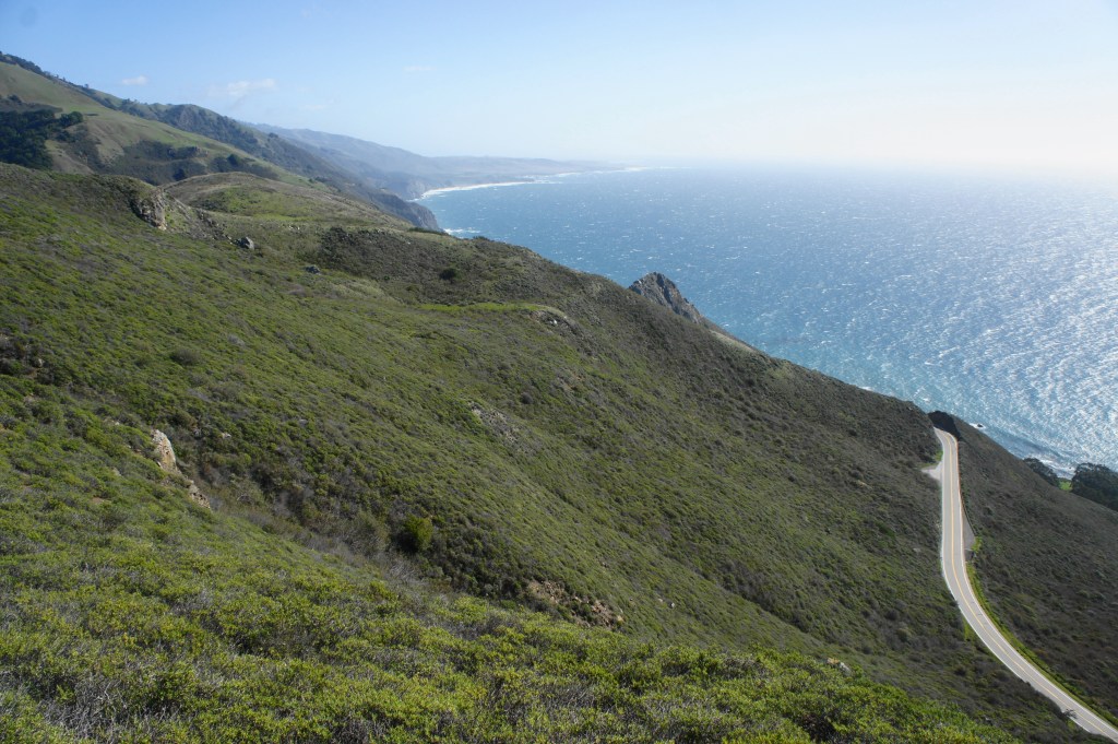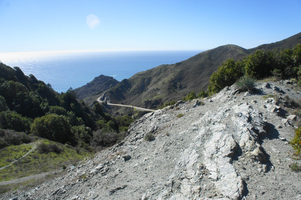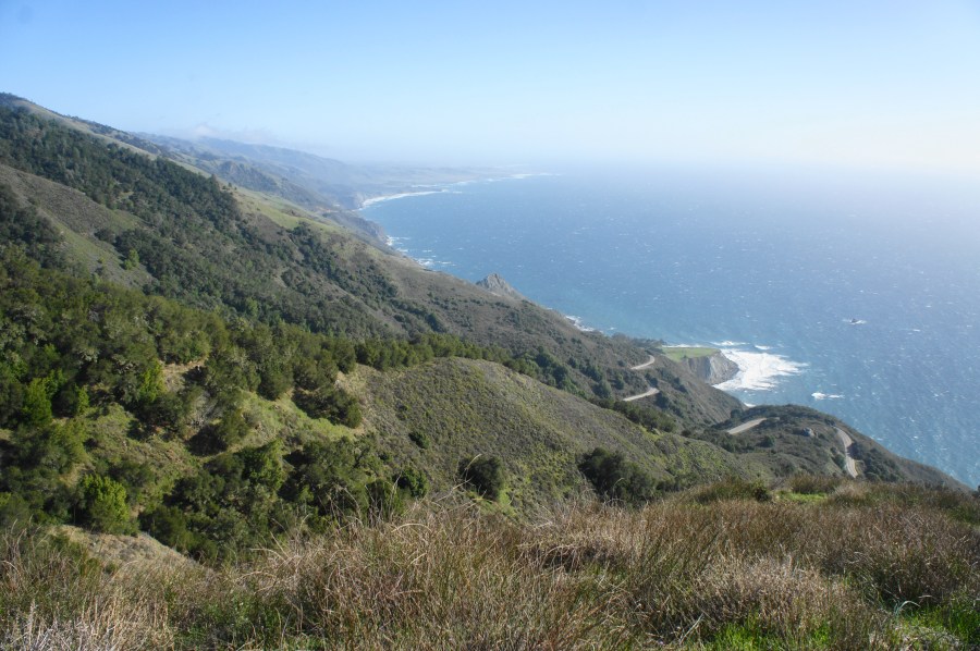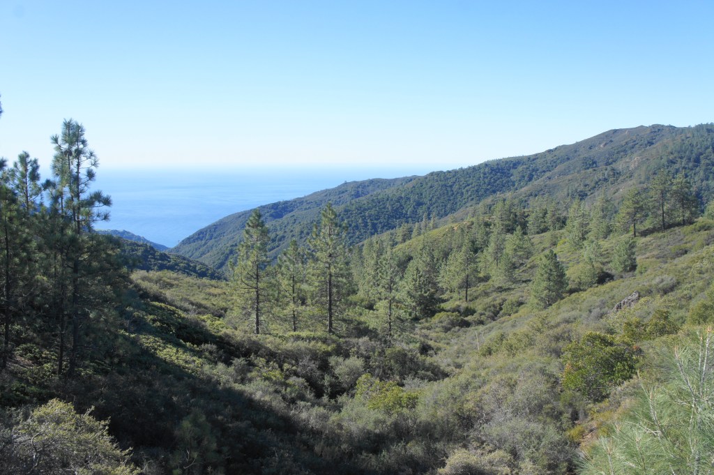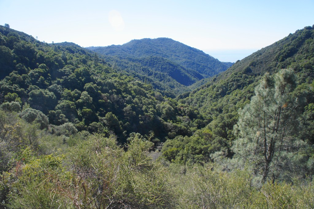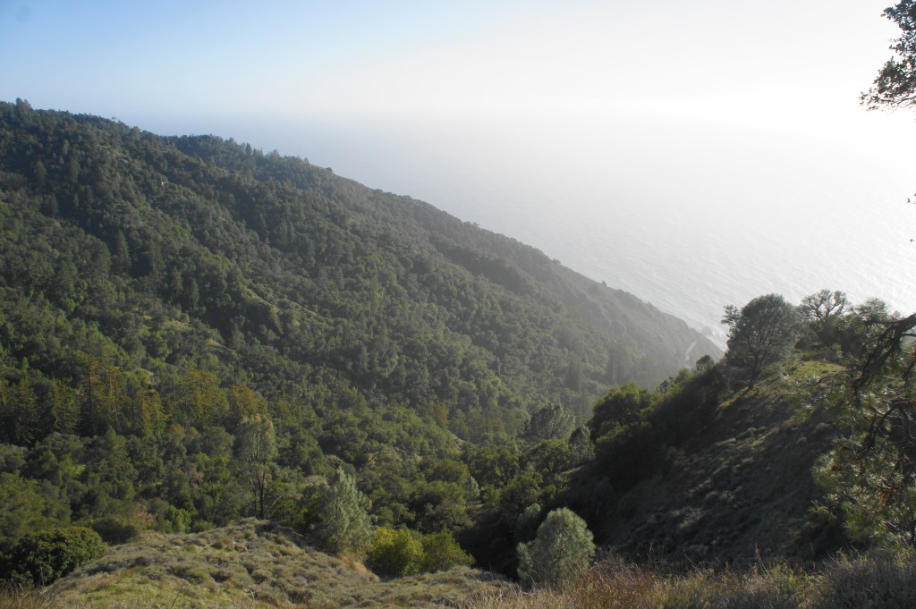 Bear right on South Coast Ridge Road, then emerge at a high gap with perhaps the hike’s best views. To the right, one can see down the Salmon Creek drainage to the coast, with Silver Peak and Mount Mars (2,674’) dominating the skyline. To the left, the views are better: hikers can see clear across the Santa Lucia Range to Burro Mountain (2,827’), Stony Valley, and the San Antonio drainage. On the horizon, one can see past Highway 101 and the Salinas Valley to the southern Gabilan Range.
