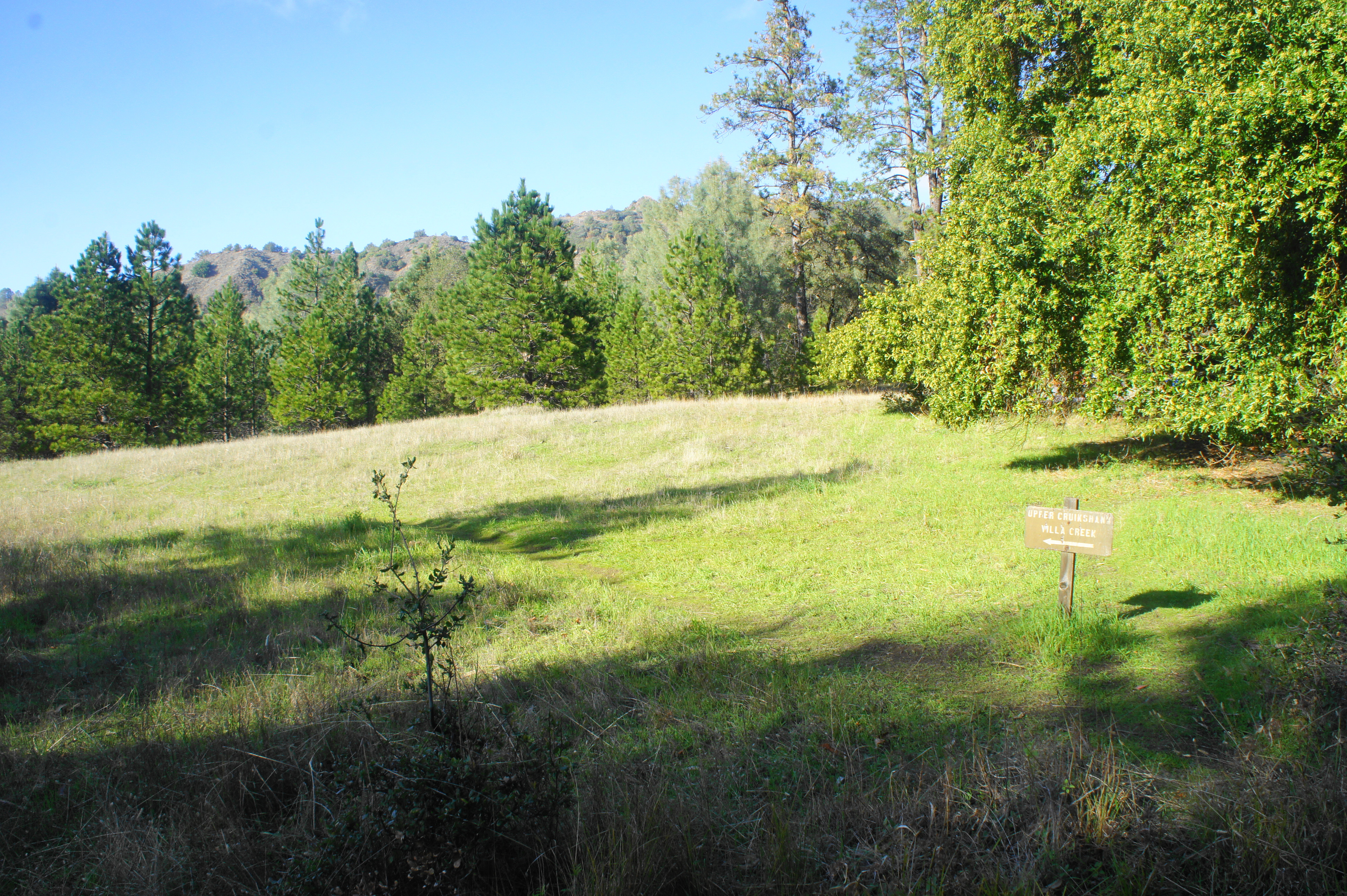 At 3.6 miles, hikers reach Buckeye Camp, a lovely meadow lined with stubby pines but devoid of ocean views. There are several designated campsites here. The most easily accessible is off to the right, just after passing over a small stream that serves as a seasonal water source. There is a fire pit and picnic table. Other sites are situated farther down the trail, near the west and northern ends of the meadow. As the path reenters the woods, it drops to two designated sites on the left. The path quickly descends to clear the main stream flowing through Redwood Gulch, which is likely—although not assuredly—to carry water year-round.
