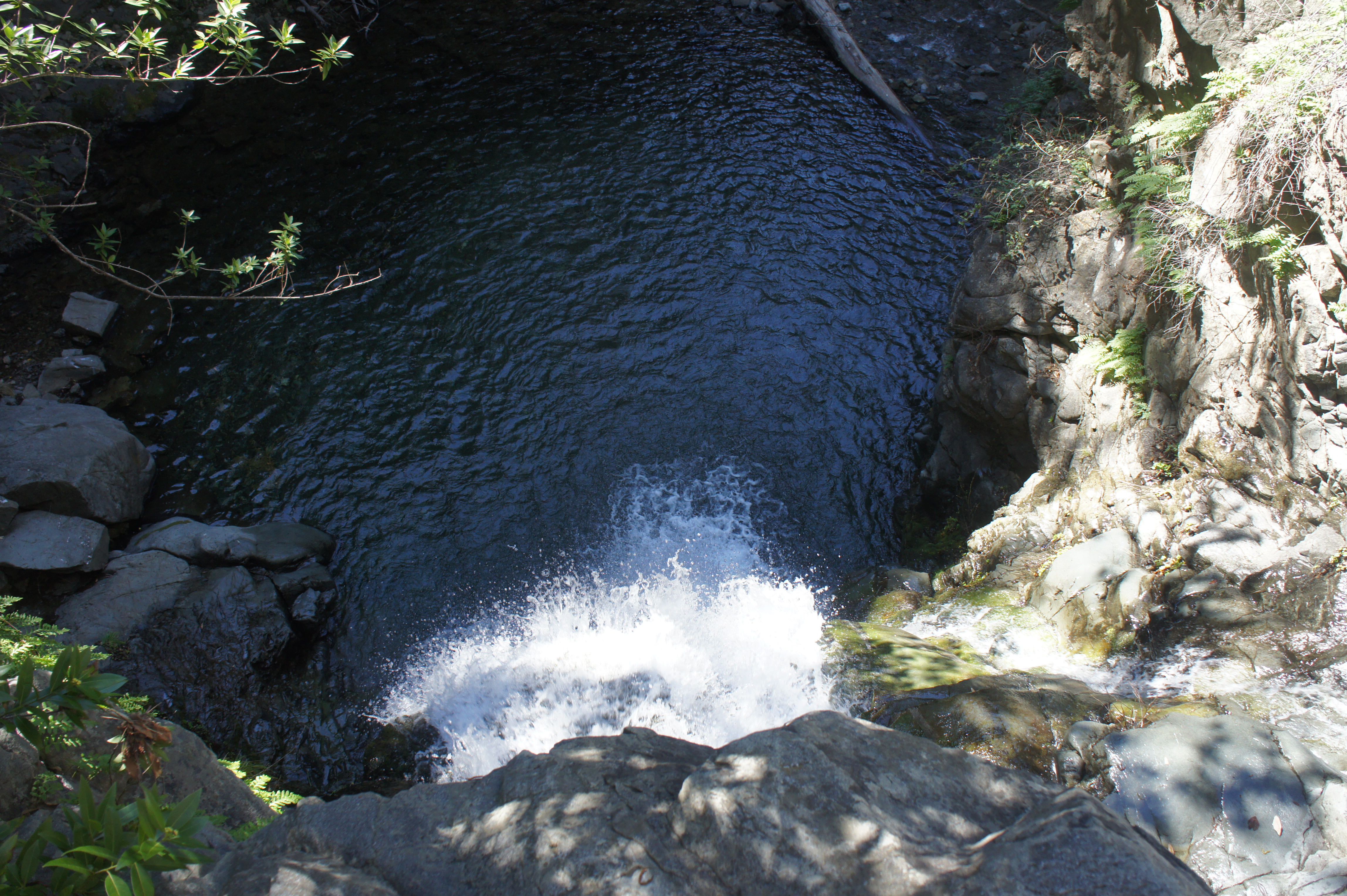 Roughly 6/10 mile beyond Estrella Camp, look for a steep but well-worn path heading off to the right. This track descends to Upper Salmon Creek Falls, a secluded and beautiful spot that makes for a worthy detour. Drop your packs and be careful descending. The trail pops out above the falls; from here it is a 30-foot, Class 2/3 scramble down to the base of the waterfall, where there is a nice bowl-shaped pool. This is a clear highlight of the hike and a nice spot for a lunch/snack break.