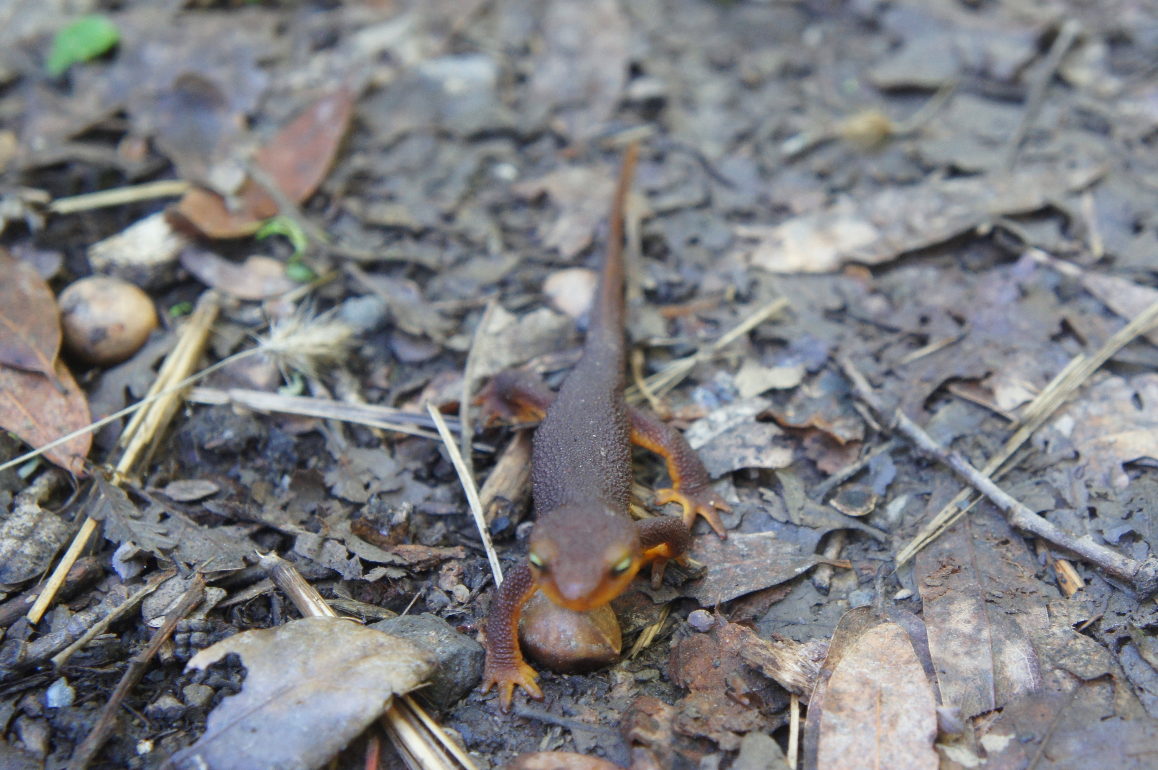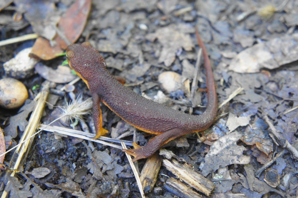 Stay left at the junction, continuing down Soda Springs Canyon. In addition to a variety of tree and shrub species, California newts can be seen in winter and early spring migrating to and from the slithering stream.