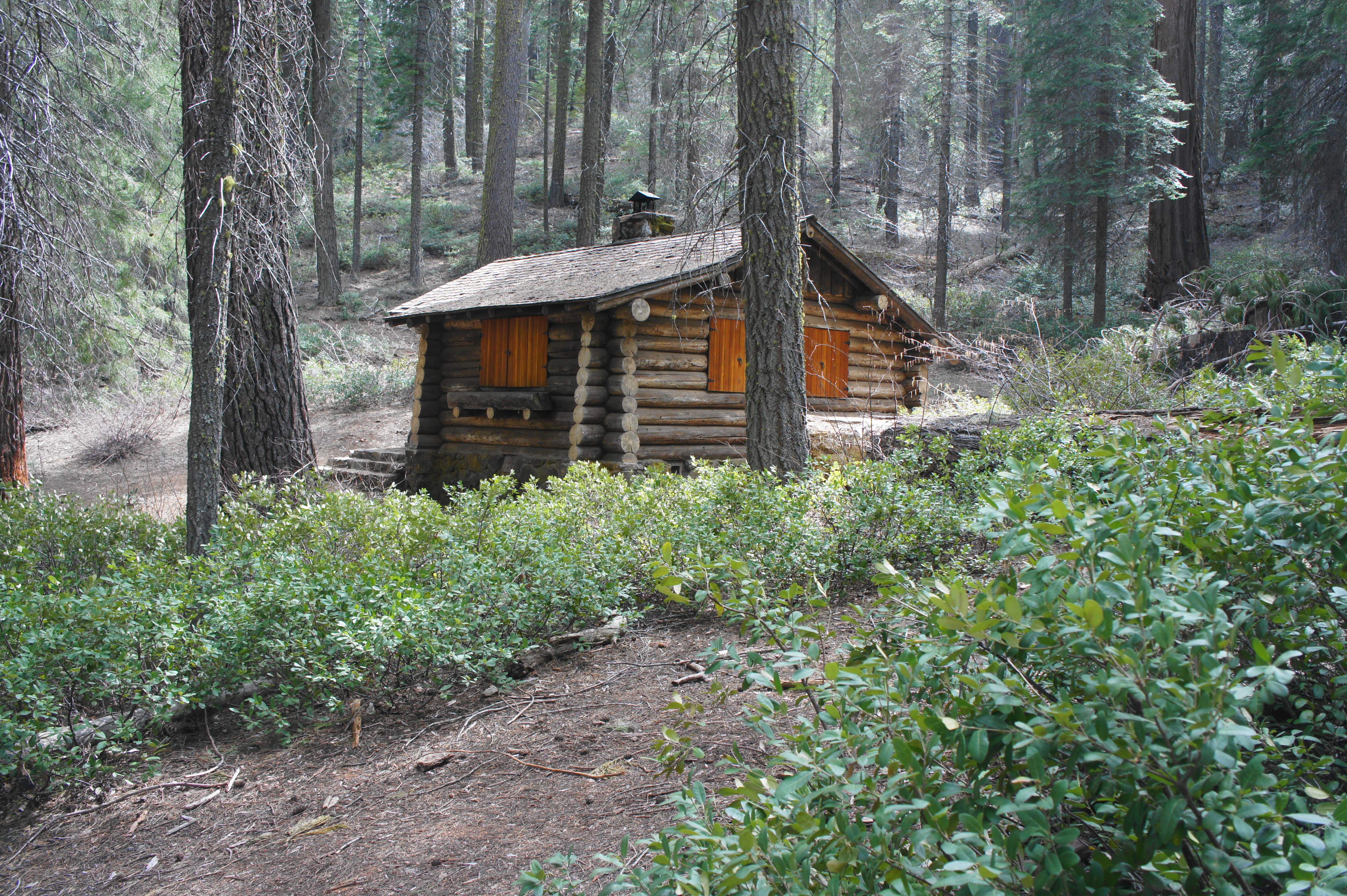 Finally, at 1.6 miles, the trail passes two more behemoths on the left, with an old park ranger patrol cabin off to the right. Although a few other sequoias are visible further south, this is the turnaround point for the moderately-difficult hike. (Note: The onward trail continues south to the park boundary.) Return the way you came, completing a 3.2-mile journey that should take 1.5-3 hours depending on pace.