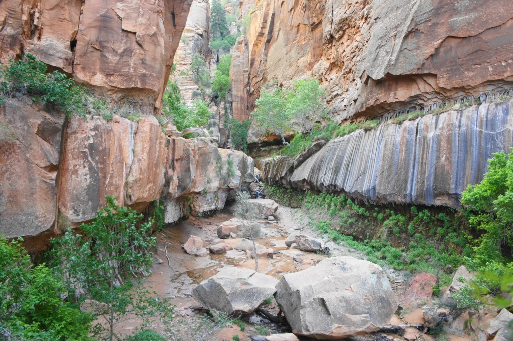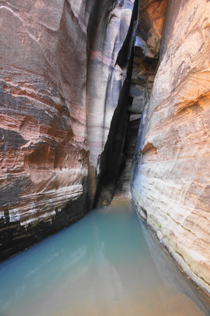 At the far end of the subway is a lovely, multi-tiered cascade that could pass as a waterfall, a highlight of the hike. (Note: At higher elevations, there may be additional waterfalls, depending on recent rains/snowmelt, but this is the most reliable.)
