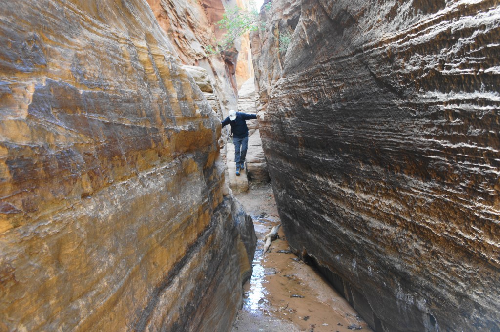 The trail continues onward from here, offering access to additional narrows and eventually Top Rock, White Domes, and the summit of Canaan Mountain. However, most will turn around at this point, retracing one’s steps back down 1.1 miles to the start. This shortened version is moderately difficult, with some steep sections, requiring about 2-3 hours to complete.