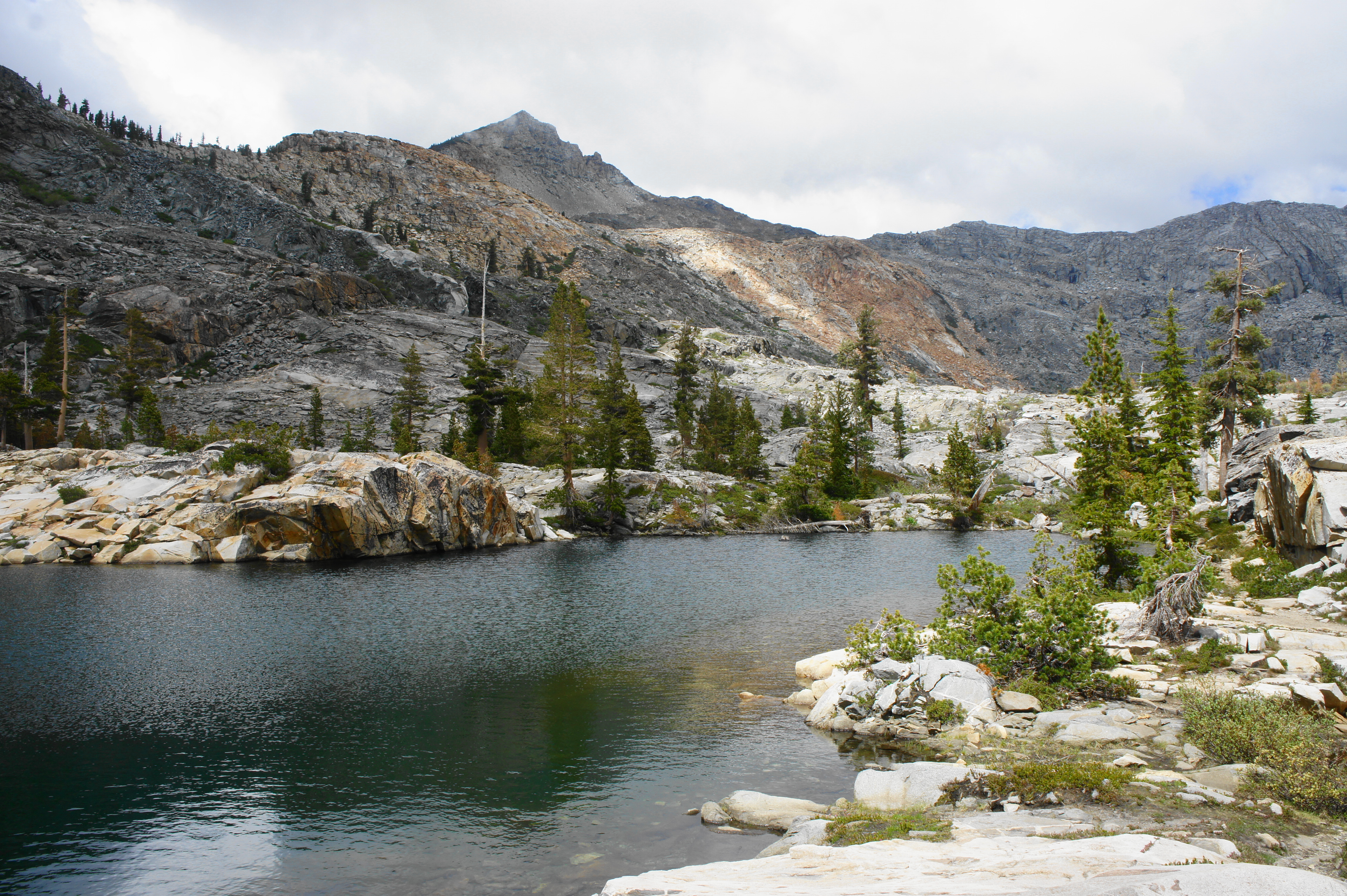 Island Lake is the largest lake (besides Wrights Lake) visited on the hike and is named for its various islets scattered across the water. The lake’s eastern shores signal the end of the trail, with onward passage obstructed by high walls and scree fields. This lake is situated deep in the Crystal Range, surrounding on three sides by towering peaks and knobs rising to nearly 9,500 feet above sea level. Although still relatively low elevation by Sierra Nevada standards, this looks and feels like high alpine terrain.