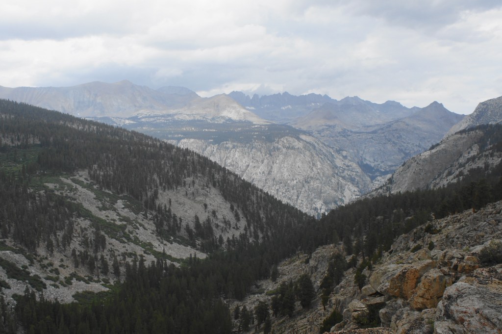 From here the trail ascends in fits and starts, clearing one ridgeline after another in a seemingly endless climb to Bighorn Plateau. After skirting several minor drainages and cresting several hilltops, the JMT finally breaks out above timberline at about 6.5 miles.
