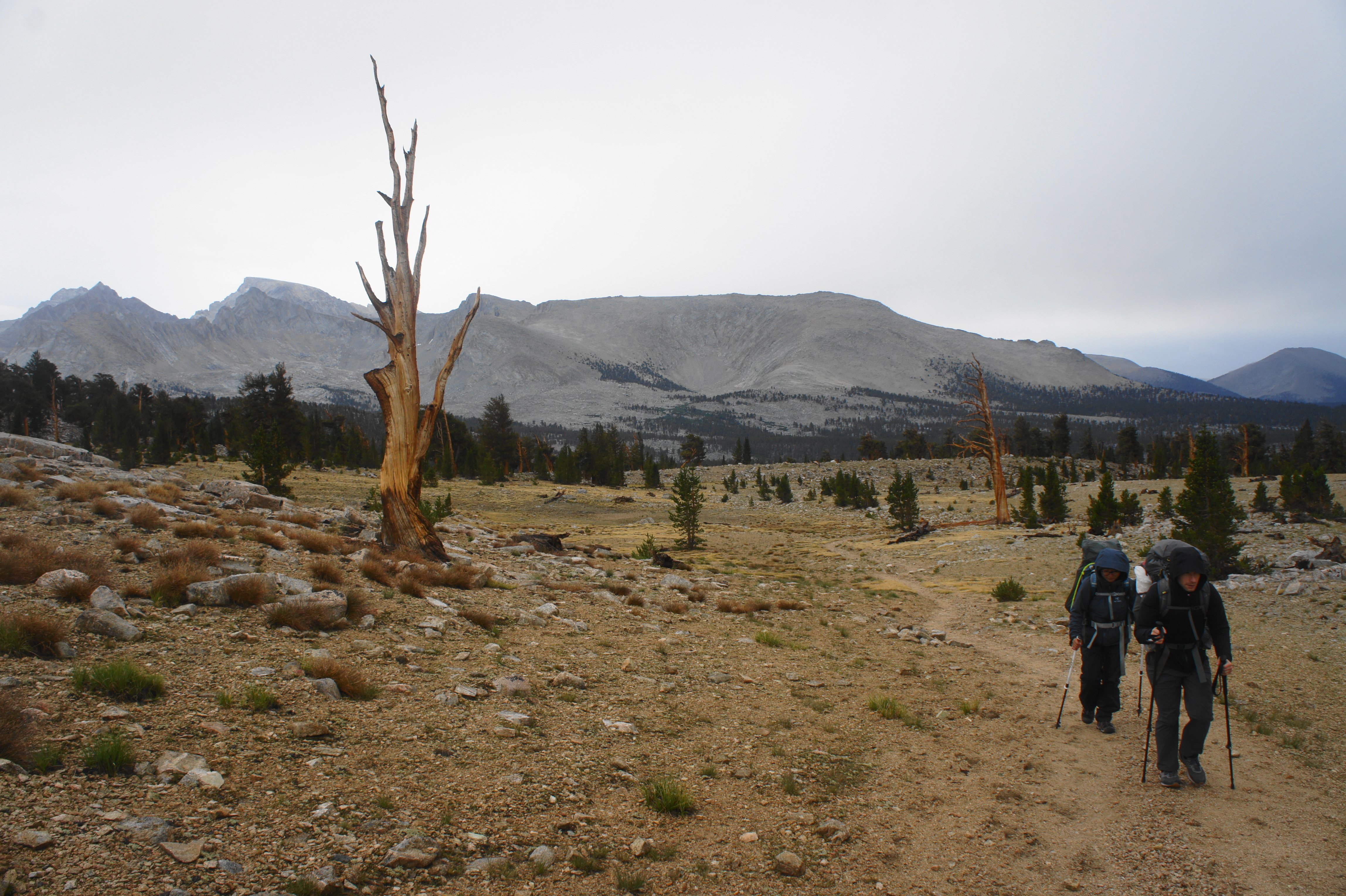 Trip Report: We covered this nine-mile section on Day 4 of our hike, and we fared little better with the monsoon thunderstorms than our previous day. In fact, while we made it past Wallace Creek and partway up to Bighorn Plateau under merely overcast skies, the weather turned sour around 1pm, with a lightning storm that endured for well over an hour. Fortunately, the skies cleared partly for our journey over the epic plateau, and by the evening, we saw our first rays of sun since Day 1. Our campsite at Tyndall Creek was considerably better than our modest spot at Crabtree, but this area is still very popular with thru-hikers.