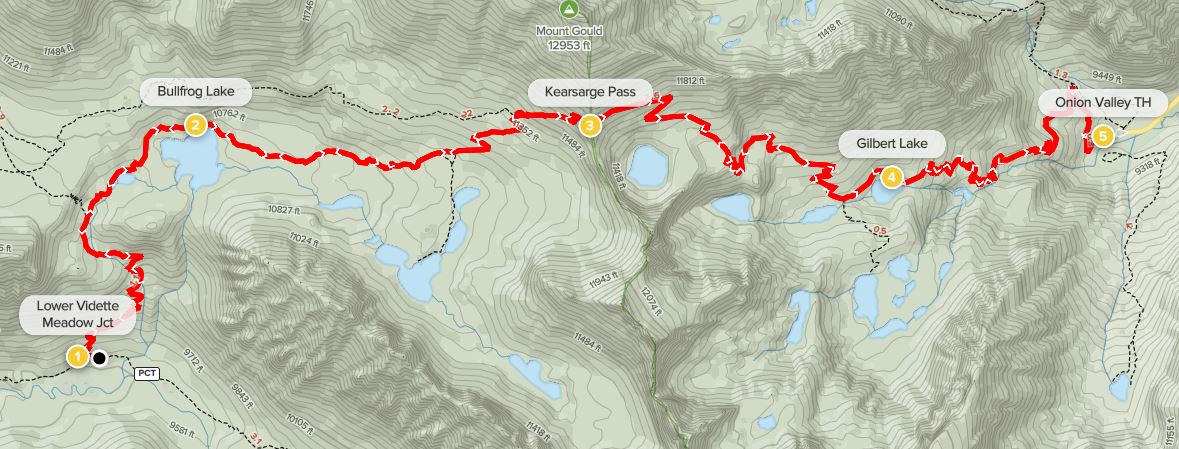 Lower Vidette Meadow to Onion Valley via Kearsarge Pass (8 miles)