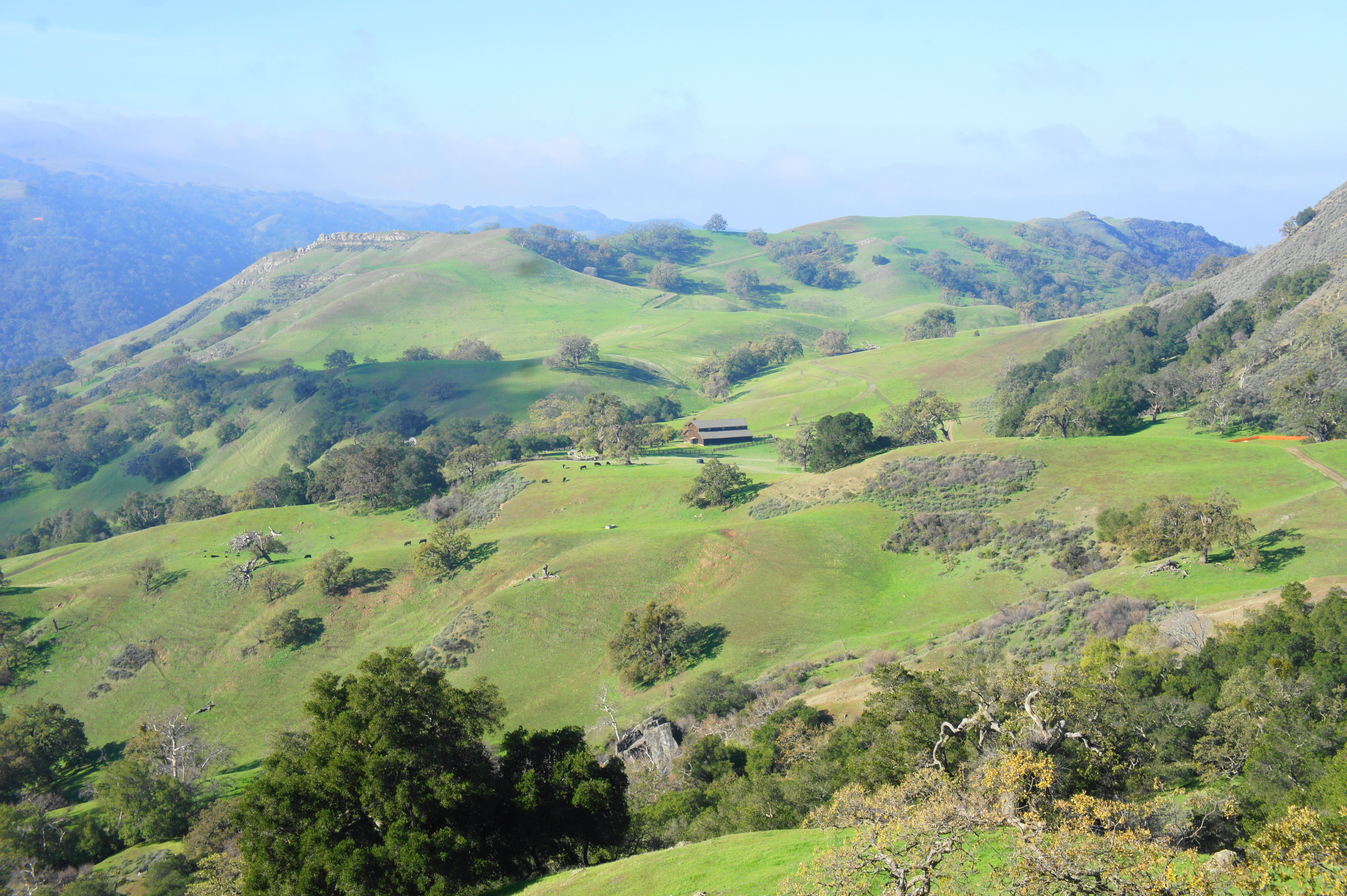 Once ready, return the way you came until reaching Cerro Este Overlook. Bear left at the junction, beginning a steady descent that will shed 1,100 feet in the next 1.75 miles. Following Cerro Este Road, the route weaves down a series of bends, passing a handful of small watering holes frequented by the resident cattle population. At the junction with the McCorkle Trail at 4.7 miles, stay right, dropping another 200 feet to a subsequent fork. Stay left at this junction, passing a bench with a picturesque view of Jacob’s Valley. (Note: It is technically shorter to head right on the McCorkle Trail/Ohlone Wilderness Trail, but this would skip the worthy detour to Little Yosemite.)