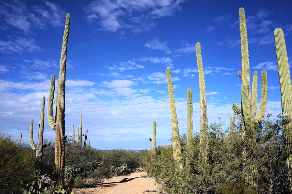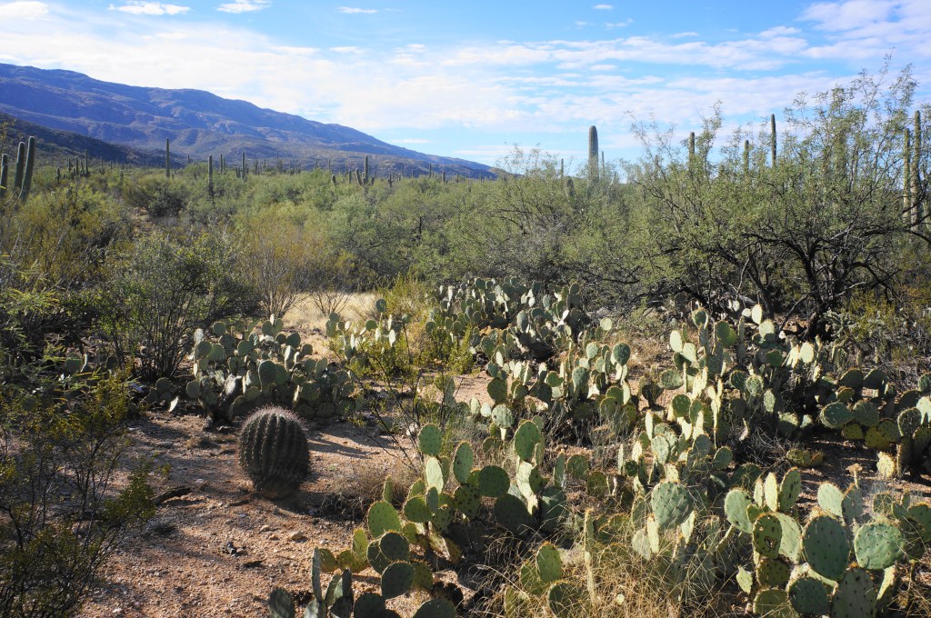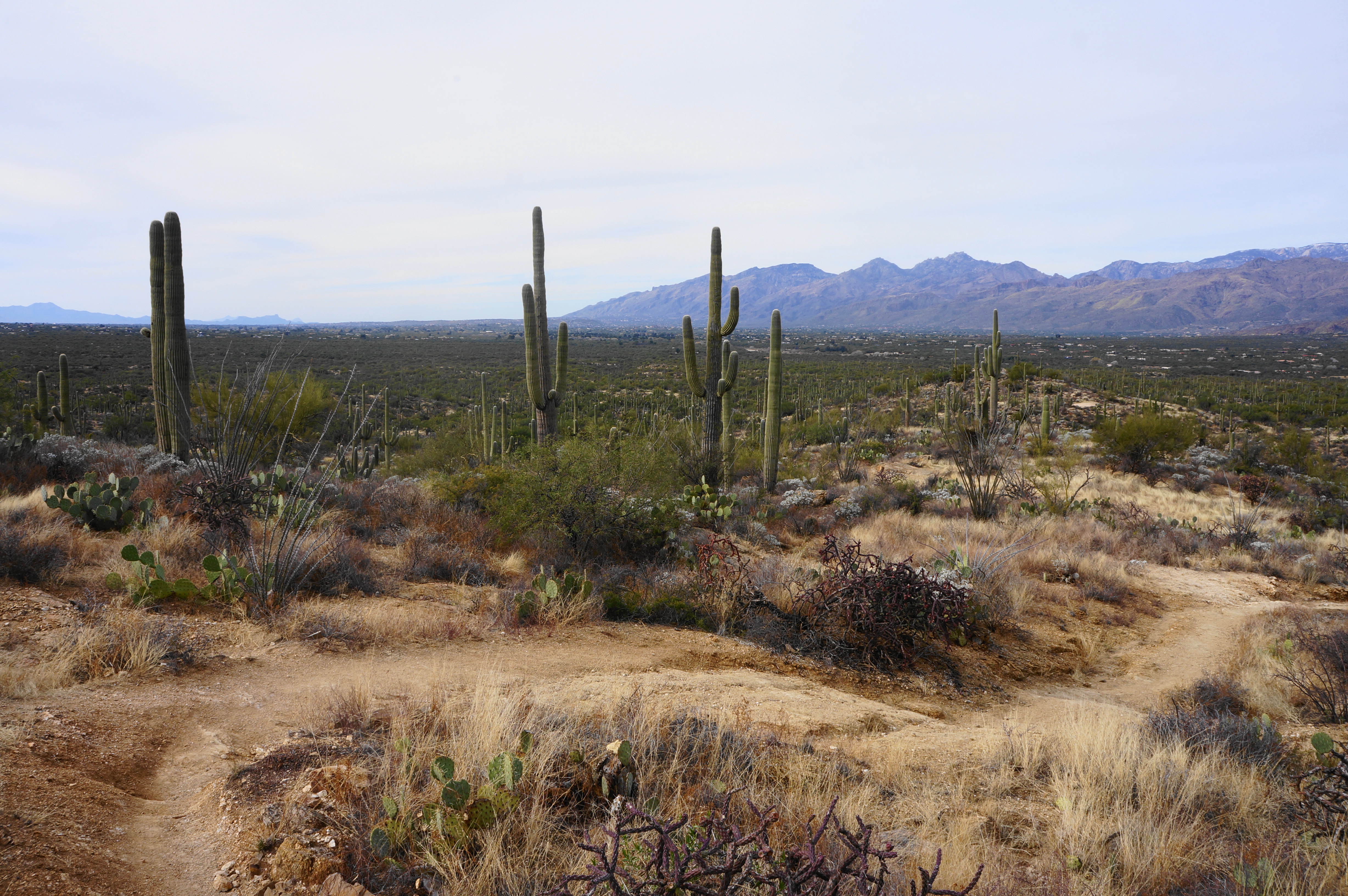 The circuit begins at the end of East Speedway Boulevard, a straightaway that leads eastward to the Rincon Mountain District from downtown Tucson, Arizona. There is no fee for entry to this part of Saguaro National Park, and the Douglas Spring Trailhead has a small parking lot that is nearly always full after mid-morning. Extra parking can be had along the shoulder to the west of the trailhead, which actually works out well given that the loop hike ends at the Wildhorse Trailhead, about 2/10 mile west of the Douglas Spring parking area.