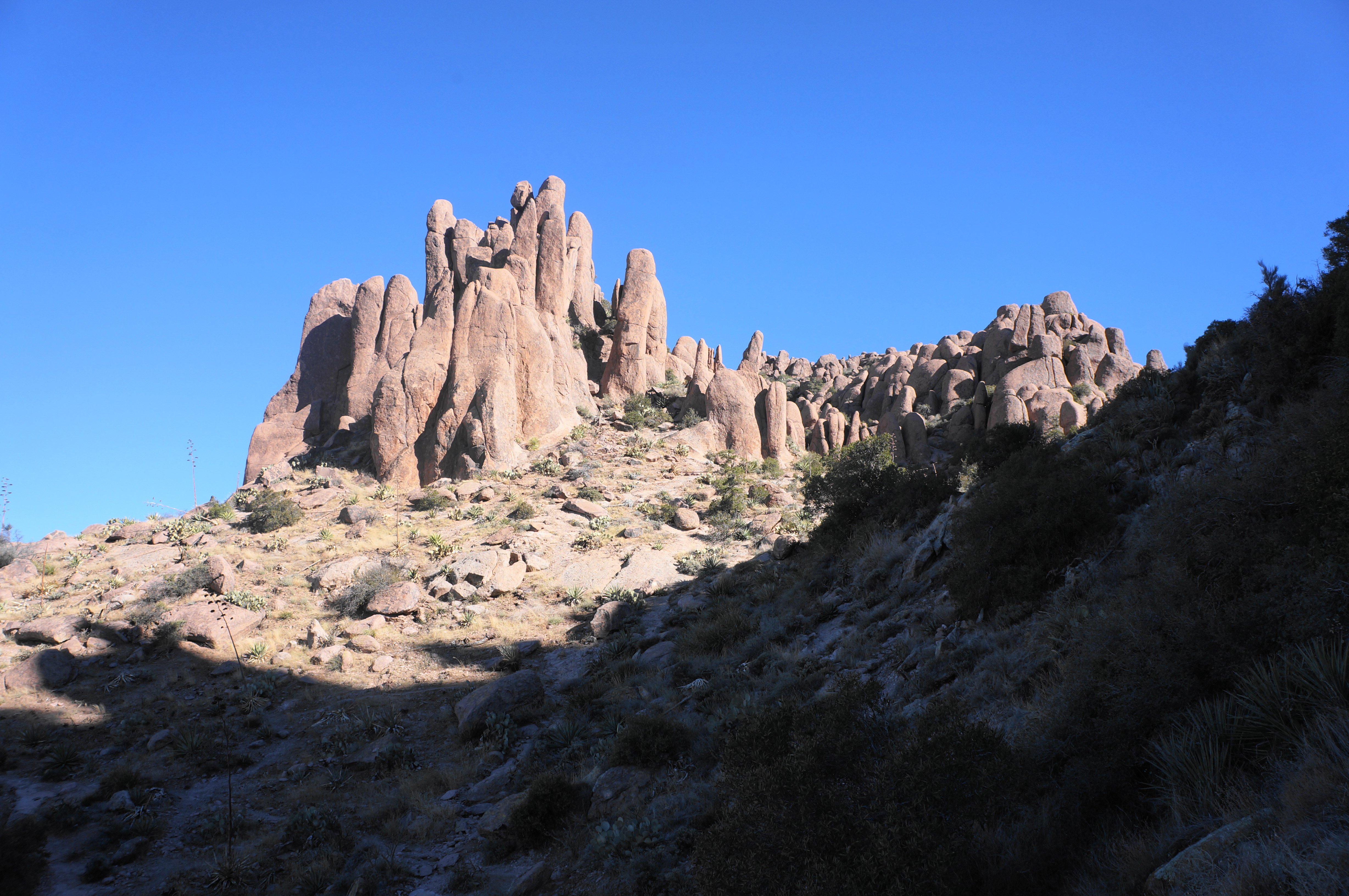 The out-and-back to Flatiron begins and ends in Lost Dutchman State Park, a popular destination spanning 320 acres of the Sonoran Desert at the base of the Superstition Mountains, around 40 miles east of downtown Phoenix, Arizona. The Superstitions comprise an alluring range composed largely of rhyolitic tuff and breccia, with many sheer vertical faces that take on a beautiful reddish hue. The imposing mountains appear from Lost Dutchman to be a seemingly indomitable mass, towering high above the saguaro cactus forest below. Yet there is indeed at least one traversable route: a drainage called Siphon Draw, a (usually) dry arroyo, accessible from the northwest.