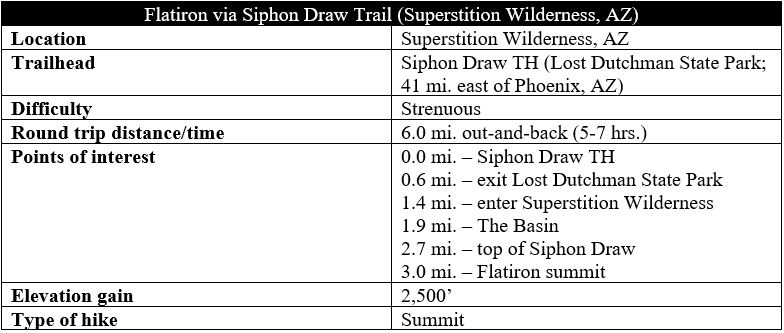 Pingback: Flatiron via Siphon Draw Trail (Superstition Wilderness, AZ) - justaglobe.com