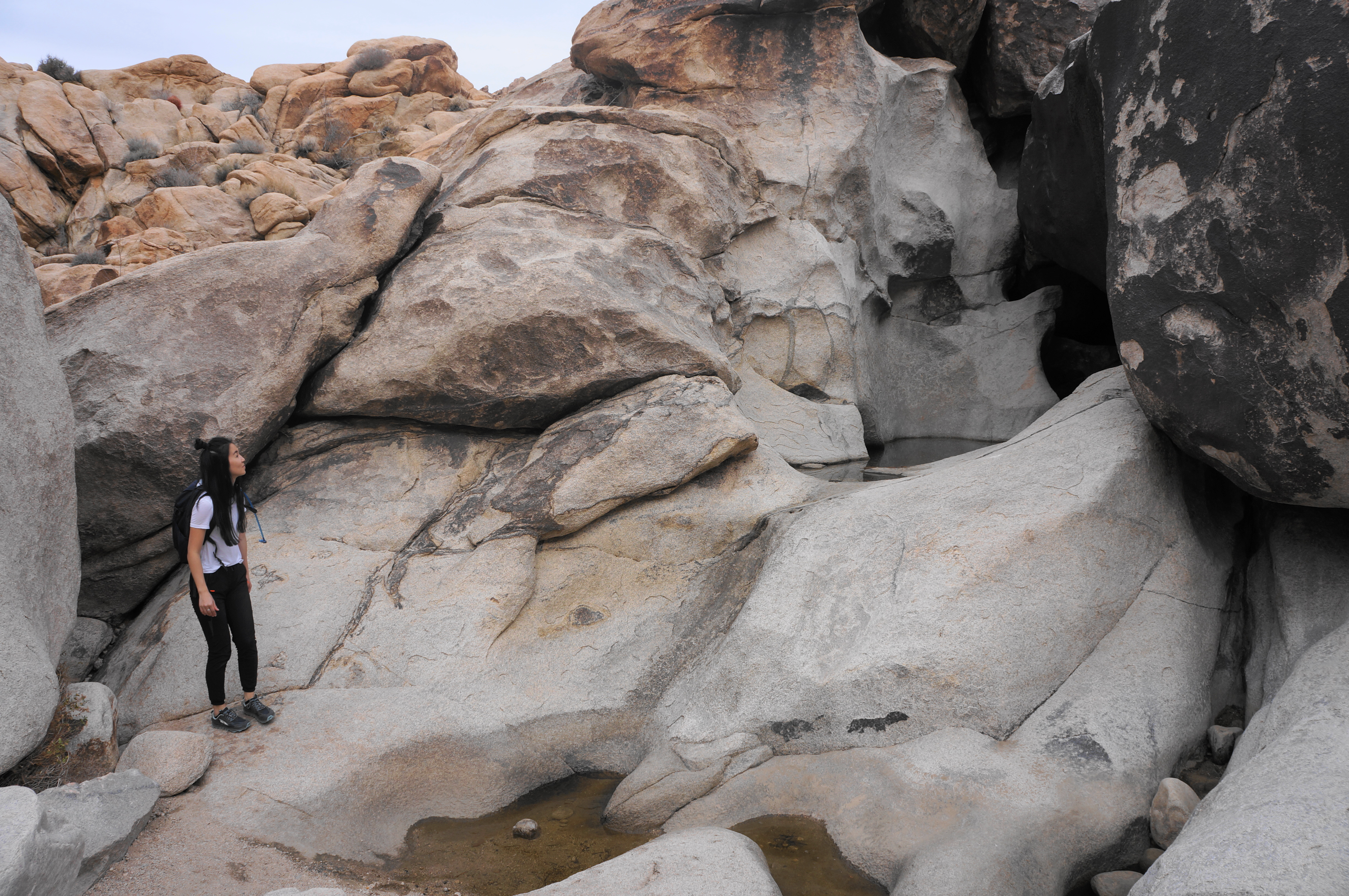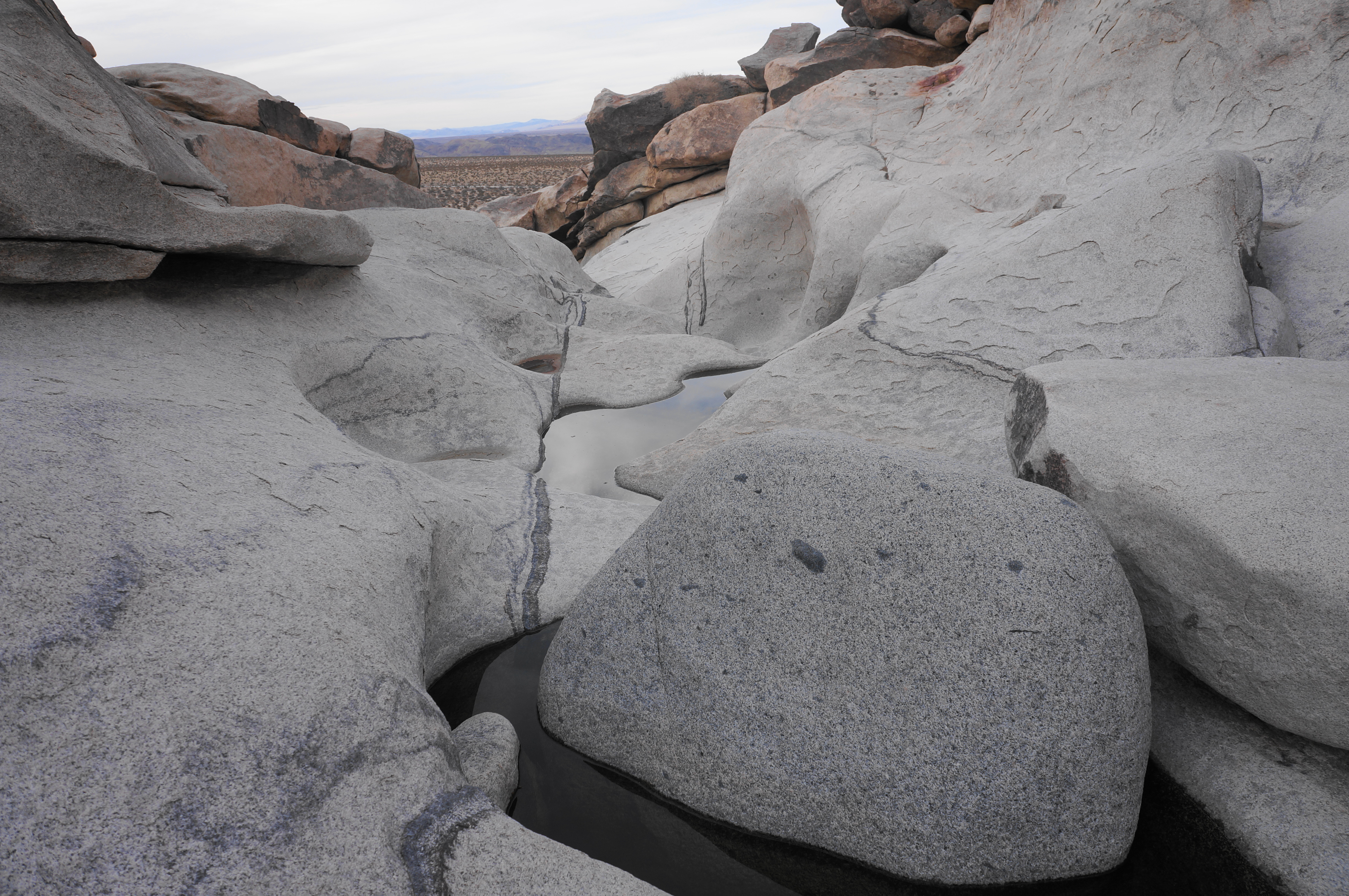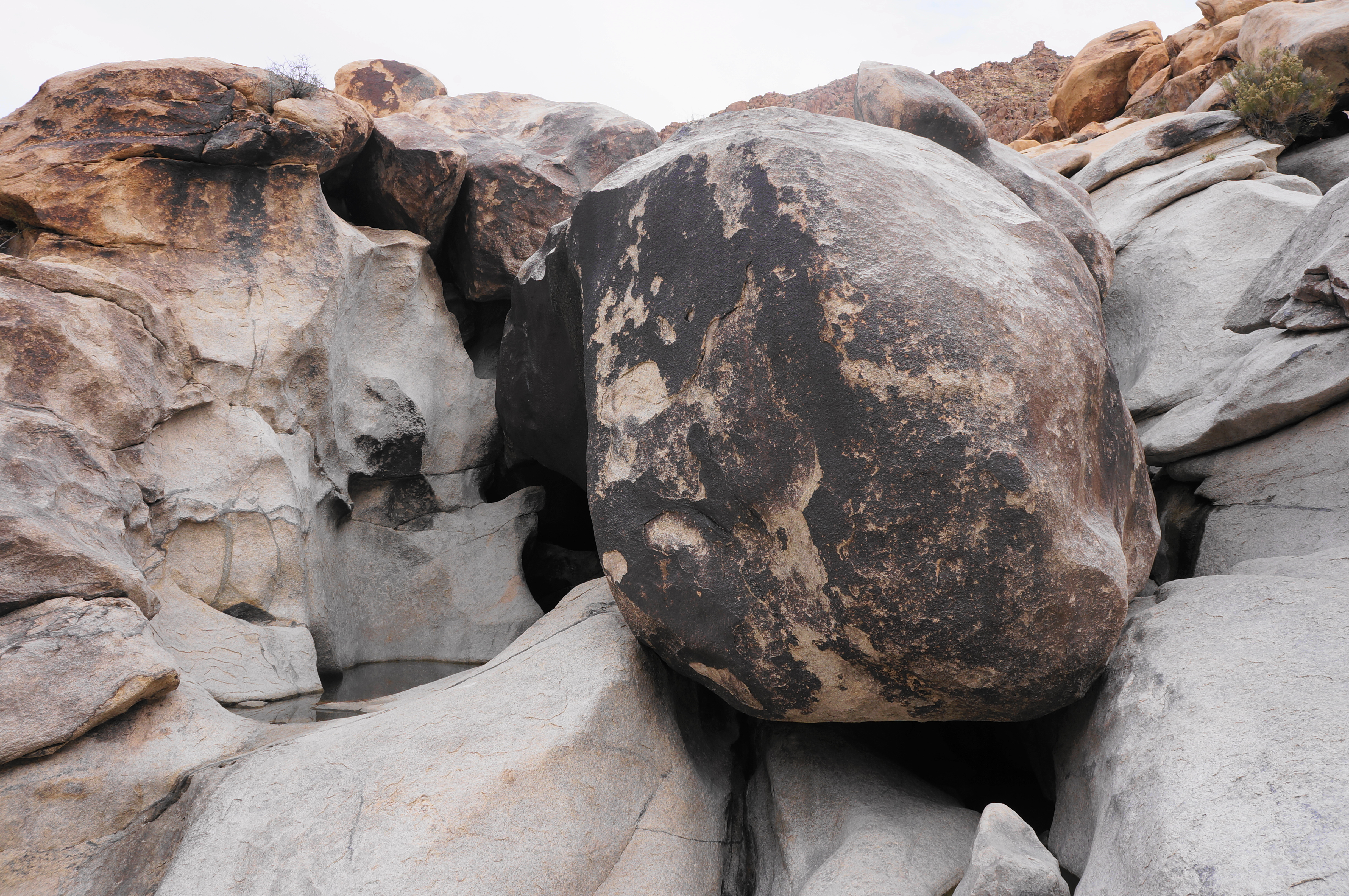 Rattlesnake Canyon in southern California’s Joshua Tree National Park is a rough-and-tumble, off-trail route that is well-known and advertised in Joshua Tree guidebooks—although perhaps it should not be. Despite its short length—the entirety of Rattlesnake Canyon upstream from the trailhead is less than two miles—the canyon floor is full of obstacles, route-finding challenges, and plenty of opportunities for first-time hikers to find themselves in trouble. Rescues—due to disorientation, heat, or broken bones—are relatively common, and the canyon is somewhat of a headache for local rangers, who warn of the dangers of the off-trail hike. As one local park official noted in 2016 after rescuing three hikers, “these people did not realize how strenuous Rattlesnake Canyon is…It is important to evaluate the hike you’re going to take…Find out a little bit about it before you just take off.” Notwithstanding these words of caution, Rattlesnake Canyon is a beautiful and rewarding destination for those with proper preparation and experience. Here the sandy wash gives way to a narrow and rugged gulch carved into the undulating monzogranite of an area called the Wonderland of Rocks. Fabulous grottos and slender slots can be found within a half-mile of the start, with additional wonders beyond as the canyon cuts deep into the boulder-strewn wilderness.