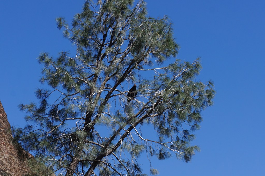 California condor in a pine tree