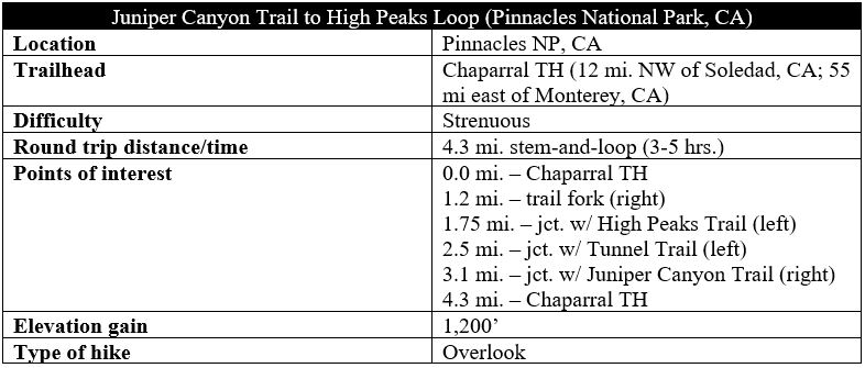 Juniper Canyon Trail to High Peaks Loop (Pinnacles National Park, CA)
