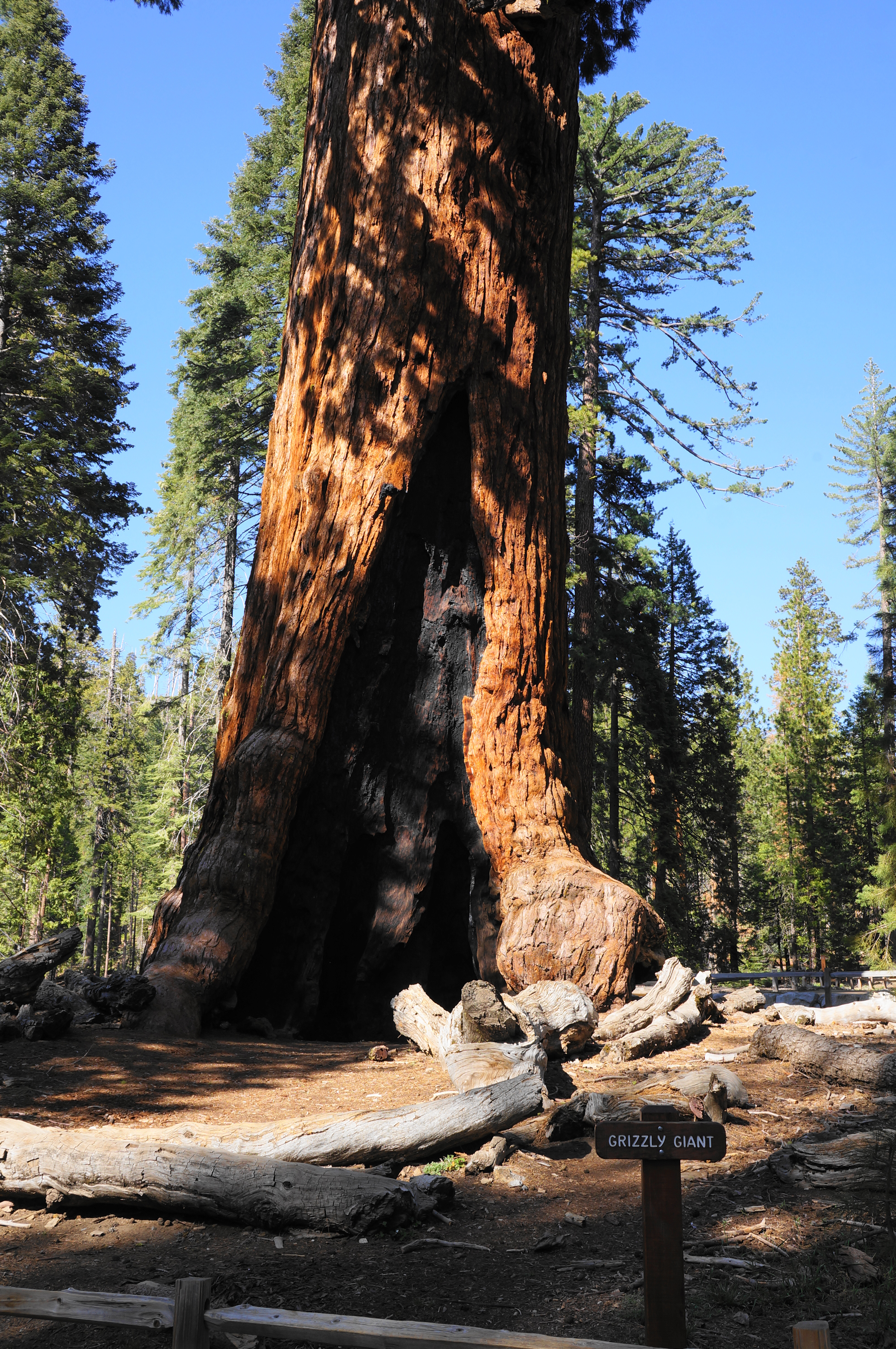 Today, Grizzly Giant stands out for its stout base and stubby branches—many of the latter approximating the size of large tree trunks in themselves. At 209 feet tall and 34,005 cubic feet, the Grizzly Giant is neither the tallest nor the largest sequoia in California—but it is perhaps one of the most peculiar-looking.