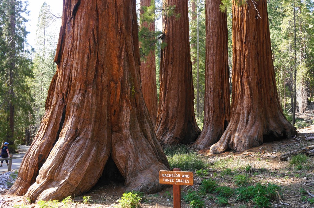 At Grizzly Giant, hikers will rejoin the masses, many of whom have travelled here as an out and back from the arrival area. Bear right, wrapping around to the tree’s west side, then head right again as the Mariposa Grove Trail diverges from the wheelchair-accessible path and drops down a series of steps. Now heading back toward the trailhead, the route passes a final named set of standing sequoias called the Bachelor and Three Graces. These deep orange trees are some of the prettiest on the hike.