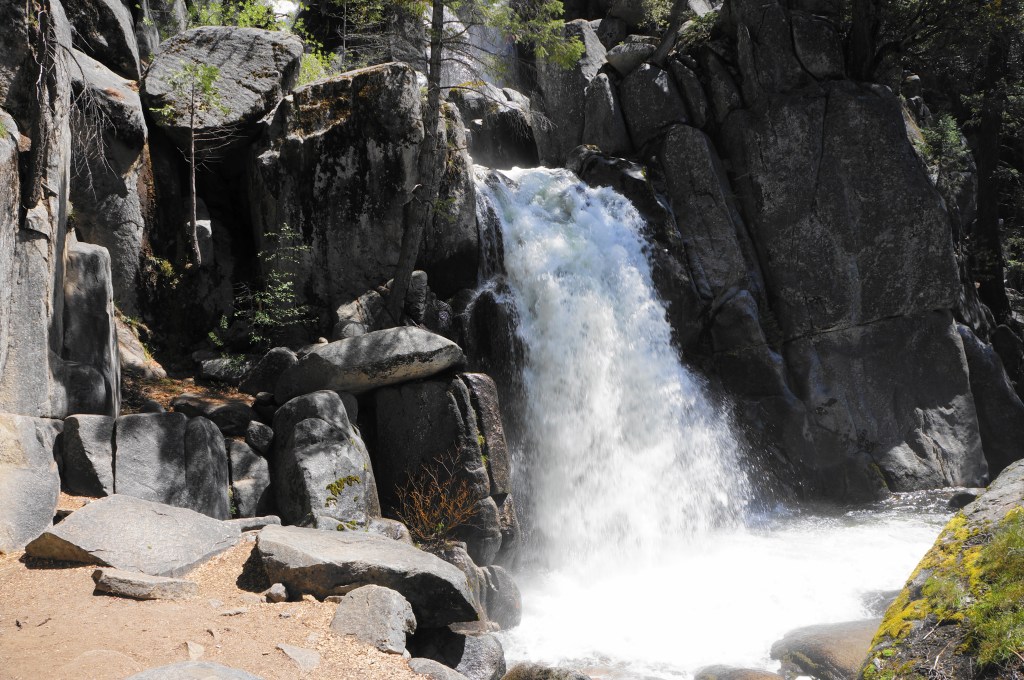 Many will choose to turn around at the first two falls, but it is worth pushing on to the trail fork (four miles from the start), which marks the official end of this day hike. Here hikers enter a secluded glen where two branches of Chilnualna Creek meet. Heading off-trail leads down to the confluence, and it is worth exploring a few minutes upstream on the right branch to get a full view of the final cascade: a multi-drop falls that terminates in an inviting pool.