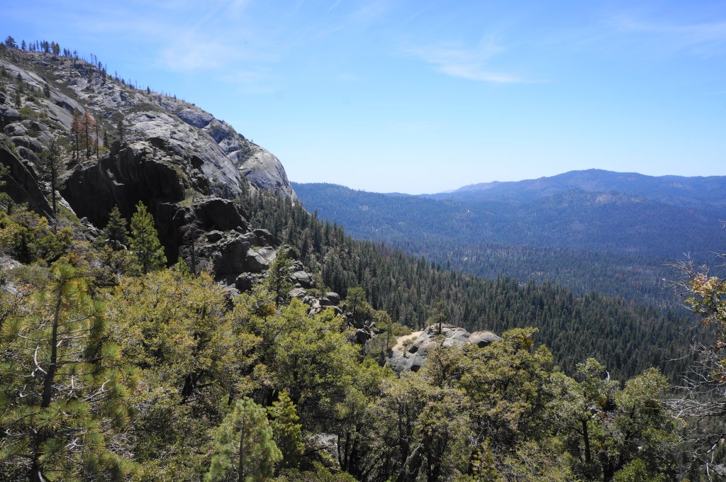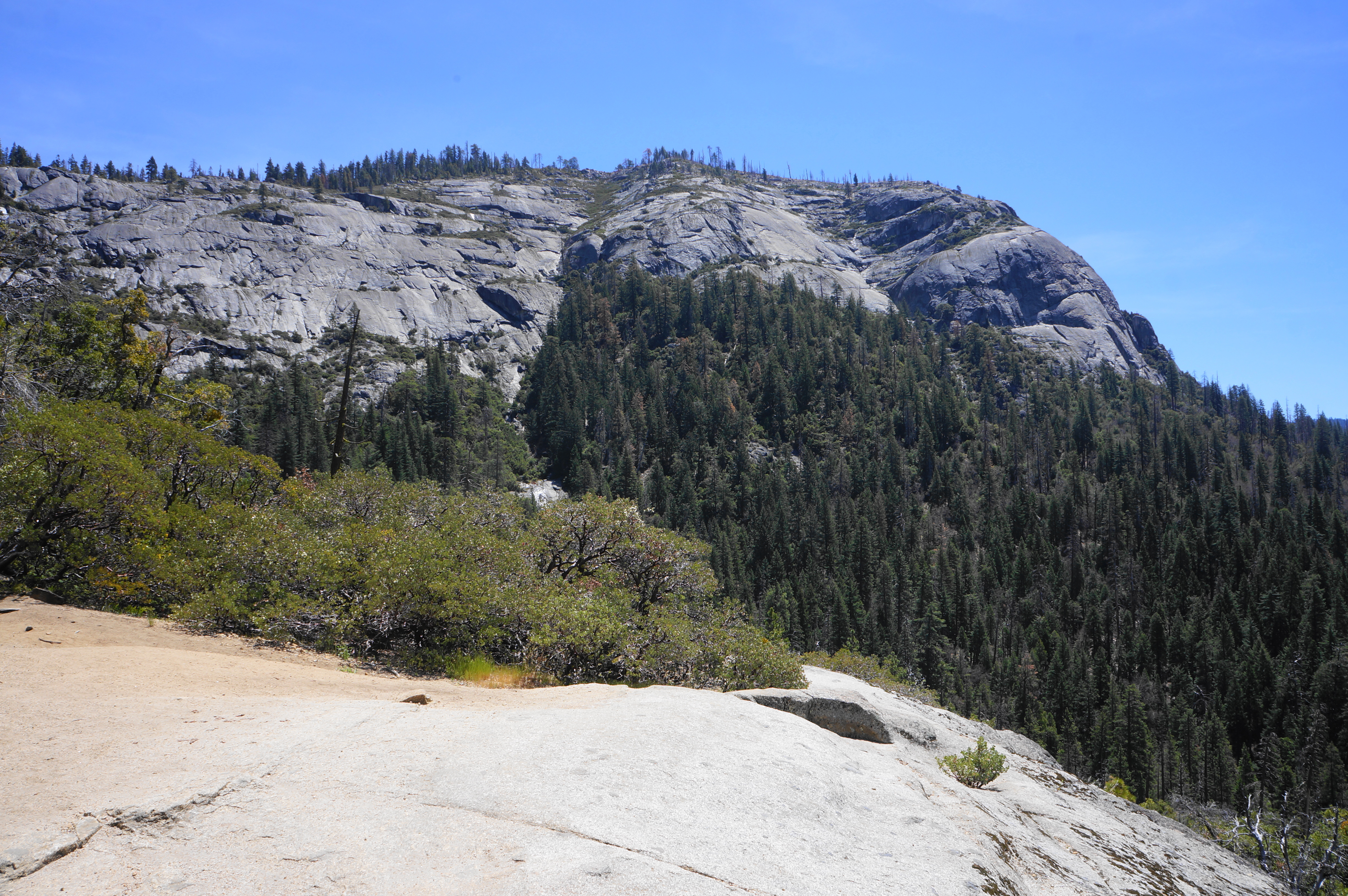 There is much more uphill to come, however, and the incline picks up considerably after about 1.6 miles. Now a considerable distance from the creek, the route switchbacks up a brushy and forested slope, occasionally offering clear vistas of Wawona Dome and the valley below.