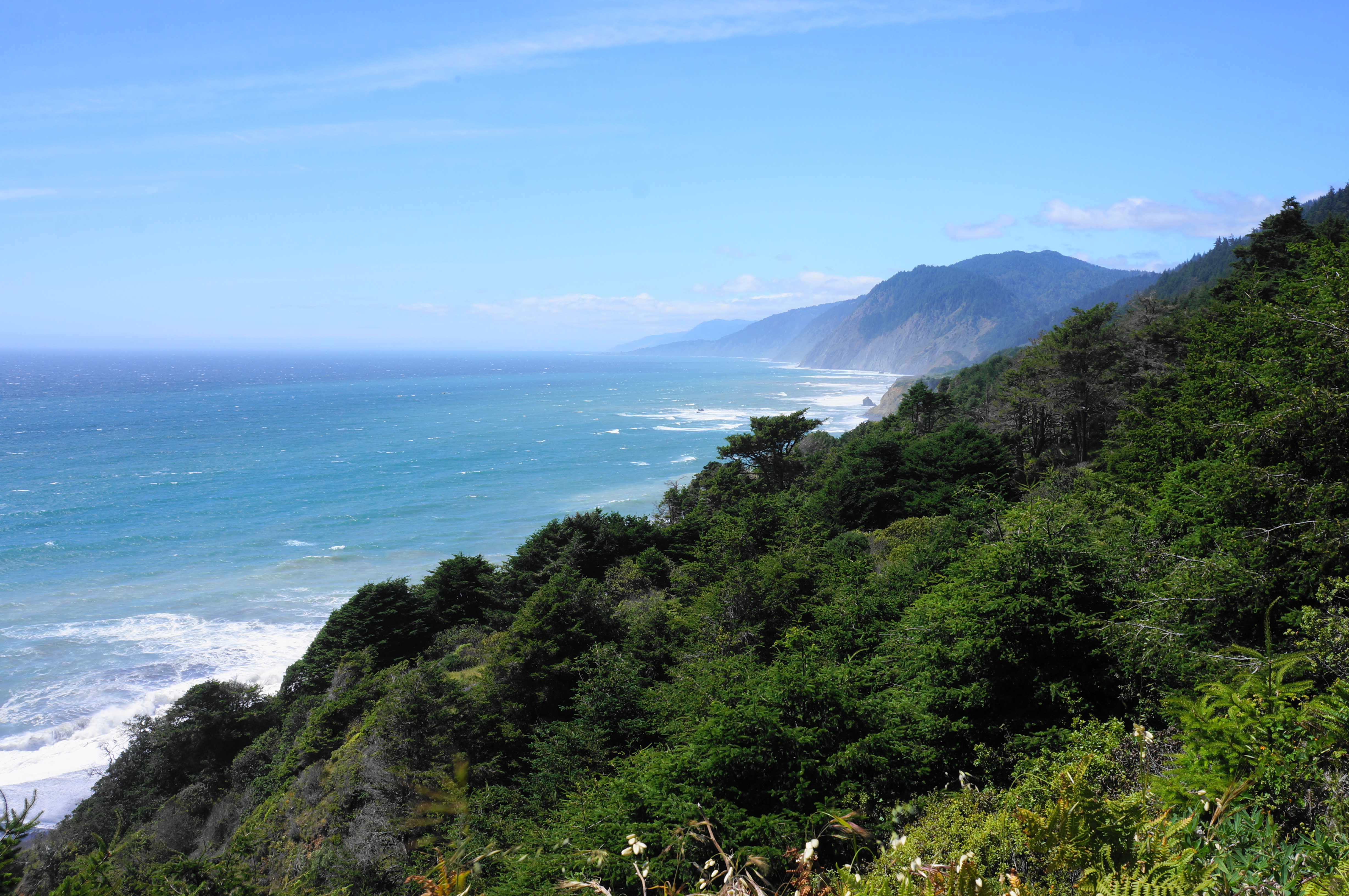 The visitor center and parking area are situated on a grassy shelf a little less than 200 feet above the coastline, with excellent views north toward the King Range and Shelter Cove. Needle Rock was once home to a small dairy farm, as well as a store, hotel, and even a school. There was also a logging railroad running from Bear Harbor to nearby Piercy, California—until it was irreparably damaged in the 1906 earthquake. After plans in the 1960s of establishing a monastic community here fell through, the Needle Rock area was incorporated into Sinkyone Wilderness State Park, which was established in 1977. A major push by environmentalists saved the remaining redwoods in the area from being logged in the 1980s, with activists raising funds to purchase 3,000 acres of land from the Georgia-Pacific Lumber Company. This territory was then gifted to the park.