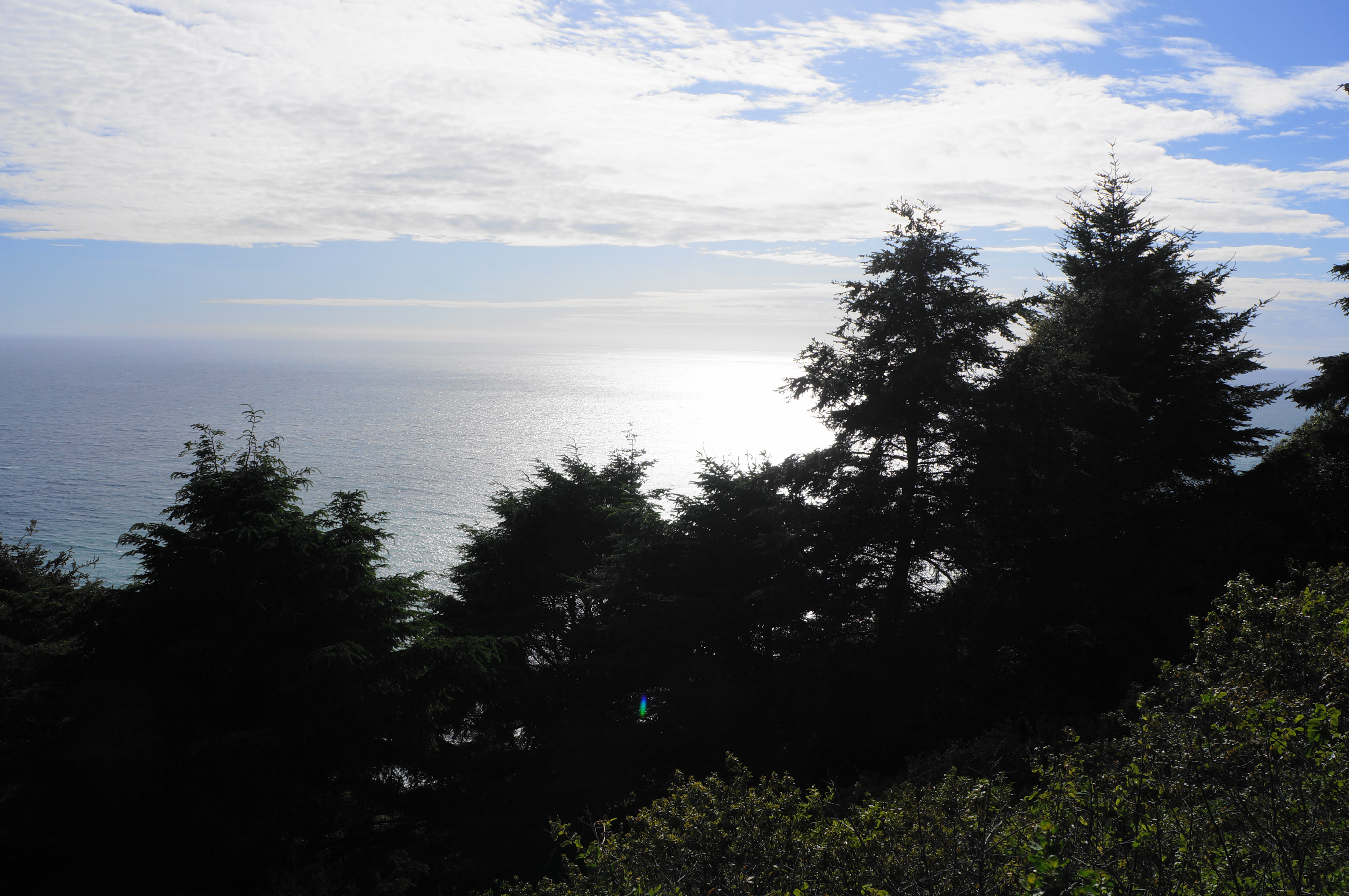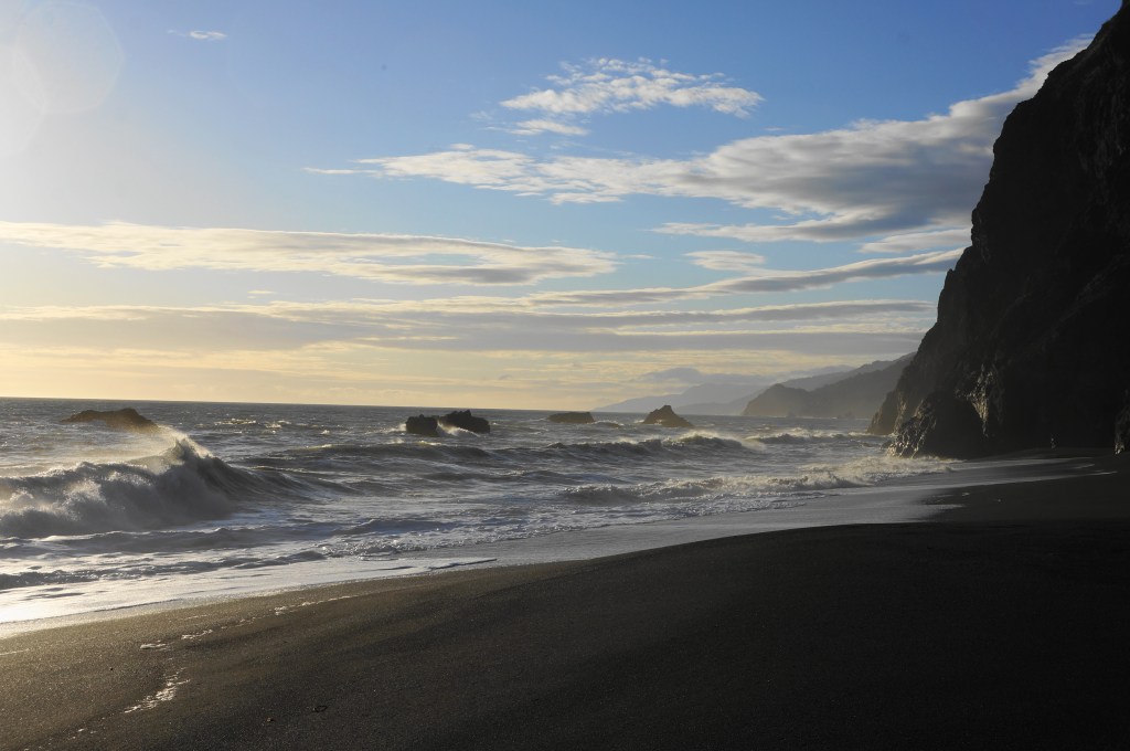 The best campsites (unless you don’t like a little wind) are situated at the end of the drainage where Jackass Creek passes through an alder grove and snakes around Wheeler Beach, culminating at the Pacific Ocean. The black sand beach is a fronted by tall cliffs on either side and is a wonderful place to watch the sunset. Campsites can be found along the scrubby upland just above creek level (on both sides of the stream). Here one can watch the sun set over the crashing waves, enjoy a fire (permitted in designated fire pits only), and, if heading farther south the next day, rest for the onward journey to Little Jackass Creek and beyond.