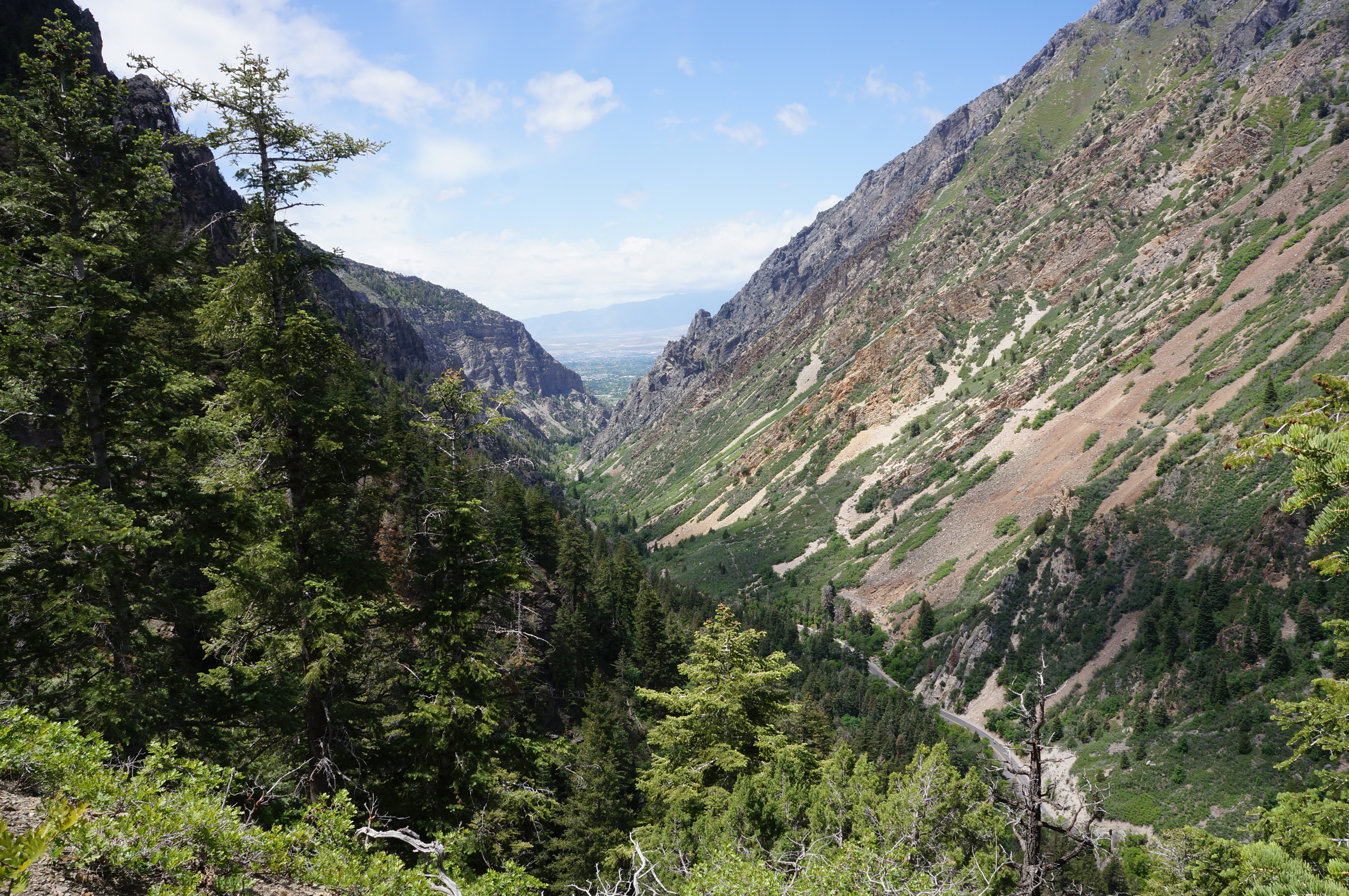 The frequent crowds—including both cave tourists and locals who use the hike as a regular fitness challenge—make the Timpanogos Cave Trail far from a solitary experience. But the nature around you is splendid: the hike ascends through more than a half-dozen rock layers, and the ubiquitous flora—including Douglas fir, Boxelder maple, Rocky Mountain juniper, and Gambel oak—provide some decent shade even on a hot day. The views down into American Fork Canyon and Utah Valley improve as you climb, with several nice overlooks along the way.