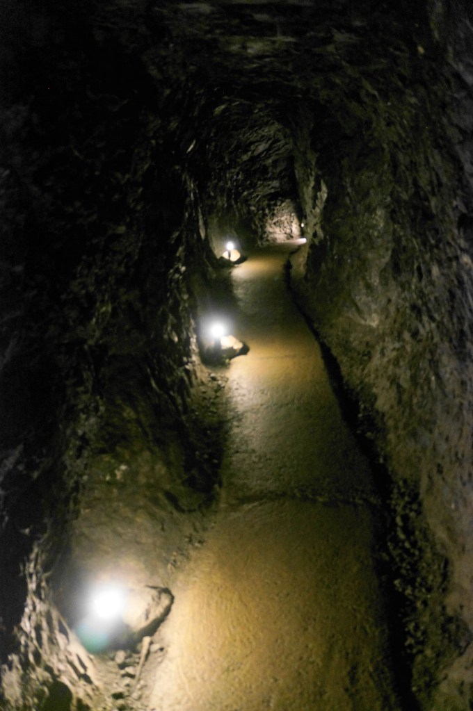 The tunnel eventually gives way to a long but narrow passage that is entirely natural, the result of a fault line running through Middle Cave, the second cavern on the hike. Duck your head as the protruding cave walls ebb and flow, and then pass over a shallow pool known as Middle Cave Lake.