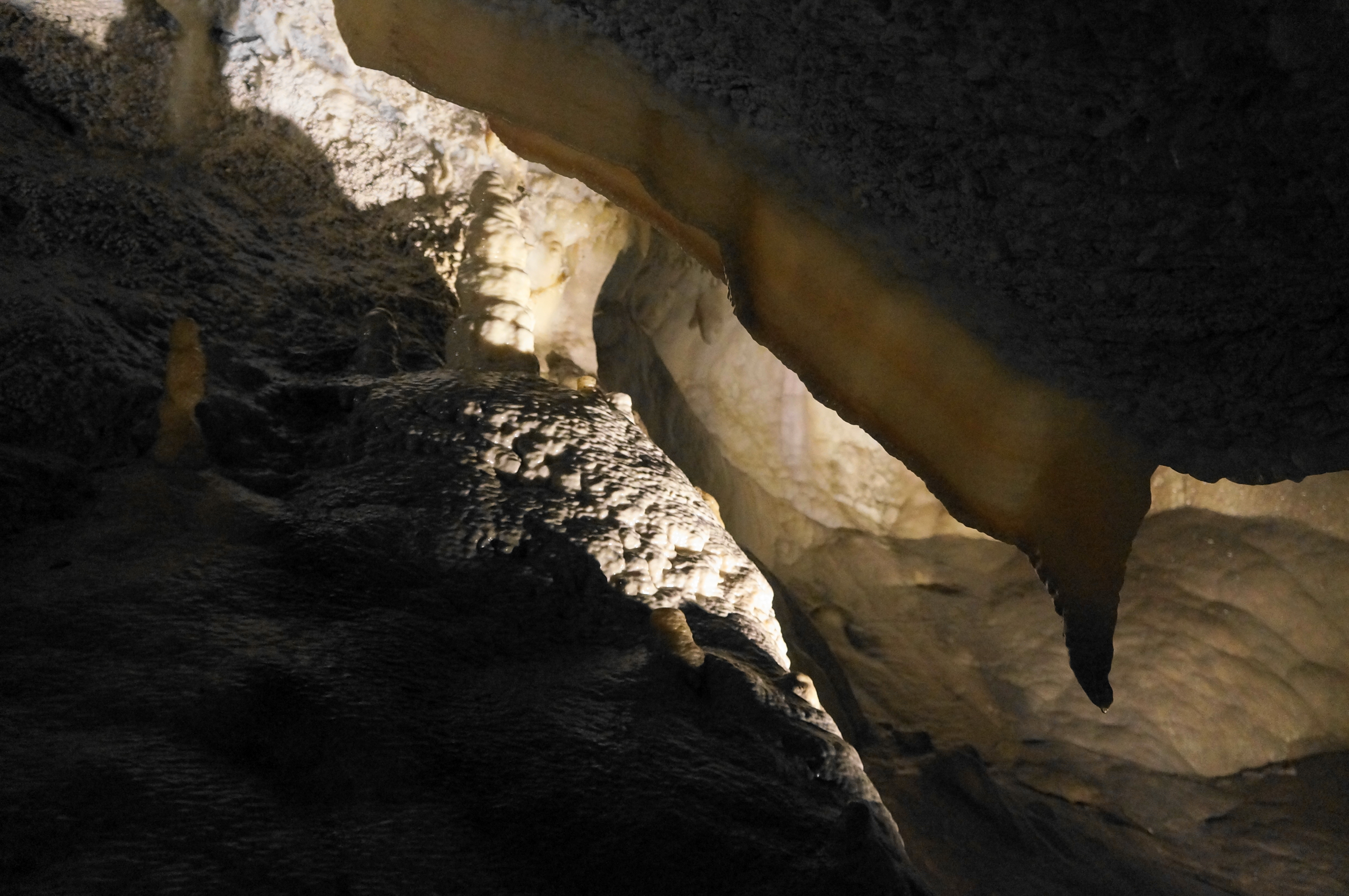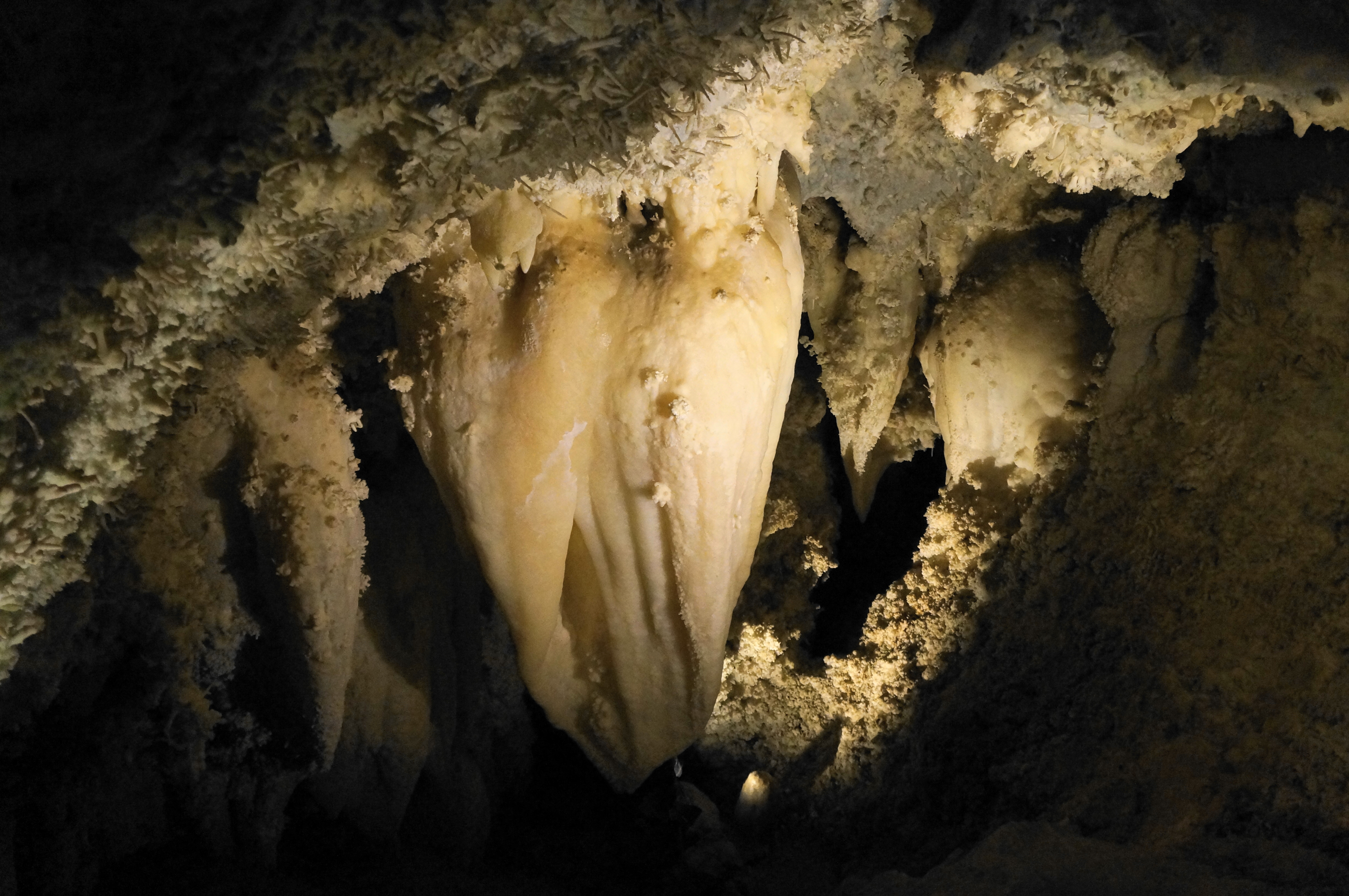 Several smaller examples of stalactites, stalagmites, and columns can be found in Middle Cave, but the headliner is the aptly-named Big Room, where the tour stops for a decent while. Here the calcite walls erupt in an elaborate display of flowstone.