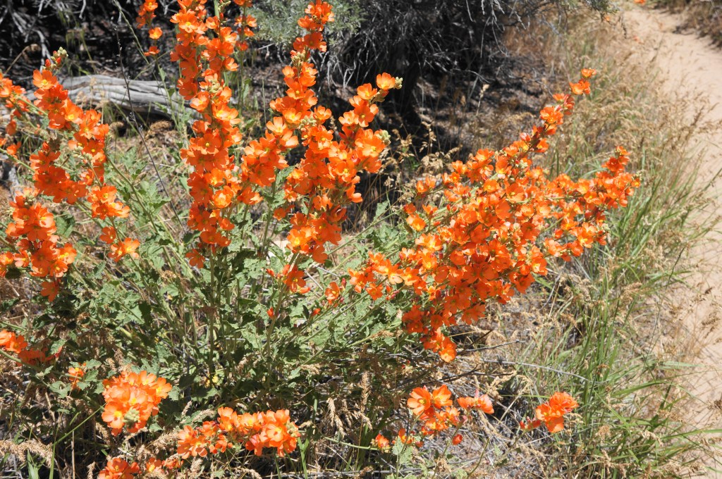 After returning to the woods—populated by birch, Douglas firs, and other tree varieties—the route descends a set of steps, followed soon by an uphill staircase. Notice the impressive cryptobiotic soil, a living soil crust comprising cyanobacteria that help to stabilize the ground cover. Again with open vistas down-canyon, the Jones Hole Trail settles into a steady descent through a grove of gnarly juniper trees, interspersed with lovely specimens of claret cup cactus (blooming in late spring).