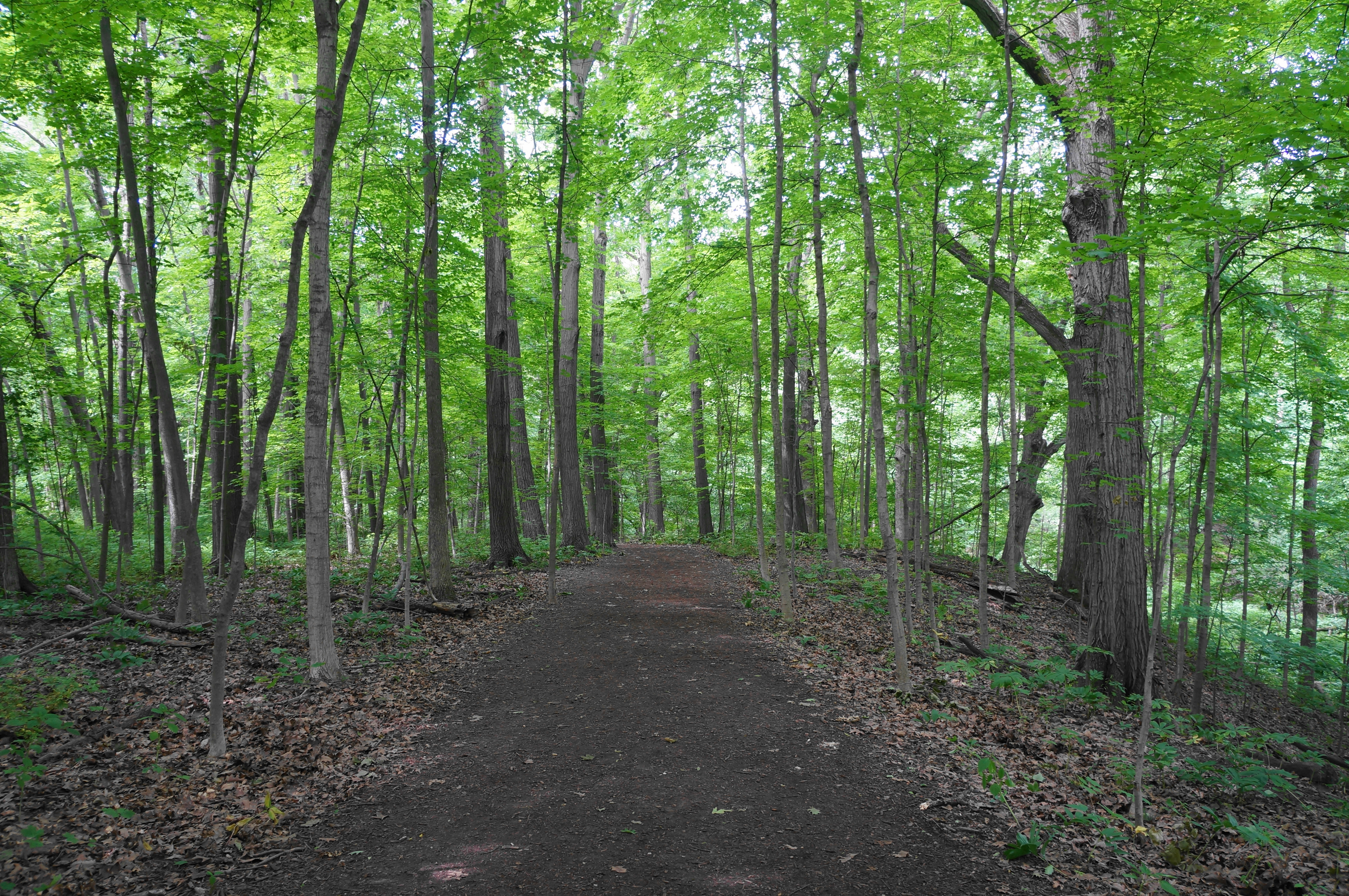 Here hikers can bear right to continue the loop, but it is worth a ½-mile detour to visit the nearby Bailly Cemetery. To take this spur, heading left at the junction just after the bridge, staying straight as the trail intersects with the Porter Brickyard Bike Trail and crosses Oak Hill Road. Once across, the hum of Highway 12 grows stronger, but the walk is peaceful nonetheless as it snakes through the dense woods. At 1.1 miles, after a short uphill, the spur ends at Bailly Cemetery, a brick-encased plot situated on a bluff that once overlooked Lake Michigan. The entire Bailly family is buried here.